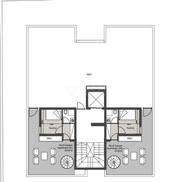 The master bedroom comes with an en-suite shower, adding privacy and convenience, while the open-plan living area maximizes natural light, creating an airy and spacious environment. Additionally, the apartment comes with a barbecue area and provision for a Jacuzzi, offering the perfect setting for relaxation and outdoor enjoyment.