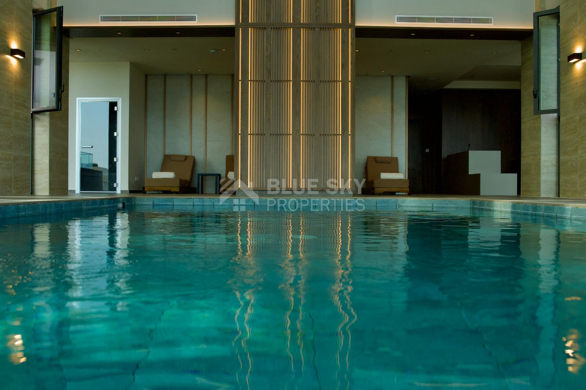 With heated indoor pool, fully equipped gym and pilates room.