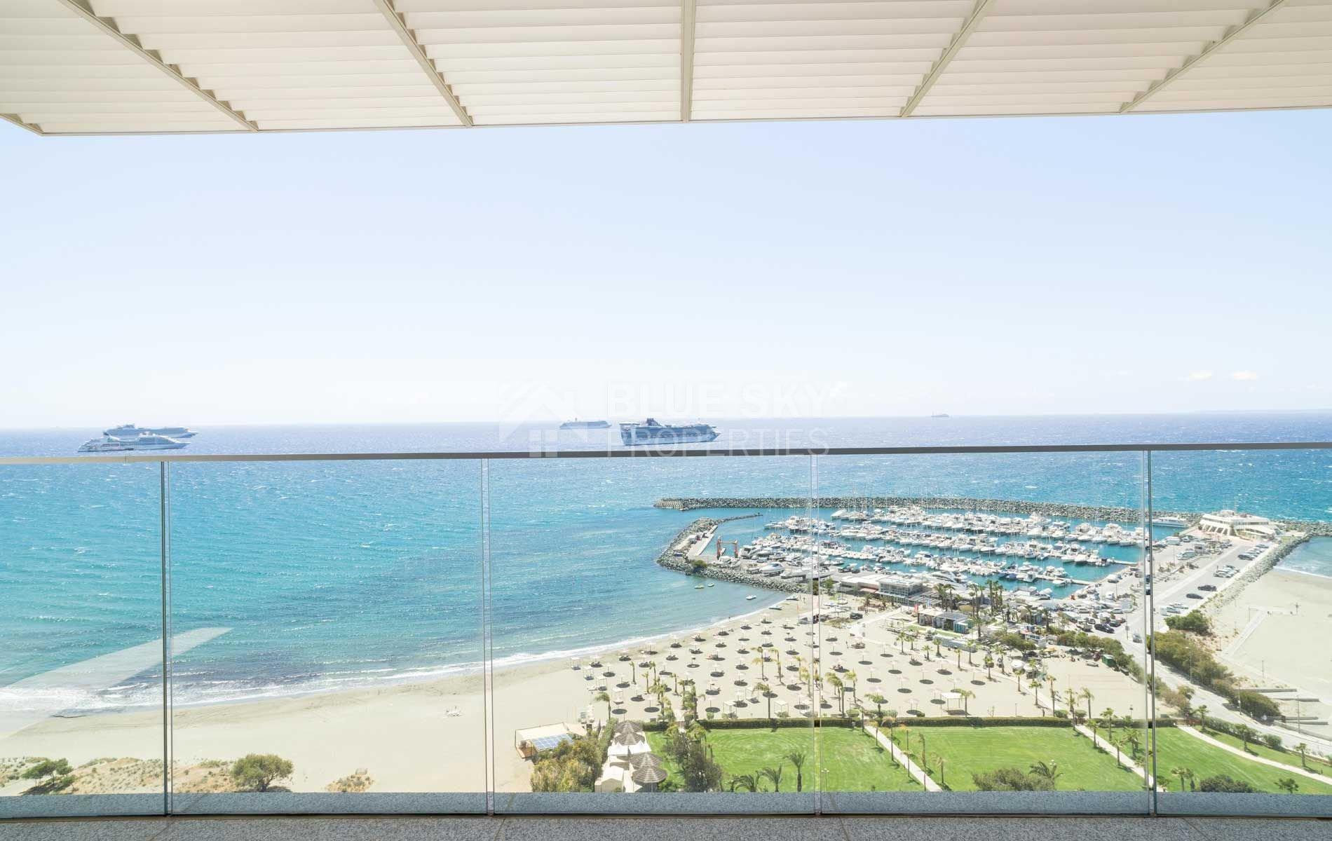 If you are looking for the best Cyprus has to offer, then look no further. This luxurious villa on the top of this amazing residence is a two-storey penthouse on the 11th and 12th floors (level 13 and 14). The twelfth and highest floor boosts the most magnificent views in Limassol, overlooking the private marina, gardens and simply the whole Limassol Bay with unobstructed and unrivalled views. The penthouse has every top-quality finish, with Crema Marfil stunning marble, top Italian brushed gold and wooden tailor-made kitchen, an office and four large bedrooms, all with ensuite. The kitchen has its own service entrance, a must for entertaining and there is a large, covered terrace on the 12th floor. The bedrooms are all situated on the 11th floor and there is a beautiful sweeping staircase connecting the two levels. All amenities have been considered in this state-of-the-art penthouse and every smart home option has been incorporated. There is a large walk in wardrobe in the master bedroom and breath-taking views can be enjoyed from the freestanding Villery & Boch bathtub.