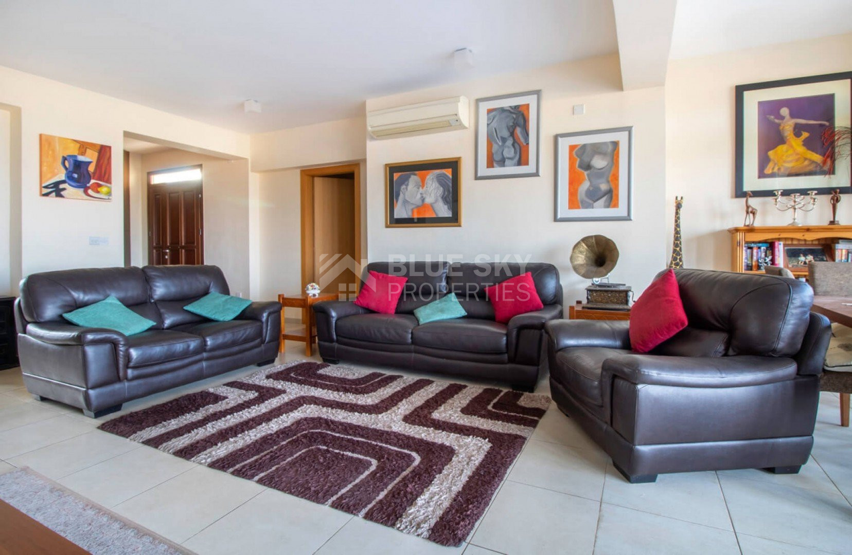 All bedrooms are fitted with attractive parquet flooring, built-in wardrobes, and contemporary bedside cabinetry. French doors open onto a generous dining terrace, offering the potential to be extended even further. With the property’s desirable west-facing orientation, residents can enjoy breathtaking sunset views over the sparkling Mediterranean Sea.