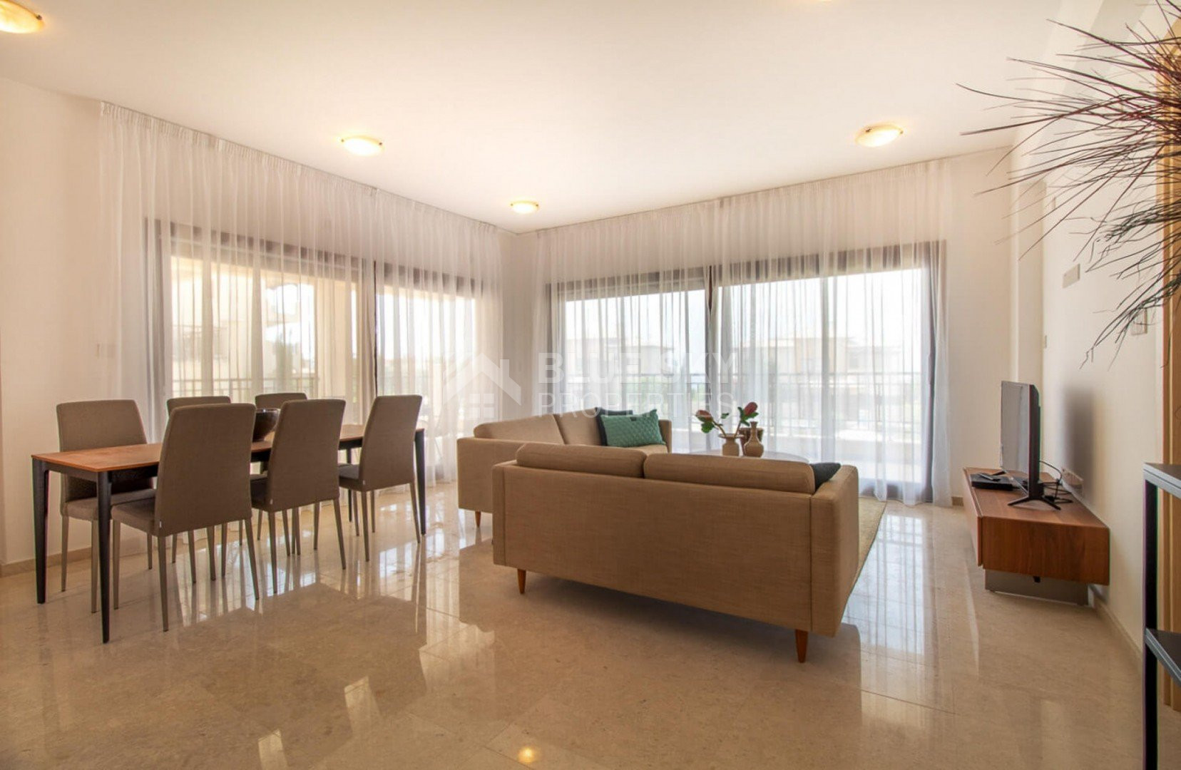 This beautifully presented 2-bedroom premium apartment offers elegant, contemporary living in one of the most desirable areas of Aphrodite Hills. Positioned on the first floor, it is designed with neutral tones, stylish décor, and high-quality finishes throughout.