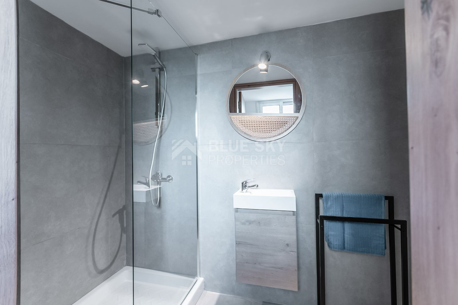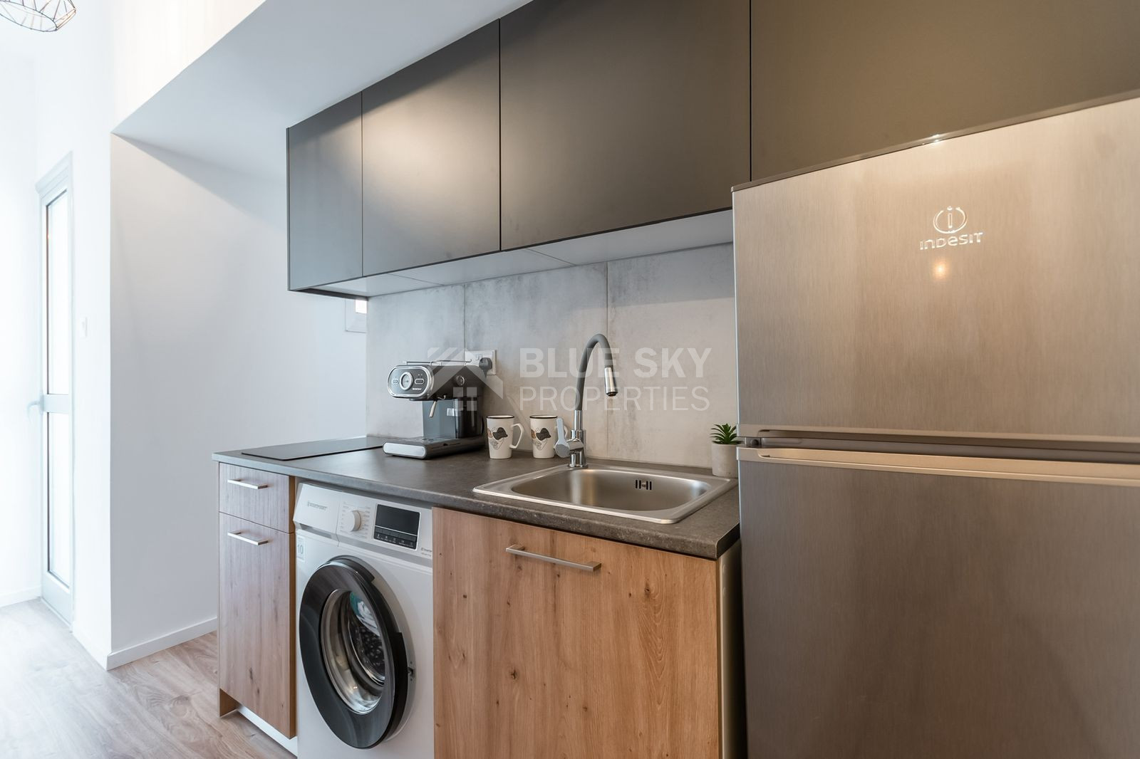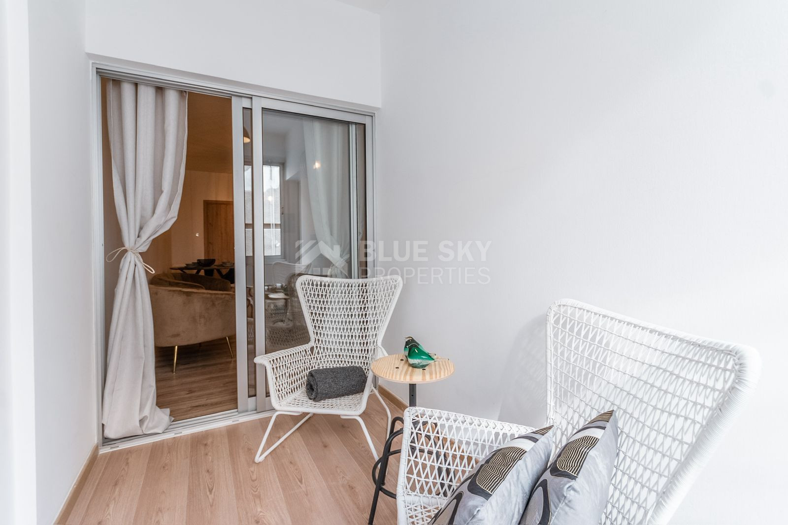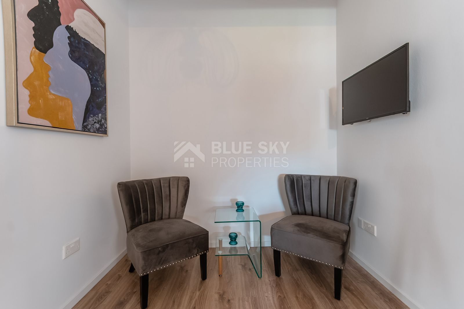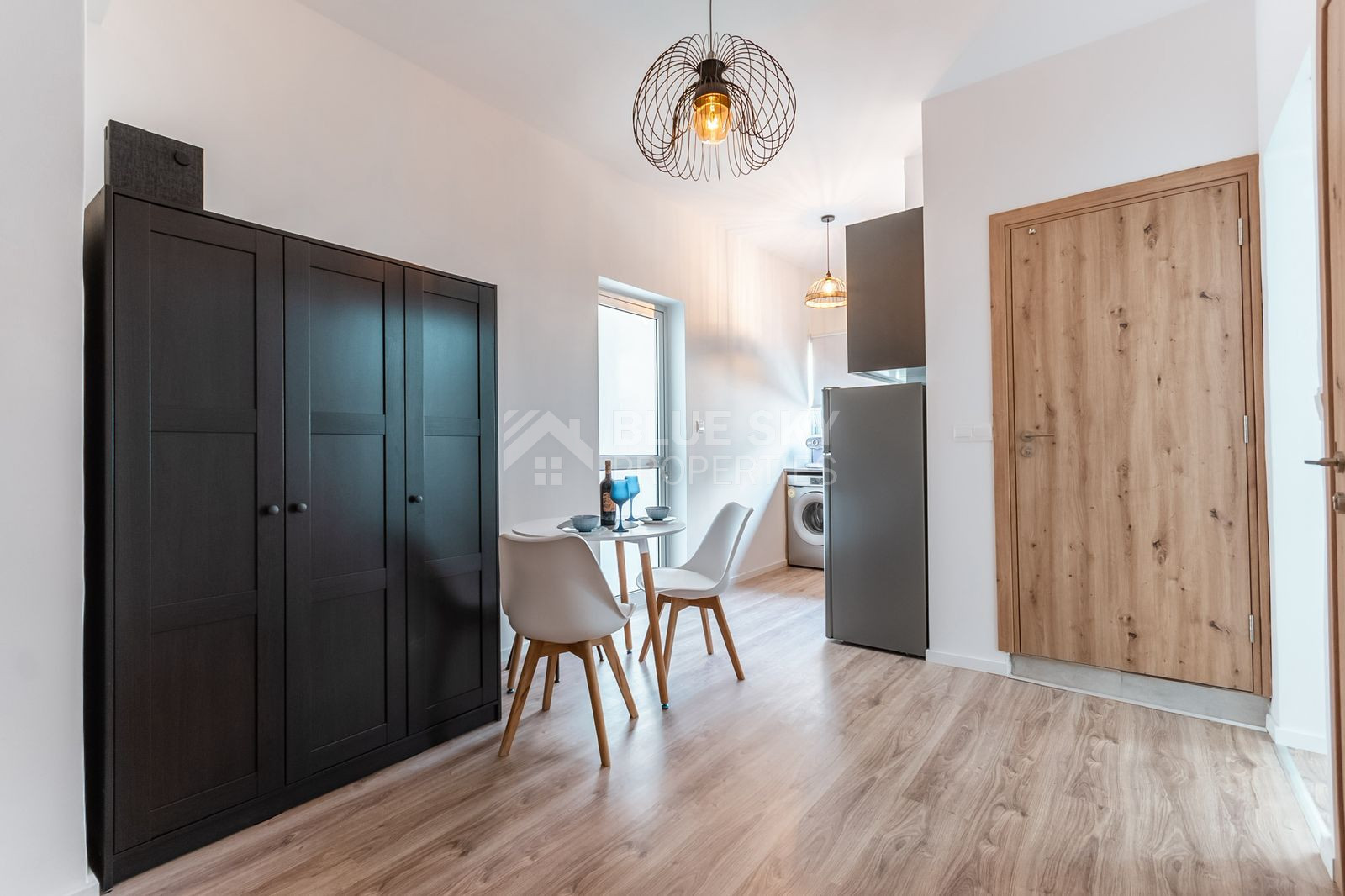 The living area is bright and airy, designed for both relaxation and entertaining. Quality furniture and tasteful décor create a welcoming environment, while large windows allow natural light to fill the rooms. The kitchen is fully equipped, making meal preparation both easy and enjoyable.