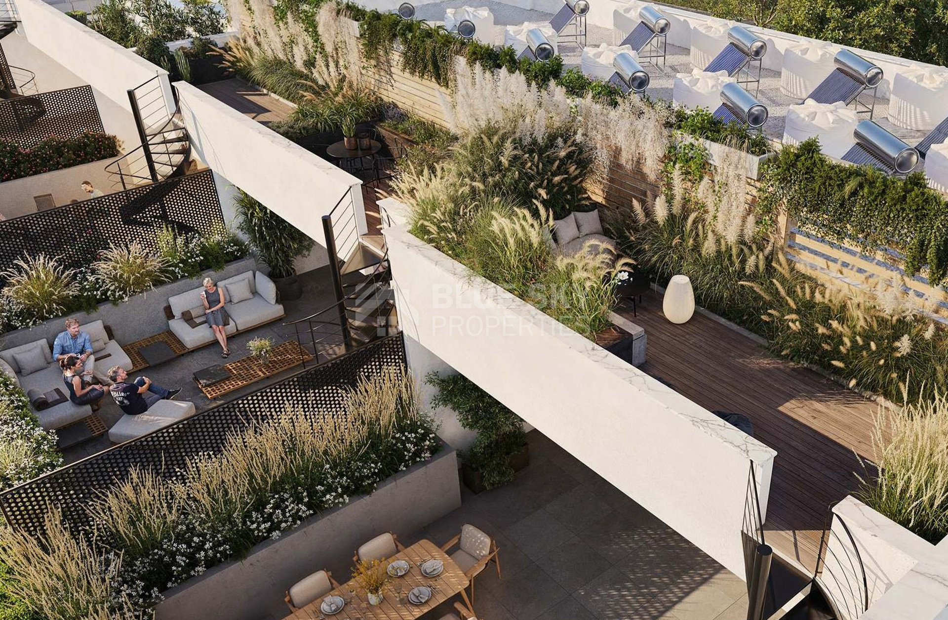 Photovoltaic systems for each apartment and common areas, ensuring energy efficiency and reduced operating costs