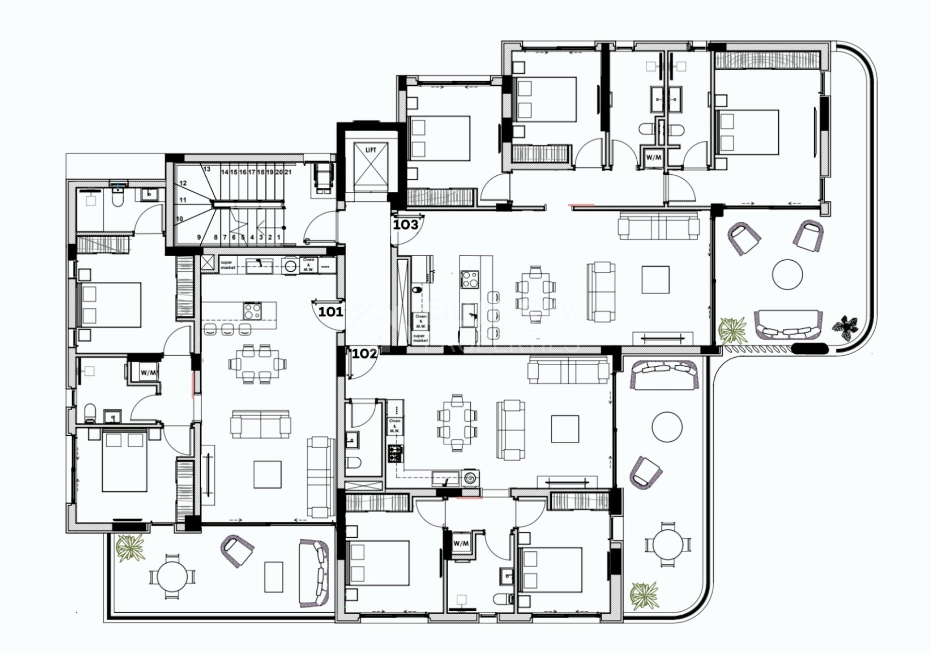 This project showcases six exclusive apartments, each designed with contemporary architecture and stylish interiors, perfectly complementing the coastal setting.