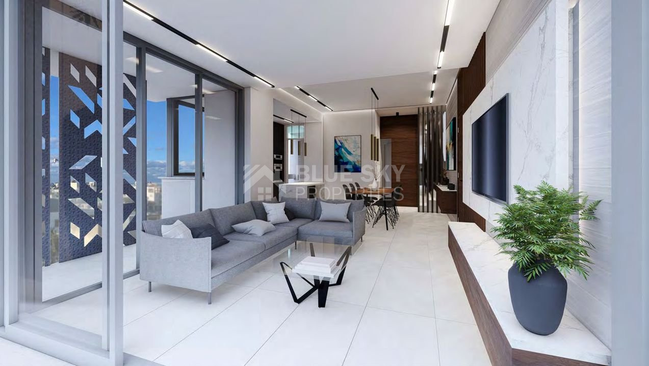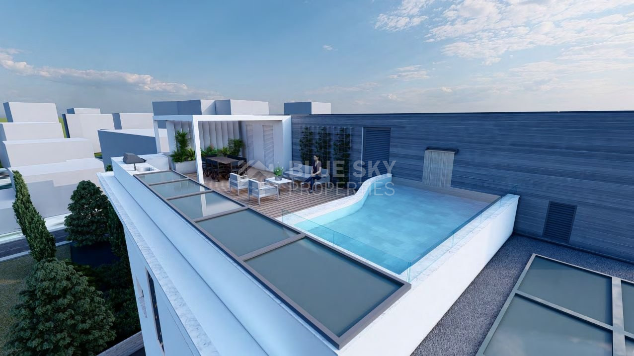 For sale is a stunning off-plan top-floor apartment in the vibrant area of Pafos. This modern residence offers a spacious internal area of 91.5 square meters, featuring two well-appointed bedrooms and three bathrooms, providing comfort and convenience for its future occupants.