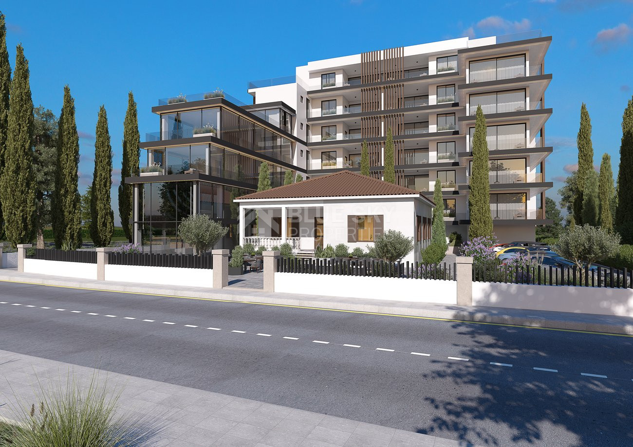 For sale off-plan 3-bedroom apartment in Pafos, on the 2nd floor of a 6-storey building with elevator. Internal space is 111.4 m2, featuring a bright open-plan kitchen and living area, two bathrooms, and large windows opening to a generous balcony. Set within a gated complex with a communal swimming pool, fully equipped gym, and landscaped grounds. Optional furnished.