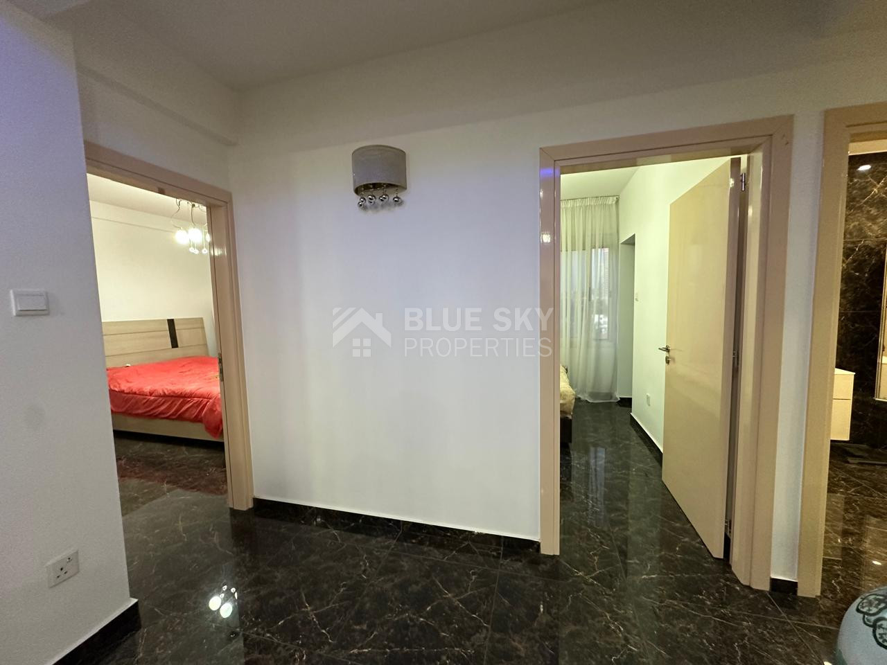 The apartment includes three well-proportioned bedrooms, a modern bathroom with shower. High-quality finishes such as marble flooring, double-glazed windows, and sound insulation enhance comfort and durability.