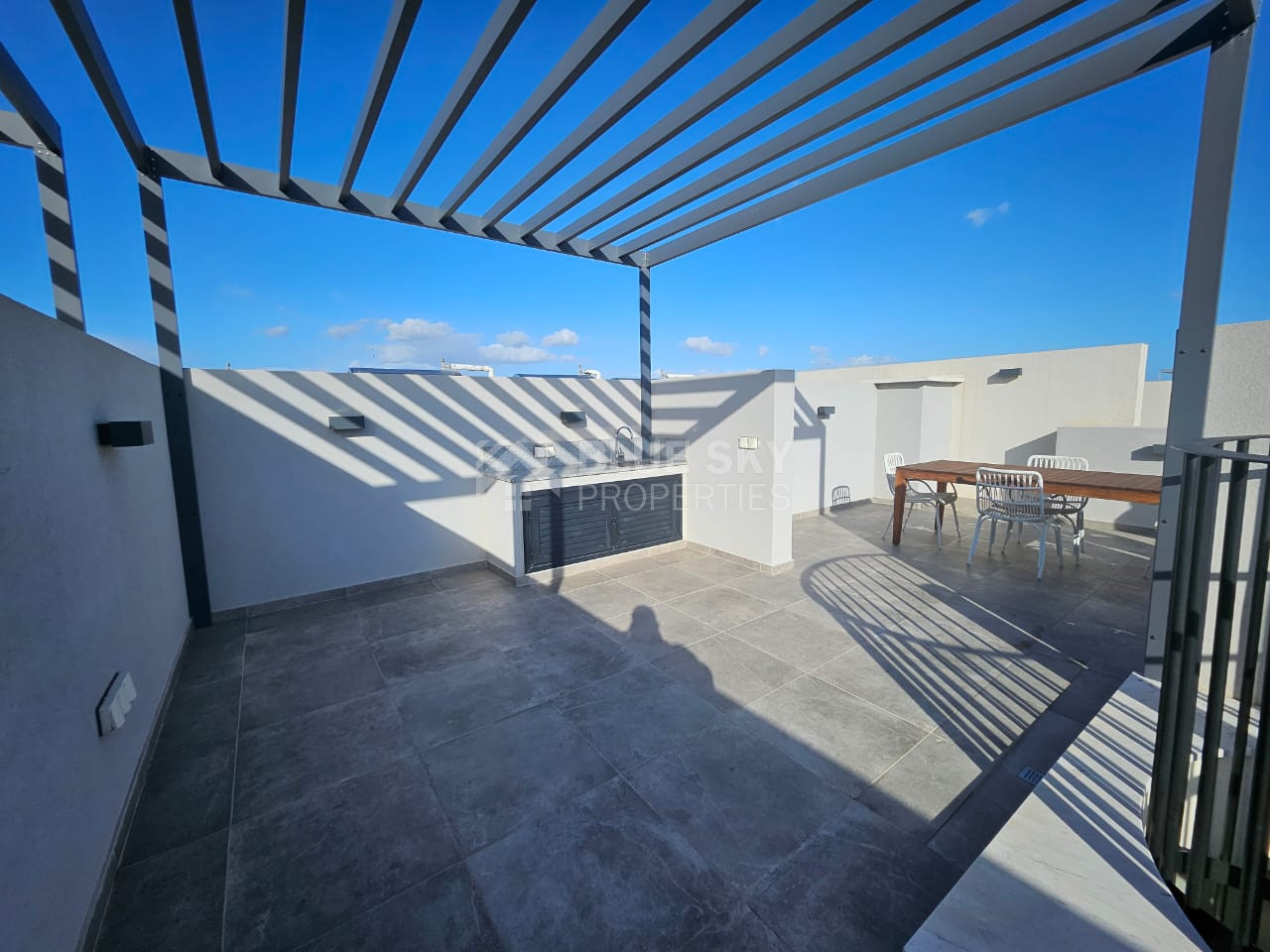 For sale: This spacious 2-bedroom apartment is located on the top floor of a modern, well-maintained building in Tserkezoi. With a generous internal area of 100 m², this home offers plenty of space for comfortable living. The apartment is unfurnished, giving you the freedom to design it according to your personal style. The building is equipped with an elevator for your convenience and easy access.