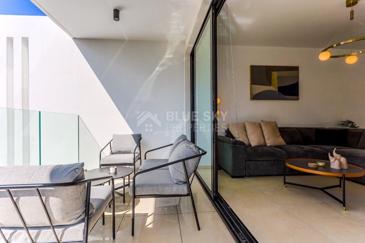 Answer: Yes, the apartment is fully furnished with contemporary, stylish furniture and equipped with all essential appliances for modern living.
