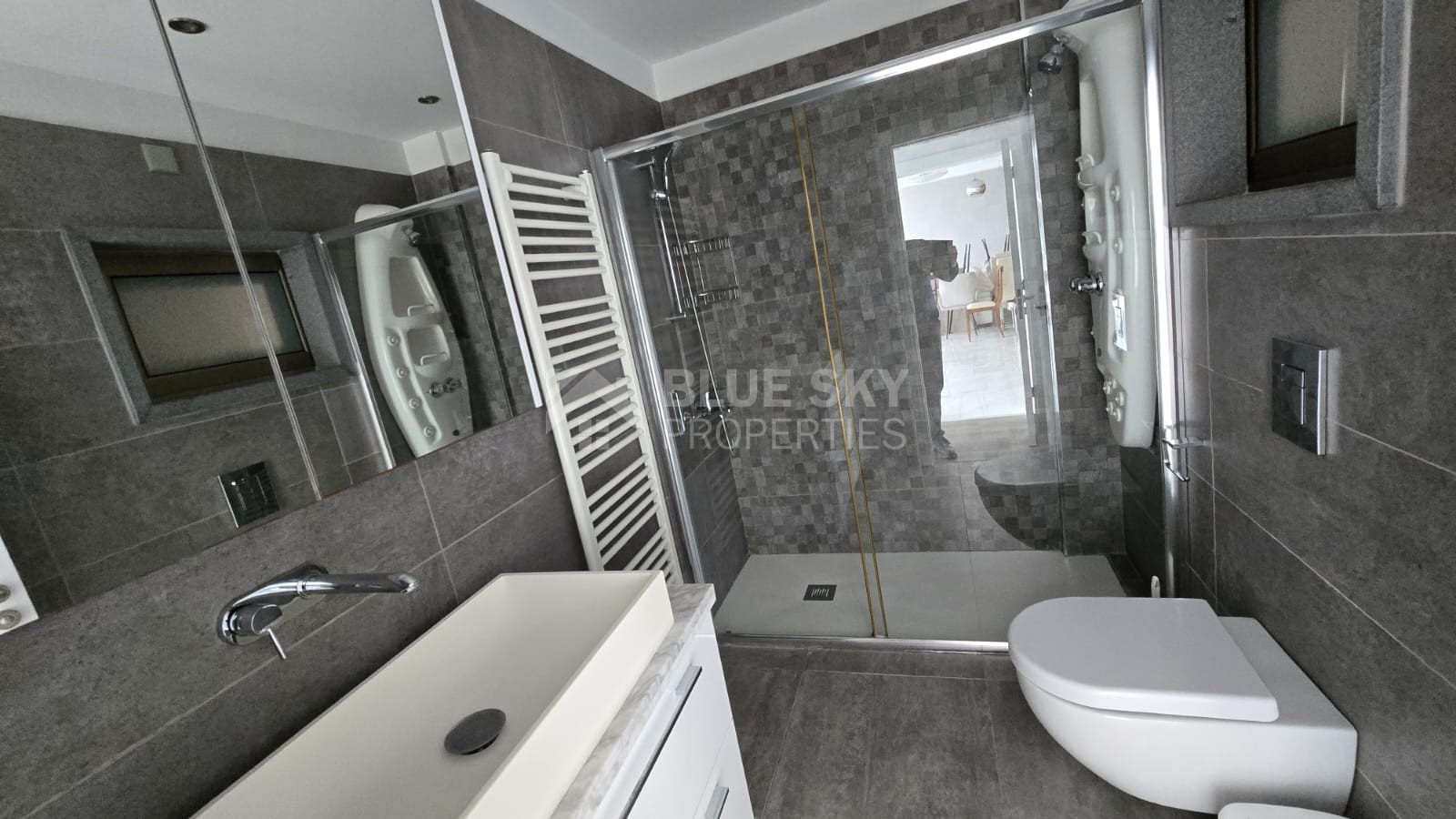 The apartment is south facing, allowing natural sunlight to fill the open-plan living and dining areas. Large windows provide stunning sea views, making every day feel like a retreat. The spacious kitchen is fully equipped, while ample storage meets your practical needs.