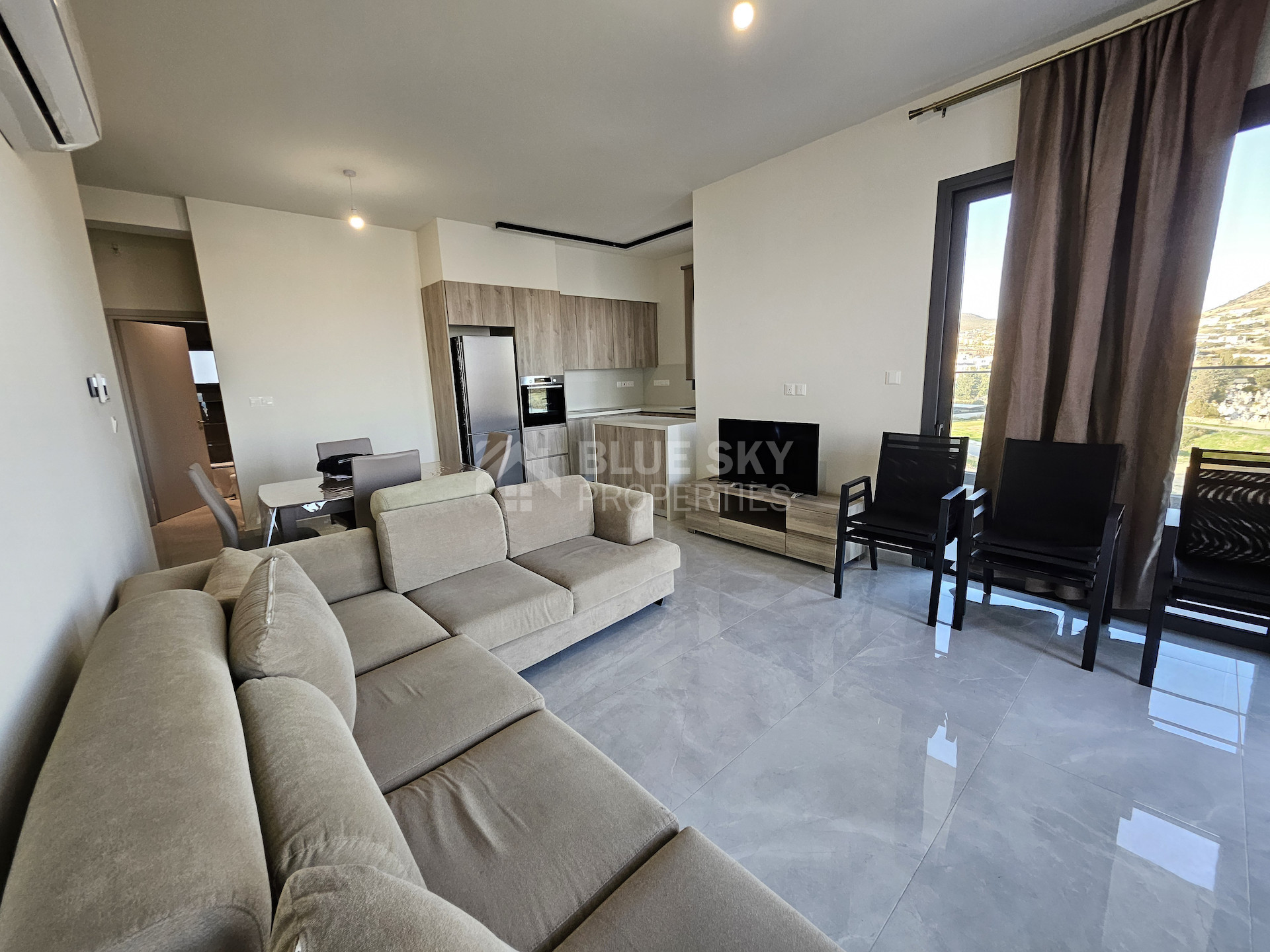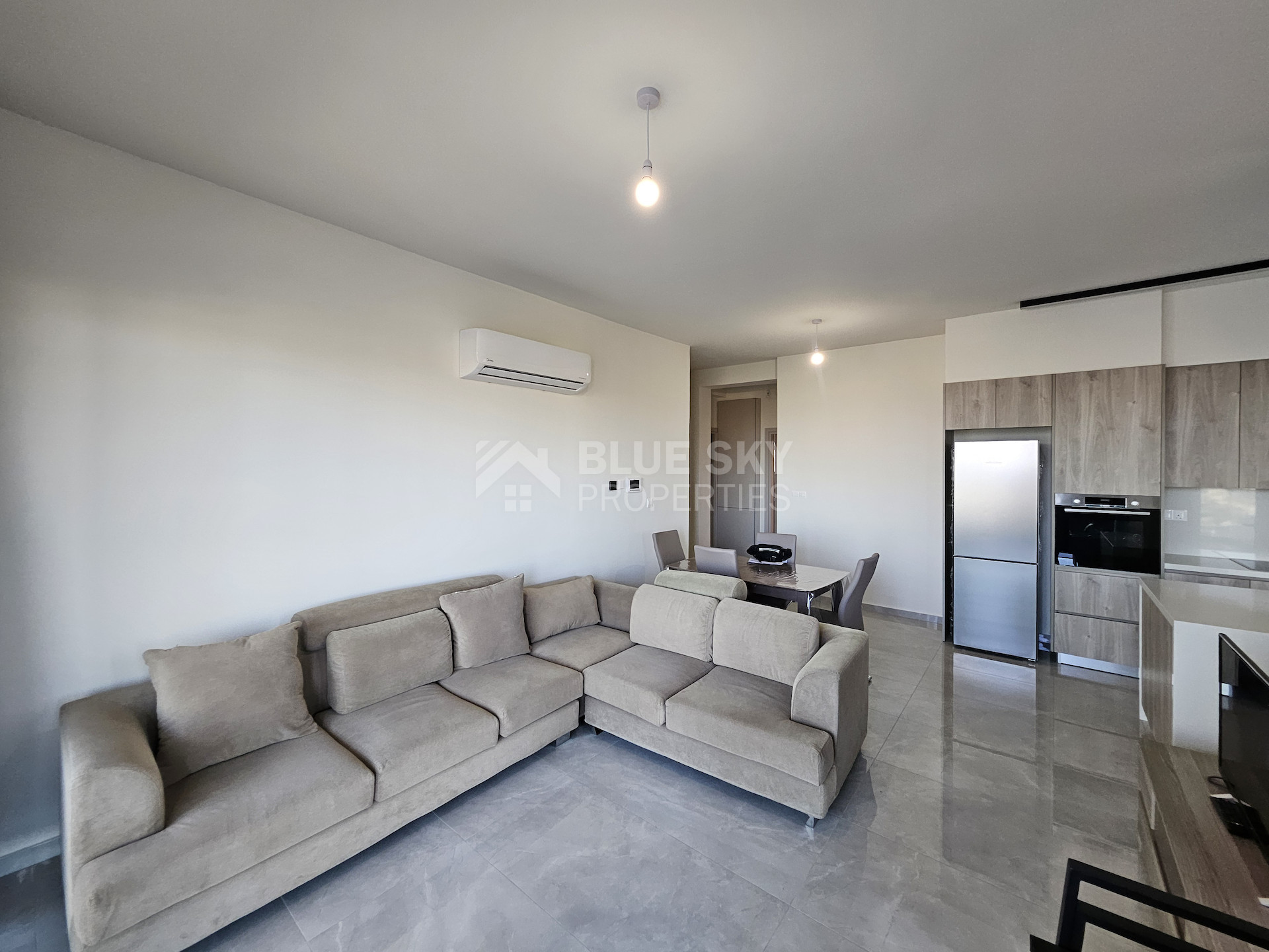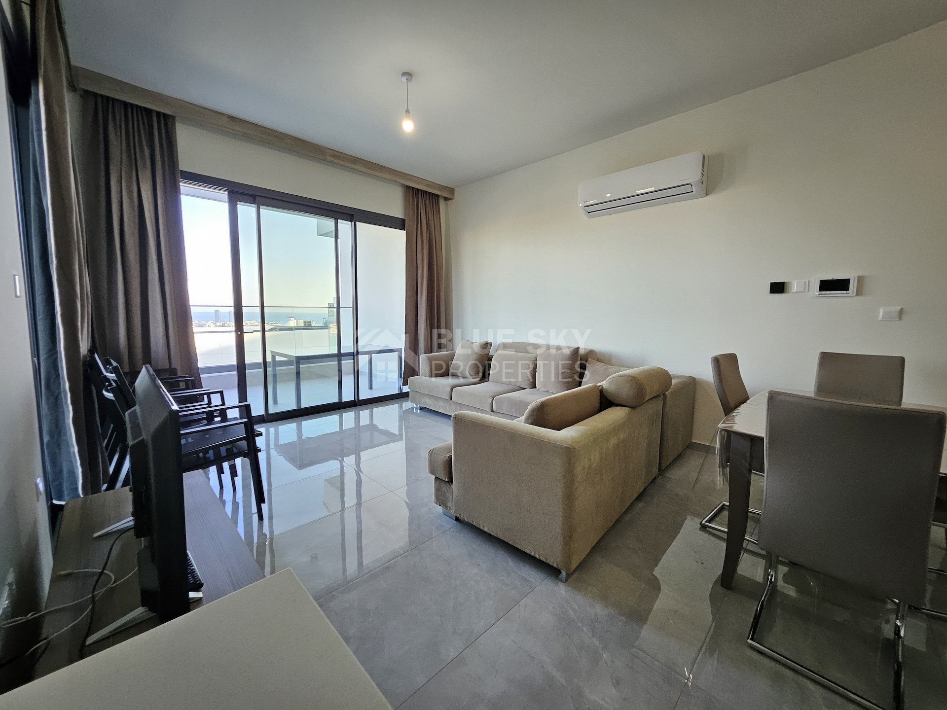 Inside, you'll find a spacious open-plan living and dining area that leads to a balcony with a pleasant city view and sea view. The fully equipped kitchen comes with high-quality appliances, making meal preparation easy from day one. This apartment features two well-appointed bedrooms and two contemporary bathrooms, providing privacy and convenience for residents and guests alike.
