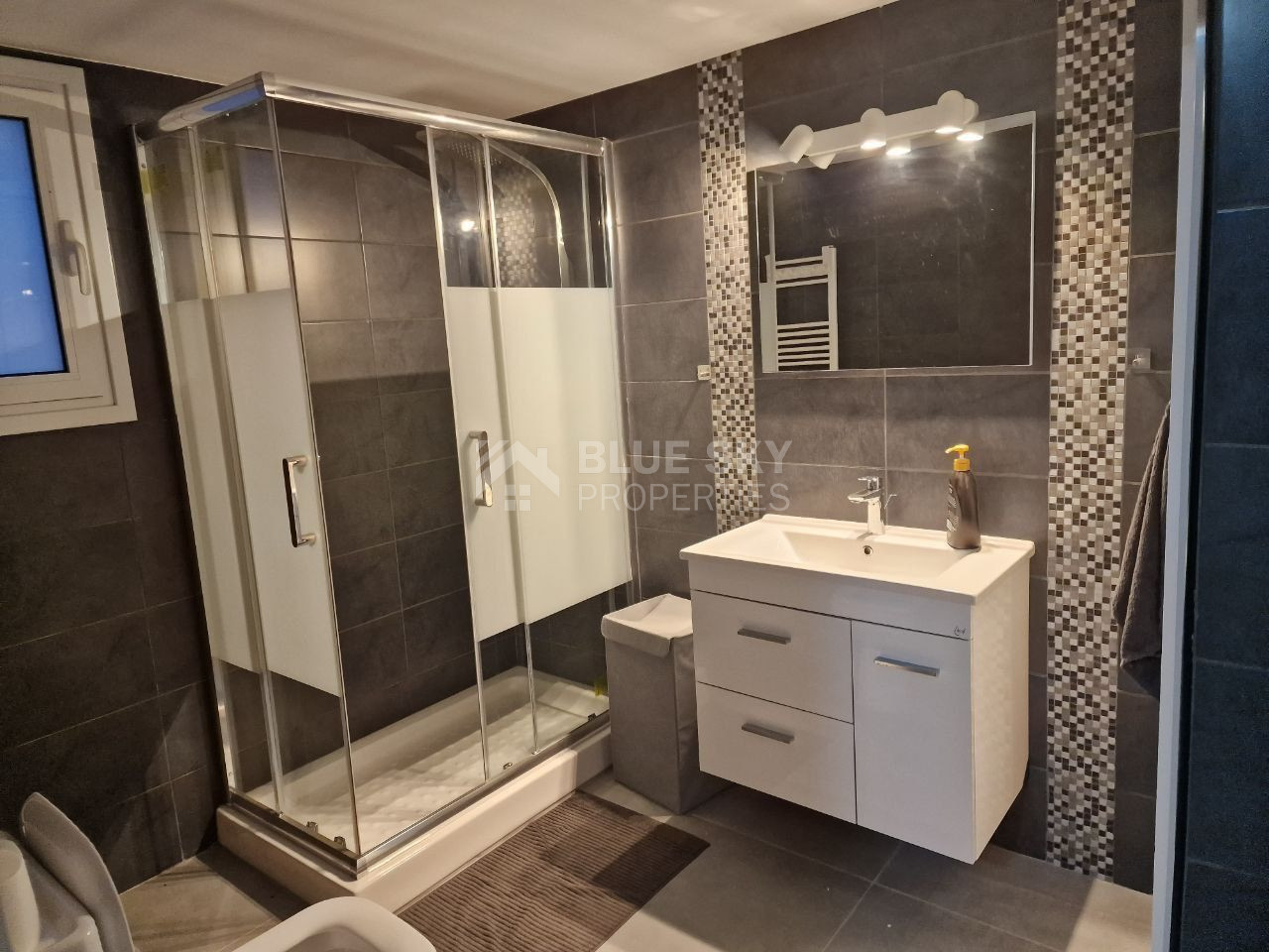 The apartment is located just a few minutes’ walk or drive from the sea, shops, mini markets, schools and the mall.