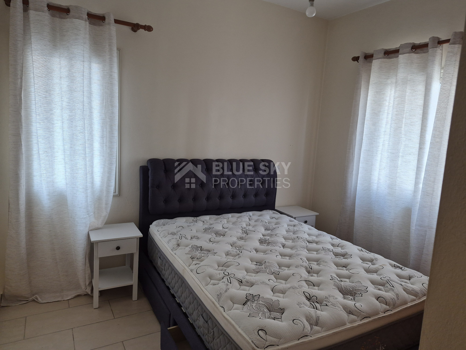 For rent: This charming two-bedroom, two-bathroom apartment offers comfortable living in the peaceful neighborhood of Agios Theodoros. Located on the ground floor, the apartment spans 85 square meters of internal space, providing a generous layout ideal for couples or small families.
