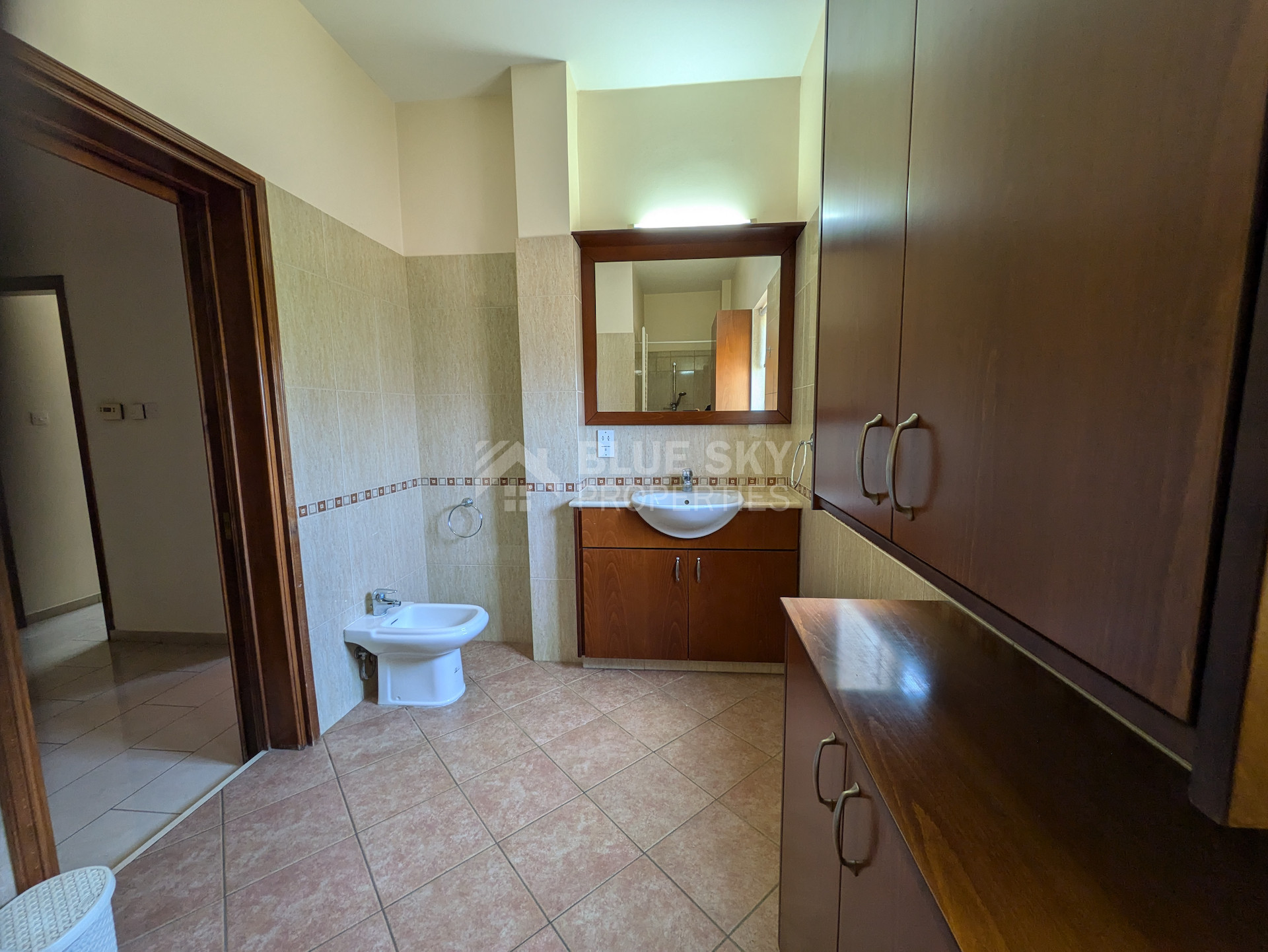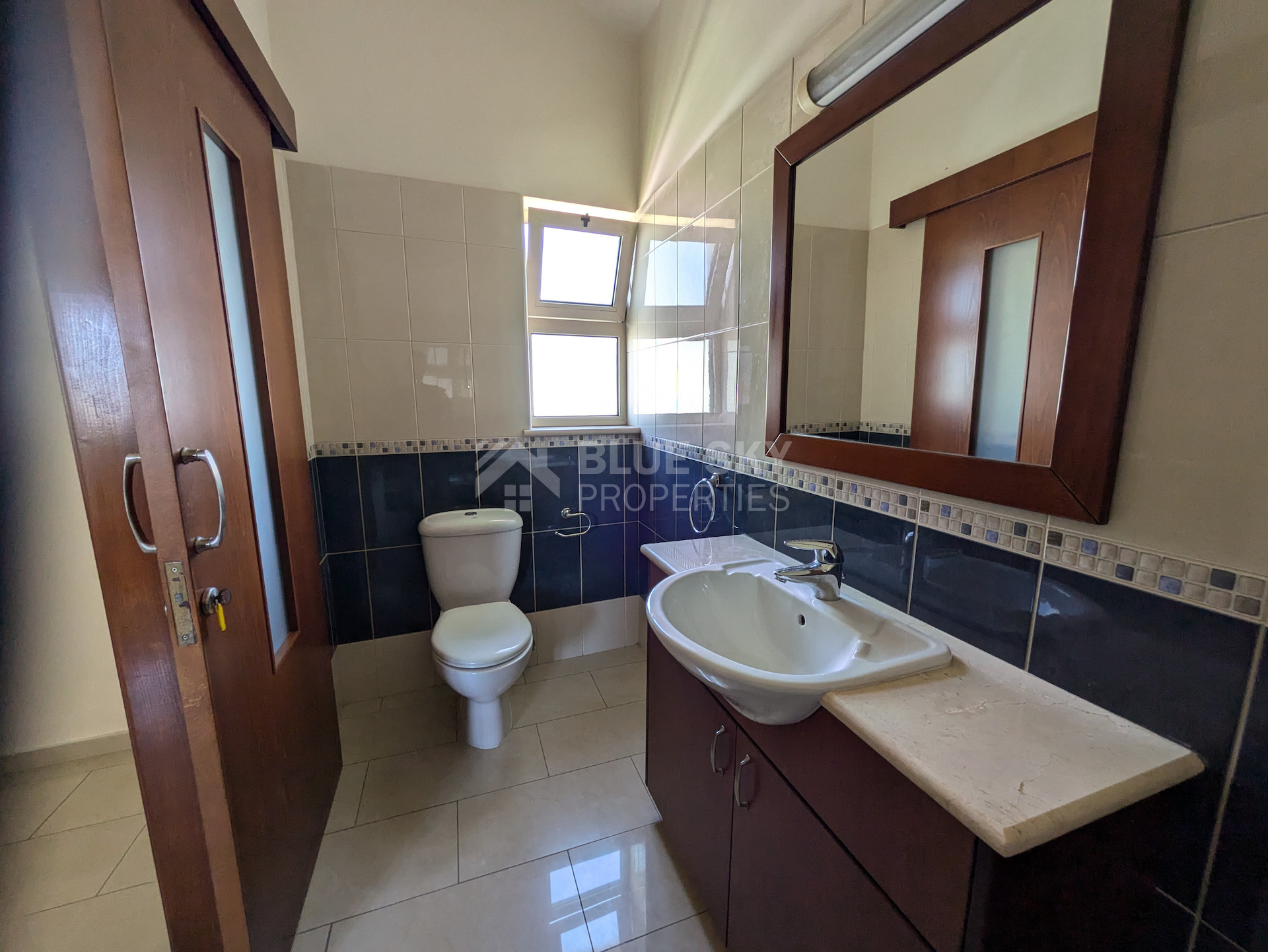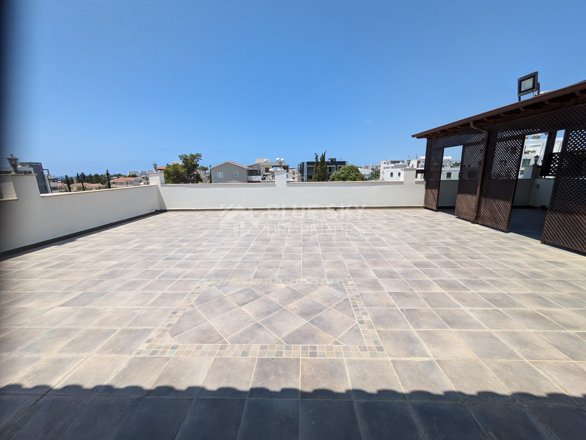 This spacious 4-bedroom, 4-bathroom Penthouse is now available for rent in Geroskipou. With an impressive internal area of 300 m2, this well-maintained, fully furnished residence is situated on the 1st floor of a two-story building. The property offers a comfortable and modern layout, with generous living areas, large bedrooms, and a fully equipped kitchen. Each bedroom has access to its own bathroom, providing privacy and convenience for all residents.