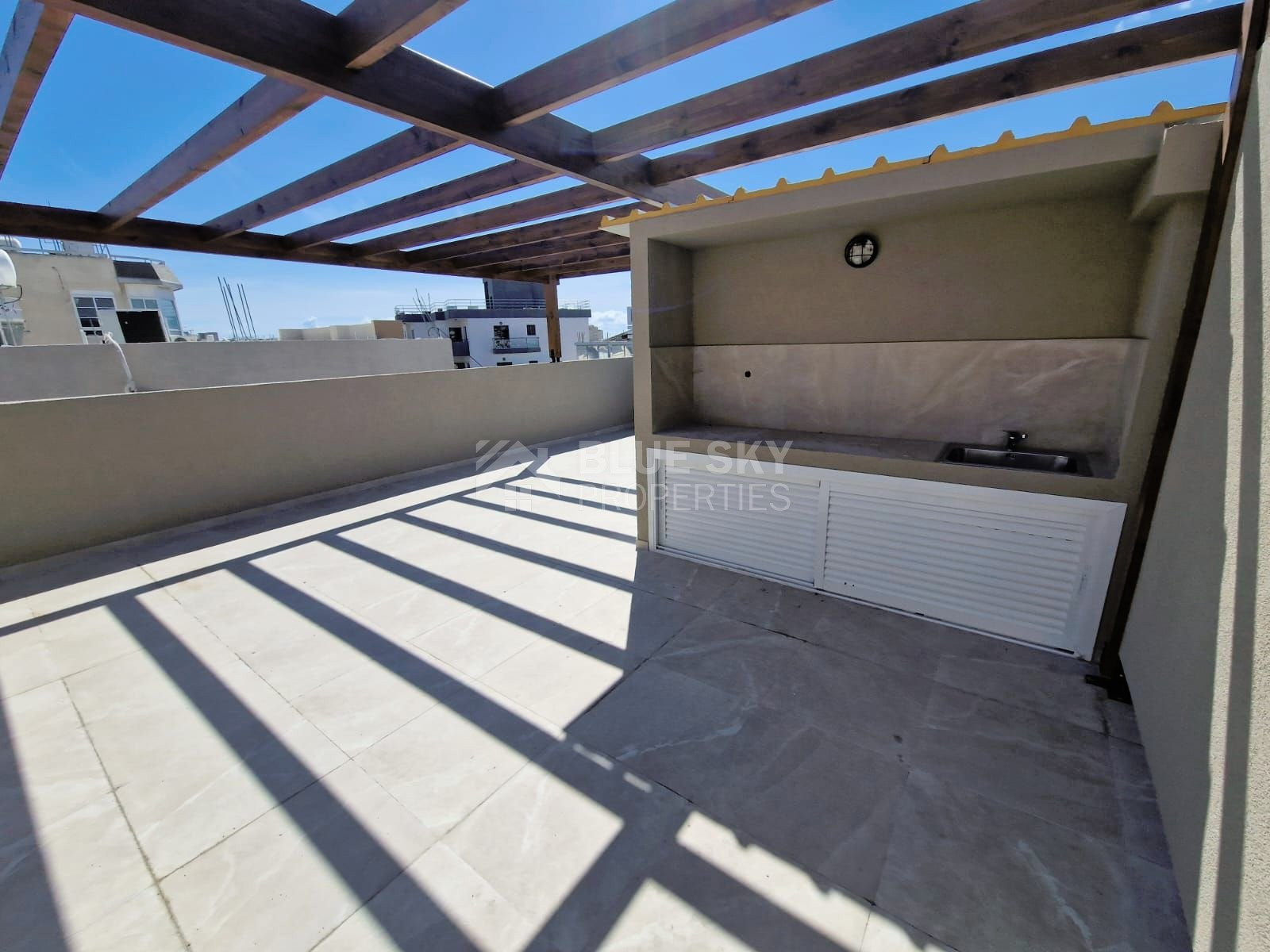 This unique commercial building, located in the sought-after area of Apostolou Petrou & Pavlou, presents a rare investment opportunity. With a design that supports both commercial and residential purposes, the property offers two spacious levels, each with 130 sq.m. of versatile space, making it ideal for a variety of uses. Both the ground and upper floors feature three rooms, a separate kitchen equipped with electrical appliances, and a generous lobby area. The ground floor includes a convenient storage room in the parking area, while the second floor, accessible via internal stairs, features a rear balcony. Additionally, the building offers a rooftop garden with a BBQ area and extra storage space, perfect for entertaining or relaxation.