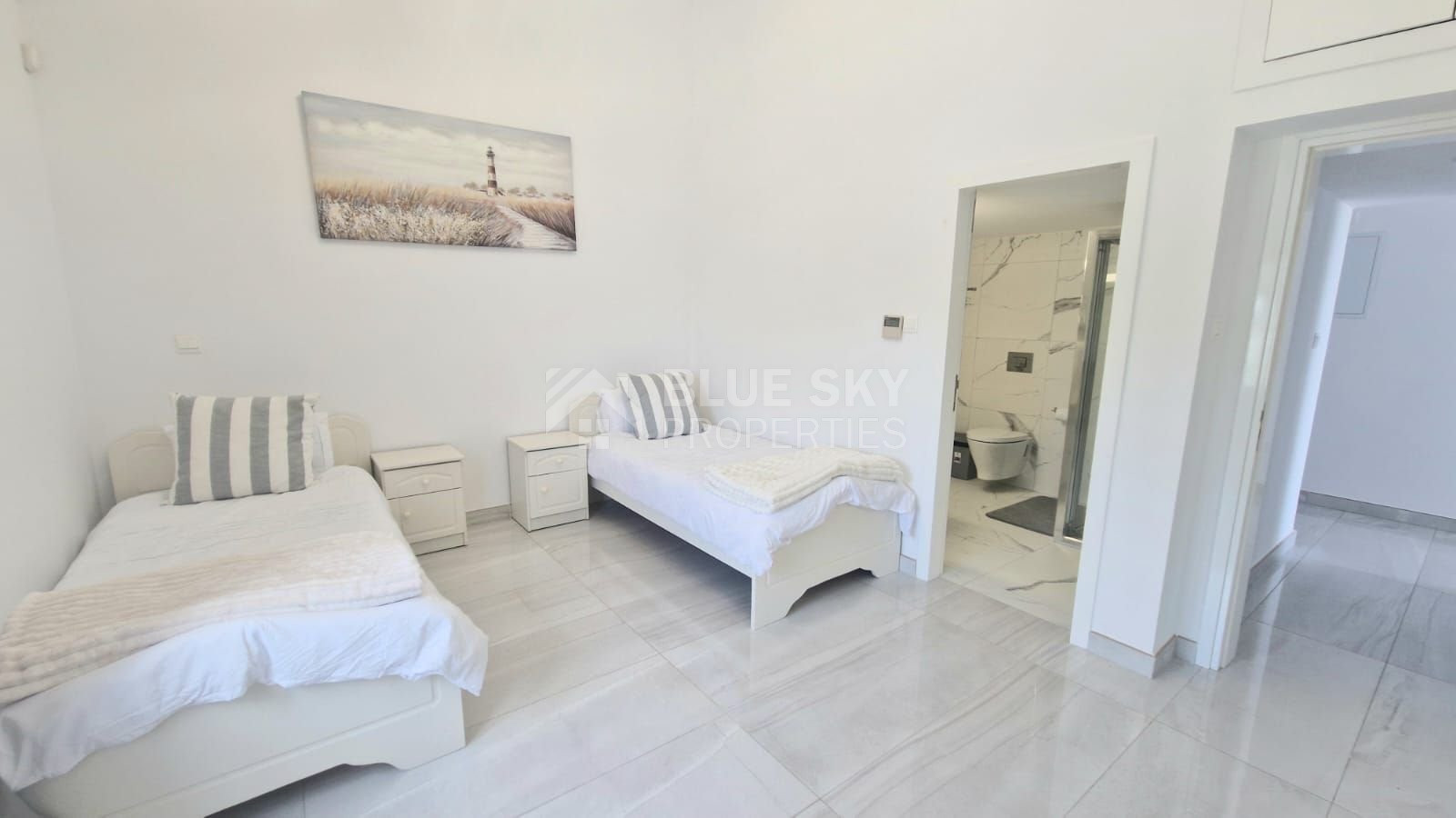 For sale is a key ready, modern detached bungalow, offering generous living space of 244 m². This beautifully designed home features four spacious bedrooms, each with en-suite bathrooms, and an additional guest bathroom. Built in 2024, it benefits from A+ energy efficiency, making it both stylish and eco-friendly.