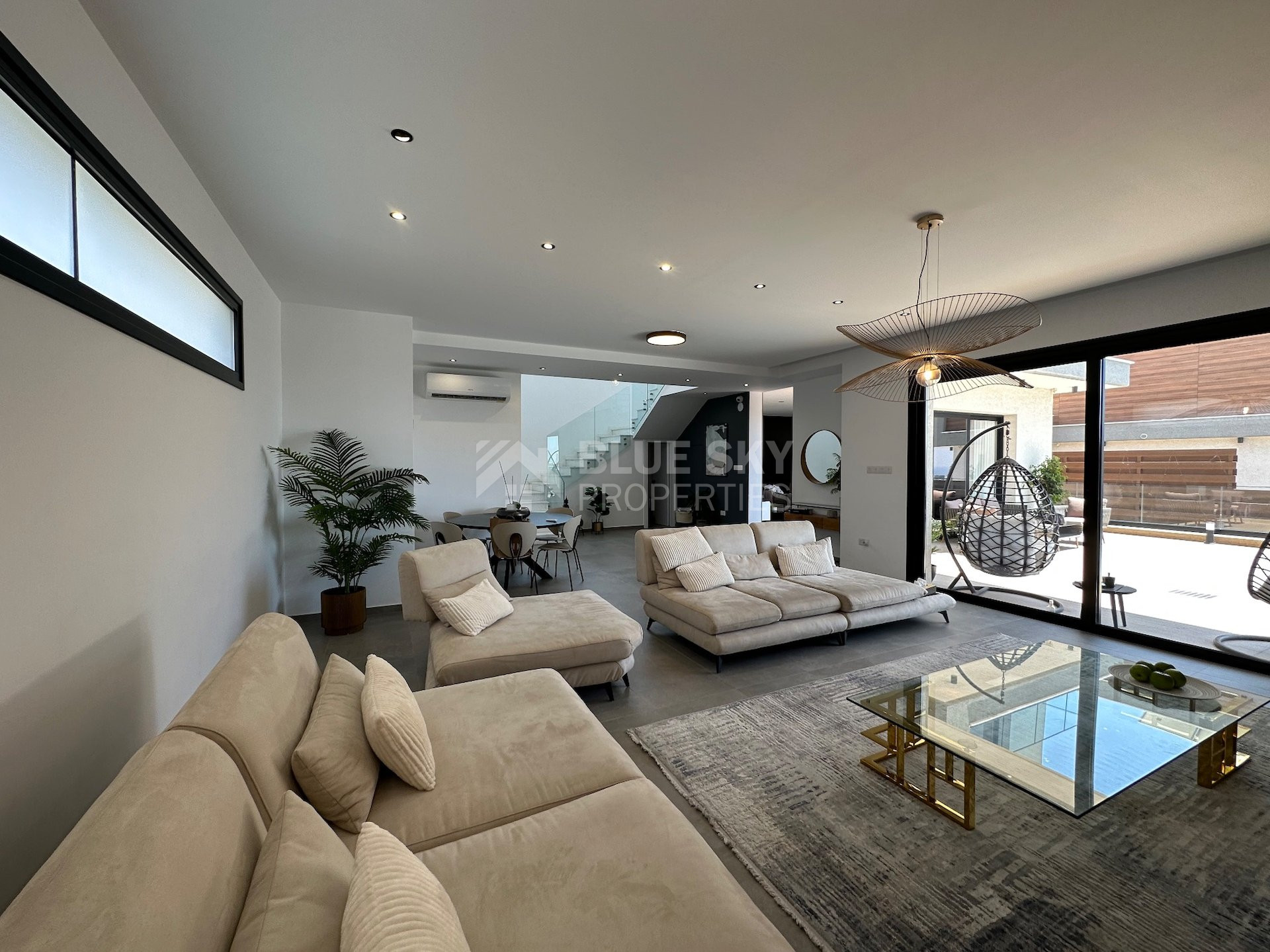 Double electric garage, utility room, separate maids quarter. South facing with sea views, swimming pool infinity overflow.