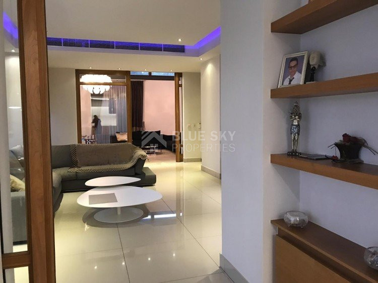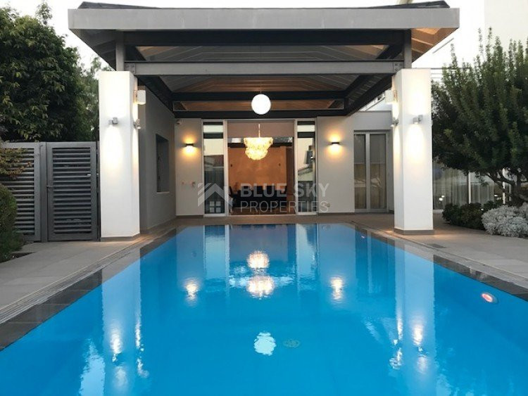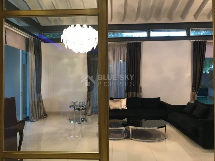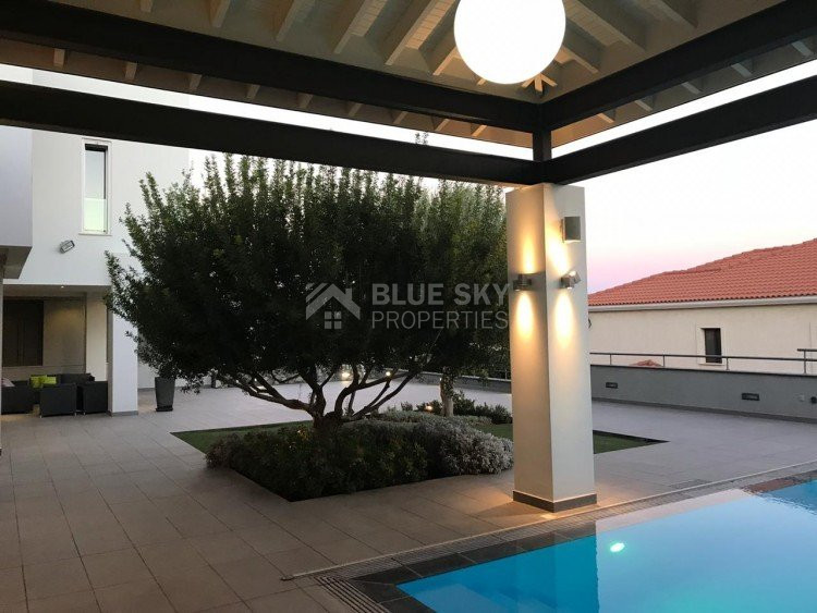 A luxury villa on three levels consisting of ground level, first floor and basement area. Situated on a corner large plot of 970m² south facing, securely gated around with landscaped gardens for privacy. Comfortable sitting/dining /tv area with separate kitchen breakfast/diner and utility area. Patio doors from all sides give an inside out feel. The rooms have sliding doors within the walls which can partition areas or give an open connecting feel. Ground level also has guest wc/shower, and 4th bedroom/office/ chill out room. Upper level has 3 bedrooms, master en suite with walk in wardrobe, main bathroom, All bedrooms have balconies. Further utility/laundry area. The house if fully smart house system, fully automated with Siemens automation system, Central sound system with 4 zones, full wifi system and smart phone connection to house. Security CCTV cameras and alarm system, glass break sensors. Daikin climate system throughout the property, moreover under floor heating diesel. All windows are dual glass for noise and heat insulation. The swimming pool is overflow with salt water, hydraulic cover for safety purposes, outside shower/wc/jet shower. All lighting and feature lighting is LED. Elevator to all floors, all wooden surfaces and doors, built in furniture units are of walnut wood. The modern kitchen and utilty area are made of Dupont materials blended with Corean surfaces. The stairs and bathrooms are of marble. Large veranda with outside sitting area with electric cover, built in BBQ, and external kitchen for outside entertainment. Lower ground level has maids quarter with bedroom shower/wc with separate entry. Double electric garage that can accommodate 3 cars, large storage areas.