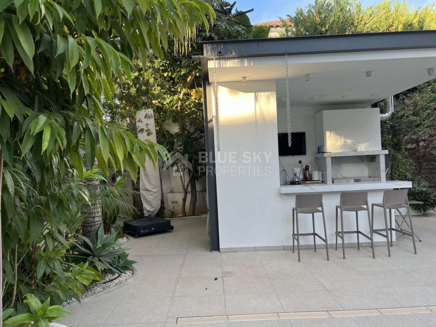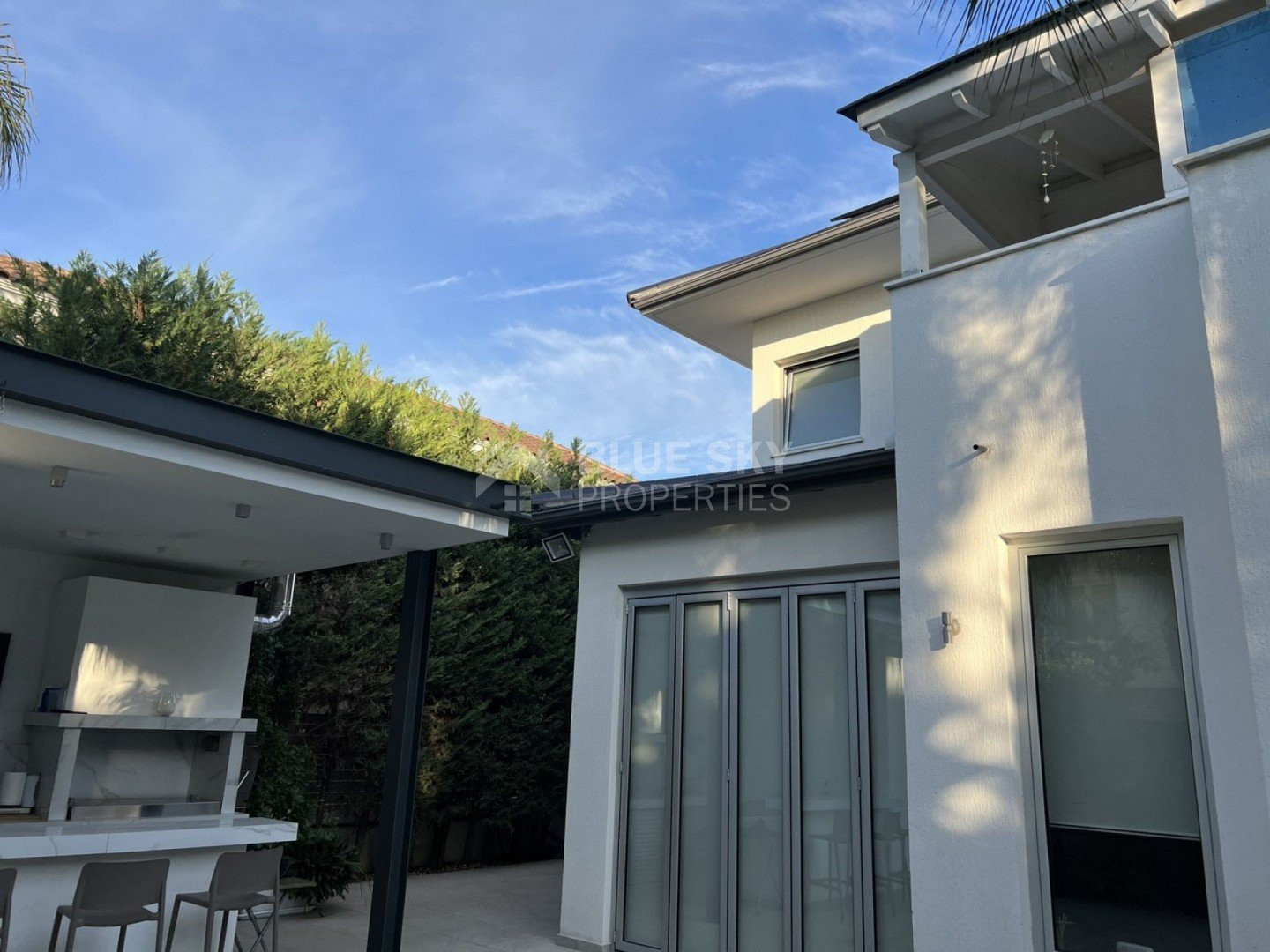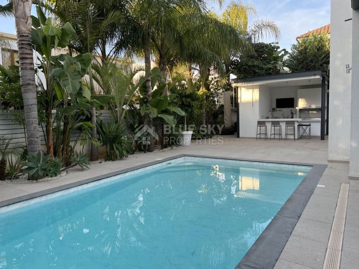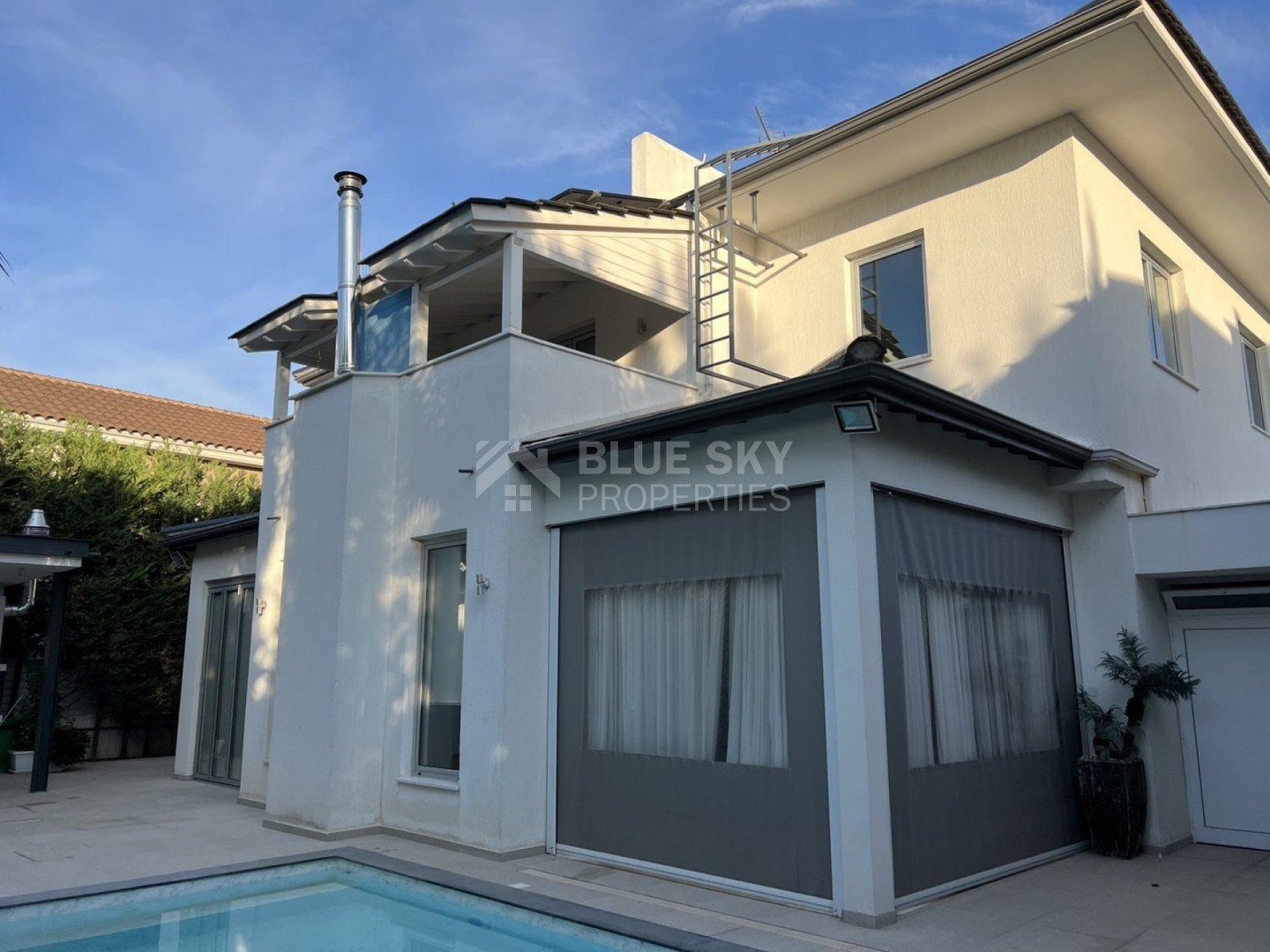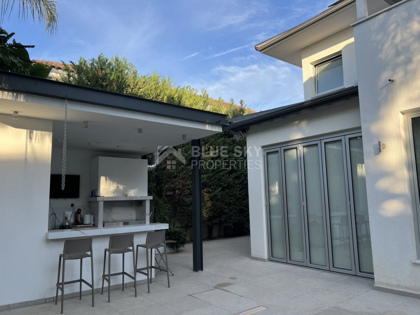An exceptional 2 level 4 bedroom luxury villa in Agios Spyridonas the most nicest area in Limassol.It has private parking for two cars with electrical gate.Also it has a beautiful garden and private swimming pool, in addition to sharing a green lawn, and a children's playground for more space and comfort.On the ground floor there is an open-plan kitchen, a family room with an open-plan living/dinning room with covered veranda , an utility room and a guest wc.On the first floor is the master bedroom en suite with walk in wardrobe and also another three bedrooms .This beautiful villa has central heating, solar panels connected to electricity supply and control vacuum system.Also it is fully insulated build with an energy rating.It has quick access to all needed amenities including supermarkets, parks and restaurants.