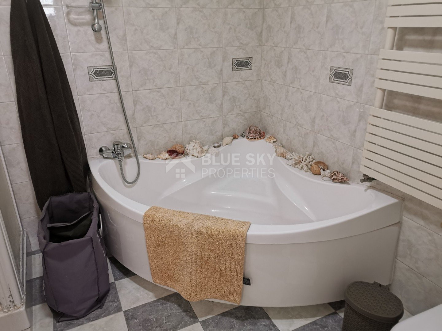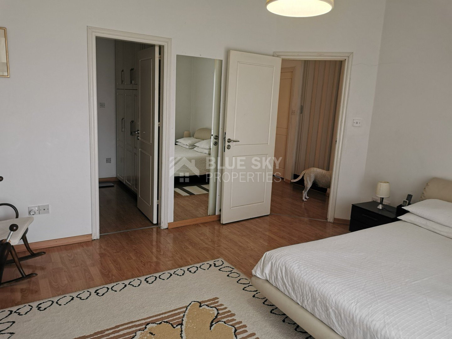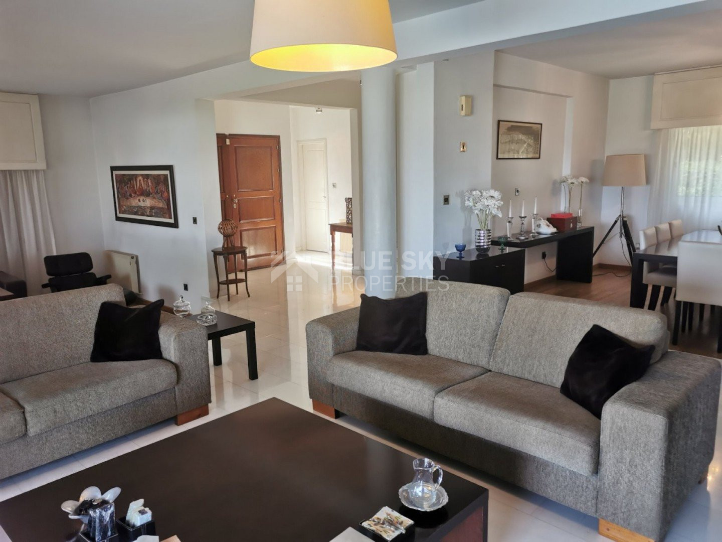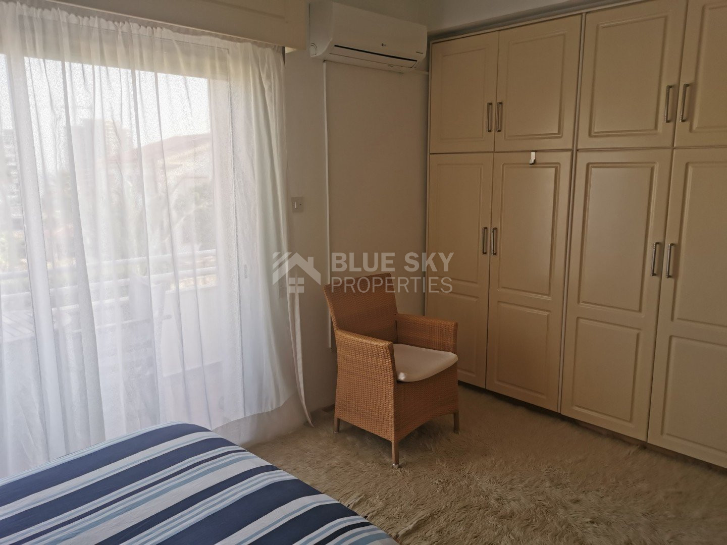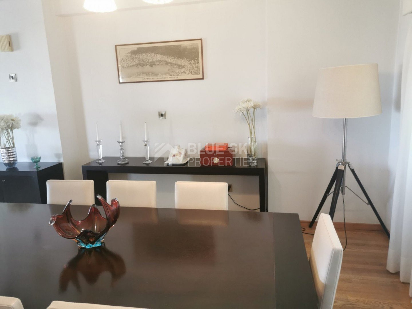 Lovely five bedroom villa in Agios Tychonas with swimming pool and sea view is available now.It has internal covered area 431 square meters and plot size 954 square meters. There is separate kitchen with two living rooms , one sitting room, two dining rooms and a guest w/c. Also there is a fire place, store room and one utility room.There are four bedrooms and one of them has en-suite bathroom, all with fitted wardrobes and a family bathroom on the first floor. Outside of the building there is a nice big garden with trees and flowers, with automatic watering system , large covered parking space for three cars with electric gate and barbecue.There is a maids-room , playing room and kitchenette. The aluminium doors and windows are double glazed with security locks. It has solar water heater with pressure. Also it has security system , alarm system, a/c in all areas diesel central heating and water drilling .The house is located on a hill of Agios Tychonas with view of Limassol and is only five minutes drive from the sea and ten minutes drive from Limassol City.Located in a quiet ,nice area surrounded by nice houses at a dead end road.It has quick access to all needed amenities including supermarkets, parks,schools, restaurants and beach.