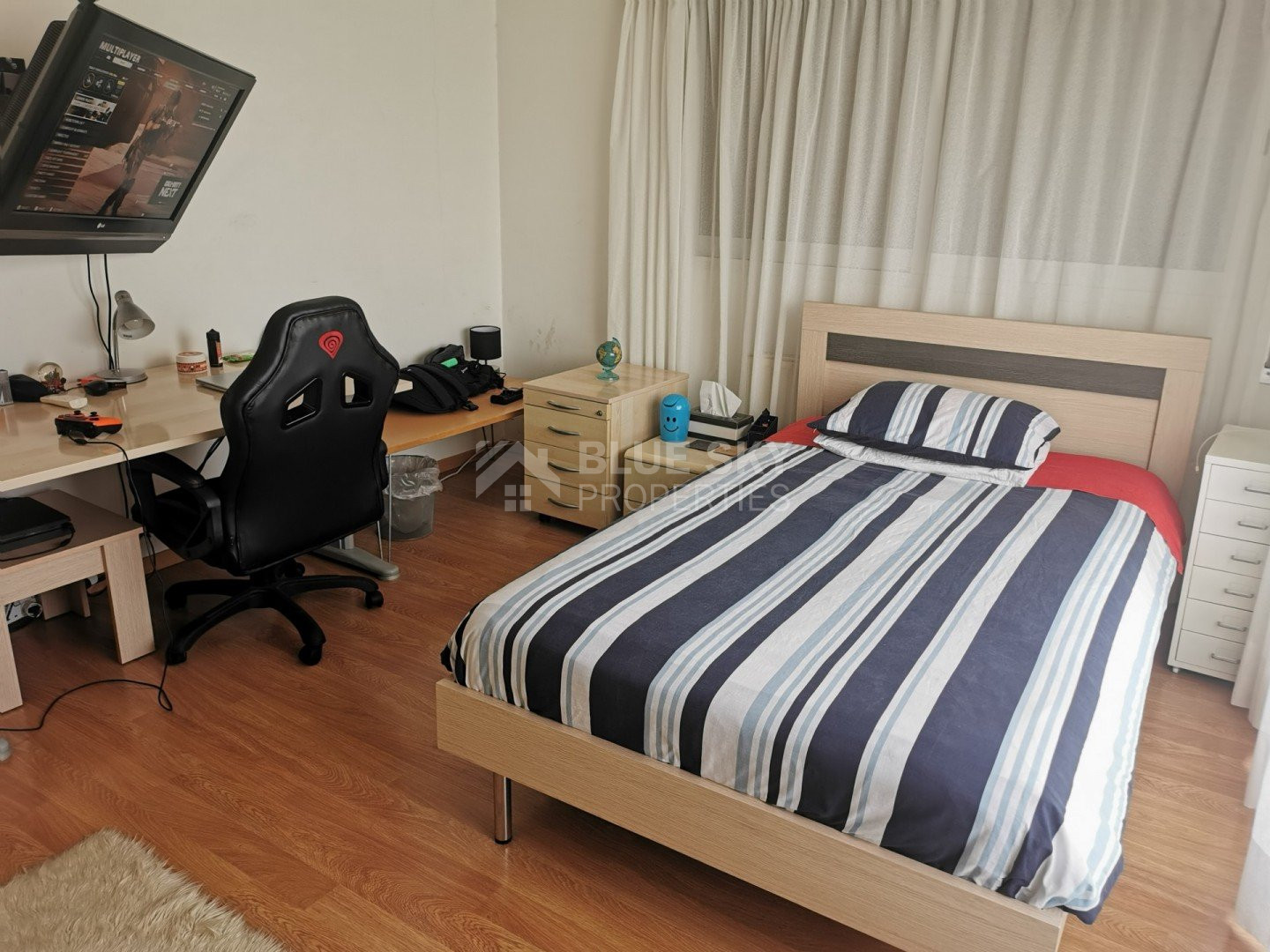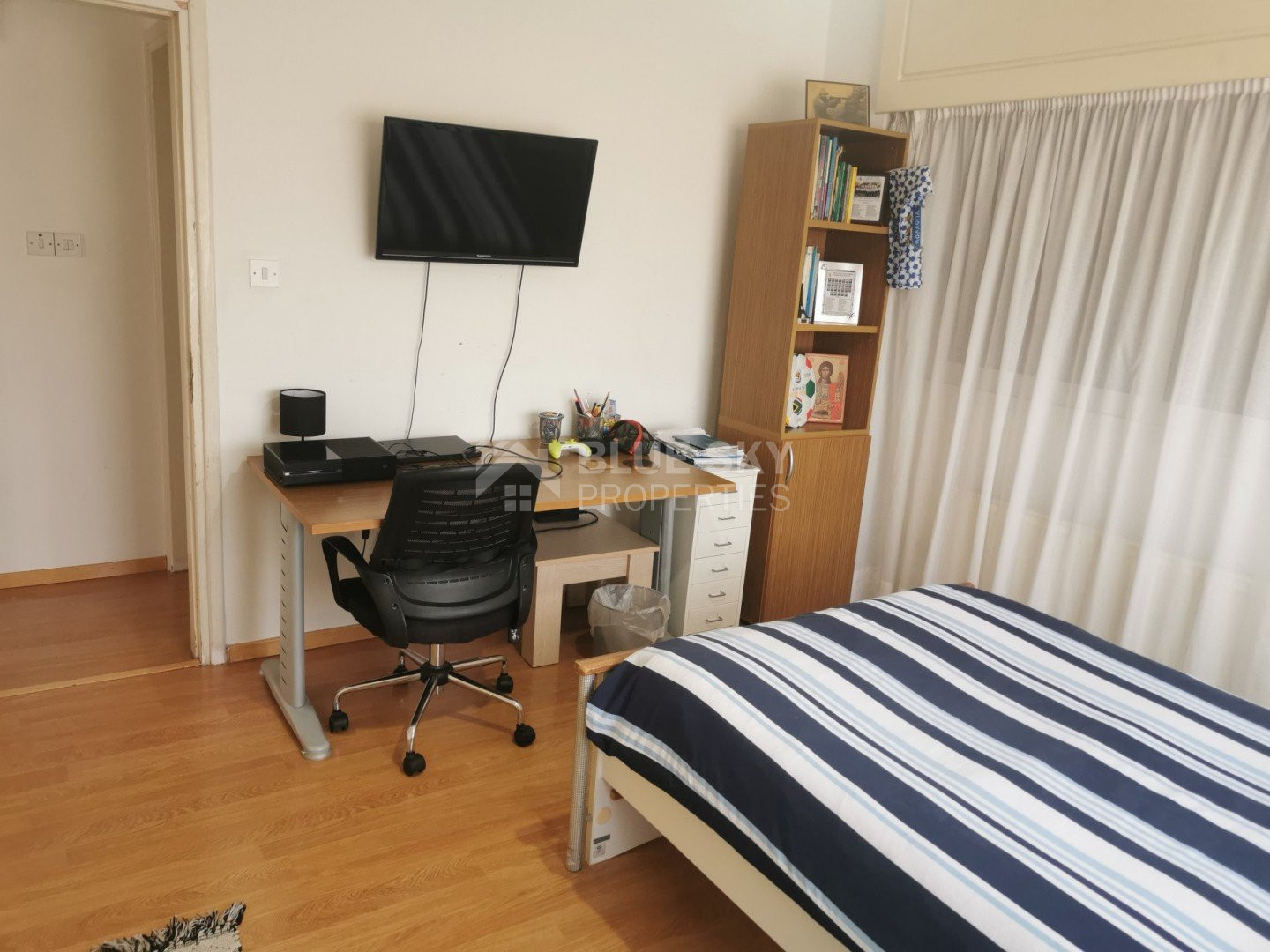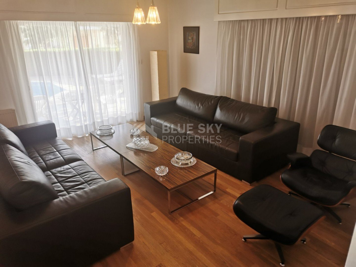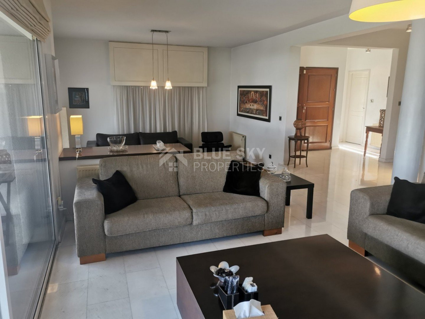 Lovely five bedroom villa in Agios Tychonas with swimming pool and sea view is available now.It has internal covered area 431 square meters and plot size 954 square meters. There is separate kitchen with two living rooms , one sitting room, two dining rooms and a guest w/c. Also there is a fire place, store room and one utility room.There are four bedrooms and one of them has en-suite bathroom, all with fitted wardrobes and a family bathroom on the first floor. Outside of the building there is a nice big garden with trees and flowers, with automatic watering system , large covered parking space for three cars with electric gate and barbecue.There is a maids-room , playing room and kitchenette. The aluminium doors and windows are double glazed with security locks. It has solar water heater with pressure. Also it has security system , alarm system, a/c in all areas diesel central heating and water drilling .The house is located on a hill of Agios Tychonas with view of Limassol and is only five minutes drive from the sea and ten minutes drive from Limassol City.Located in a quiet ,nice area surrounded by nice houses at a dead end road.It has quick access to all needed amenities including supermarkets, parks,schools, restaurants and beach.