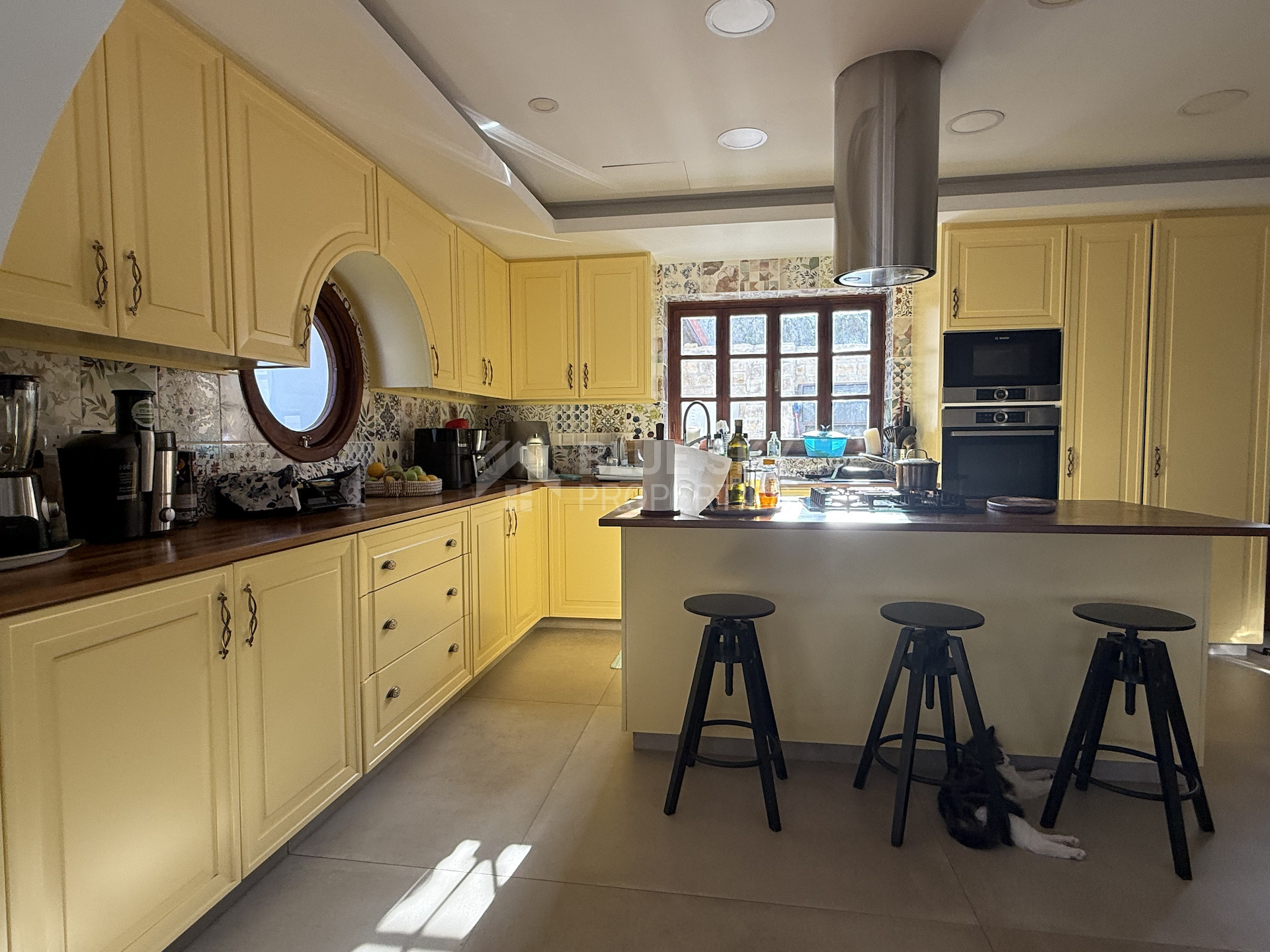 Additional features include central heating throughout, air conditioning units, charming stone archways, and multiple outdoor seating areas.