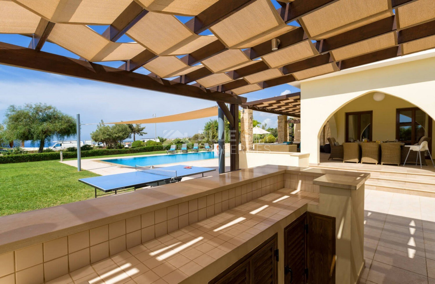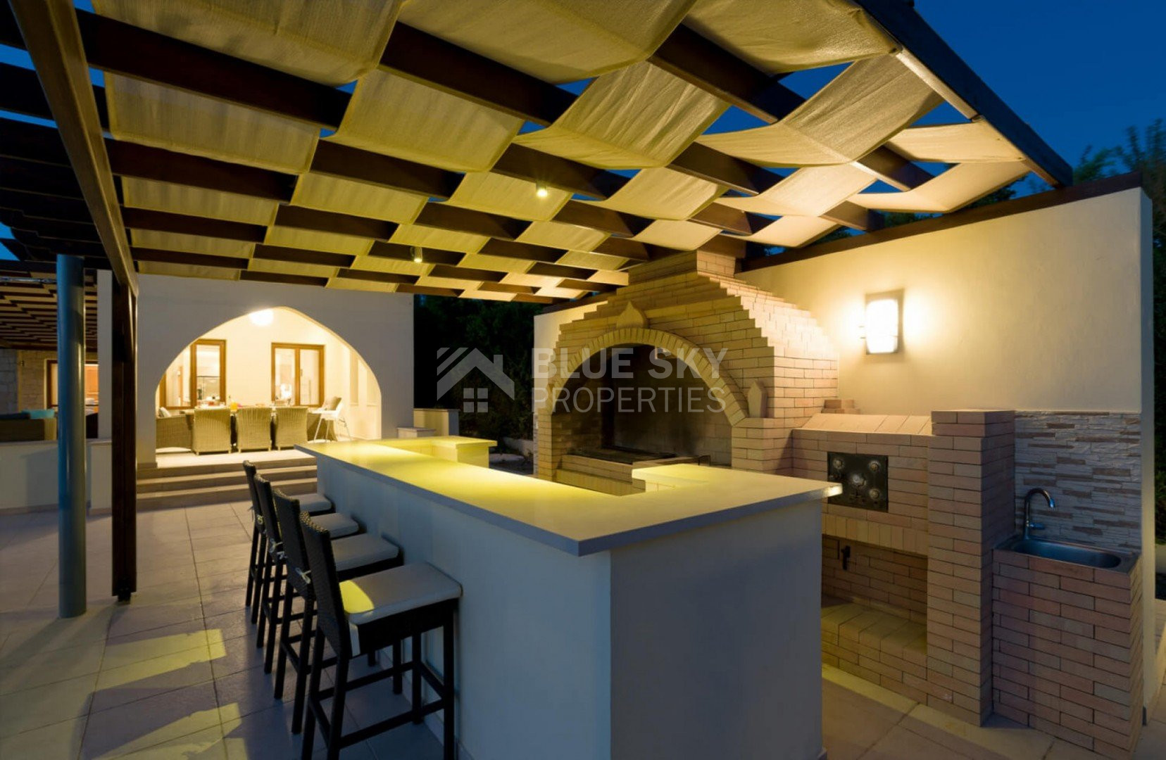 Stepping out of the living and dining rooms through the wonderful French doors, one will notice the gardens below that reflect traditional Cypriot landscaping, a very large 12m x 6m swimming pool with an overflow feature and a very spacious BBQ area to accommodate large gatherings when socializing.