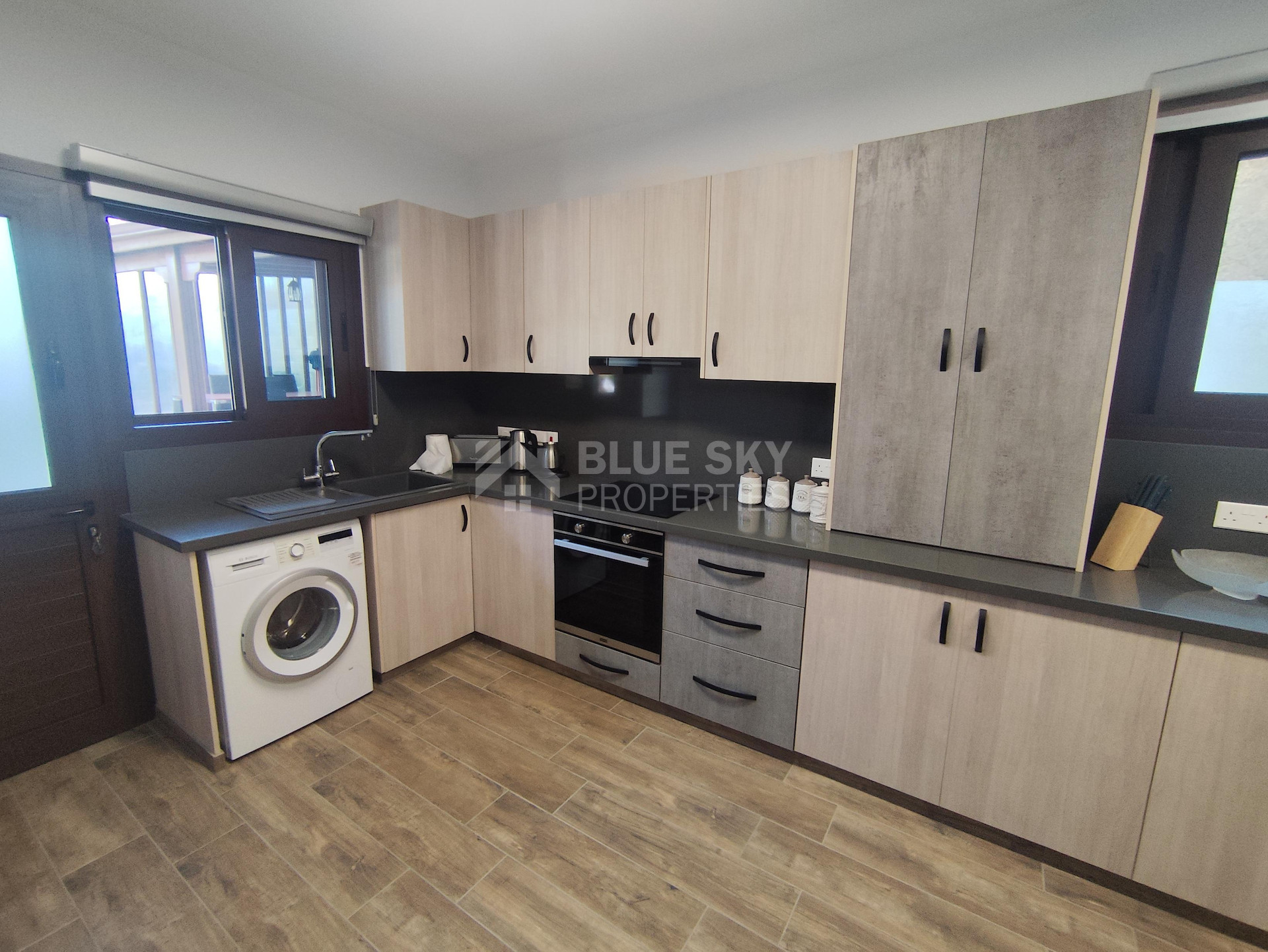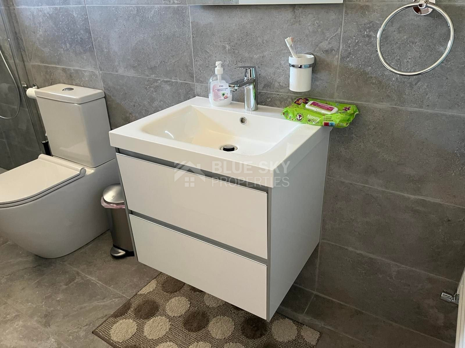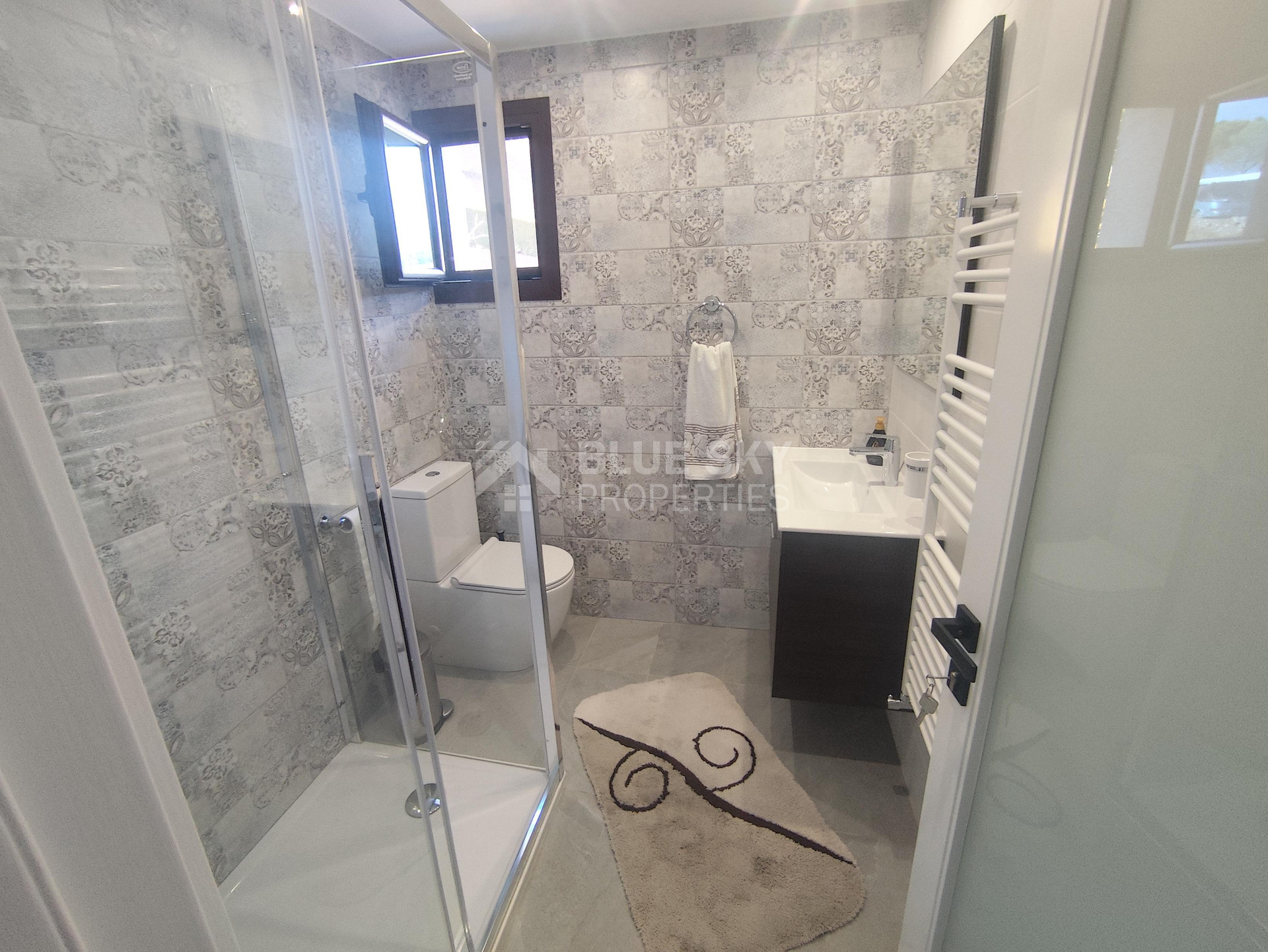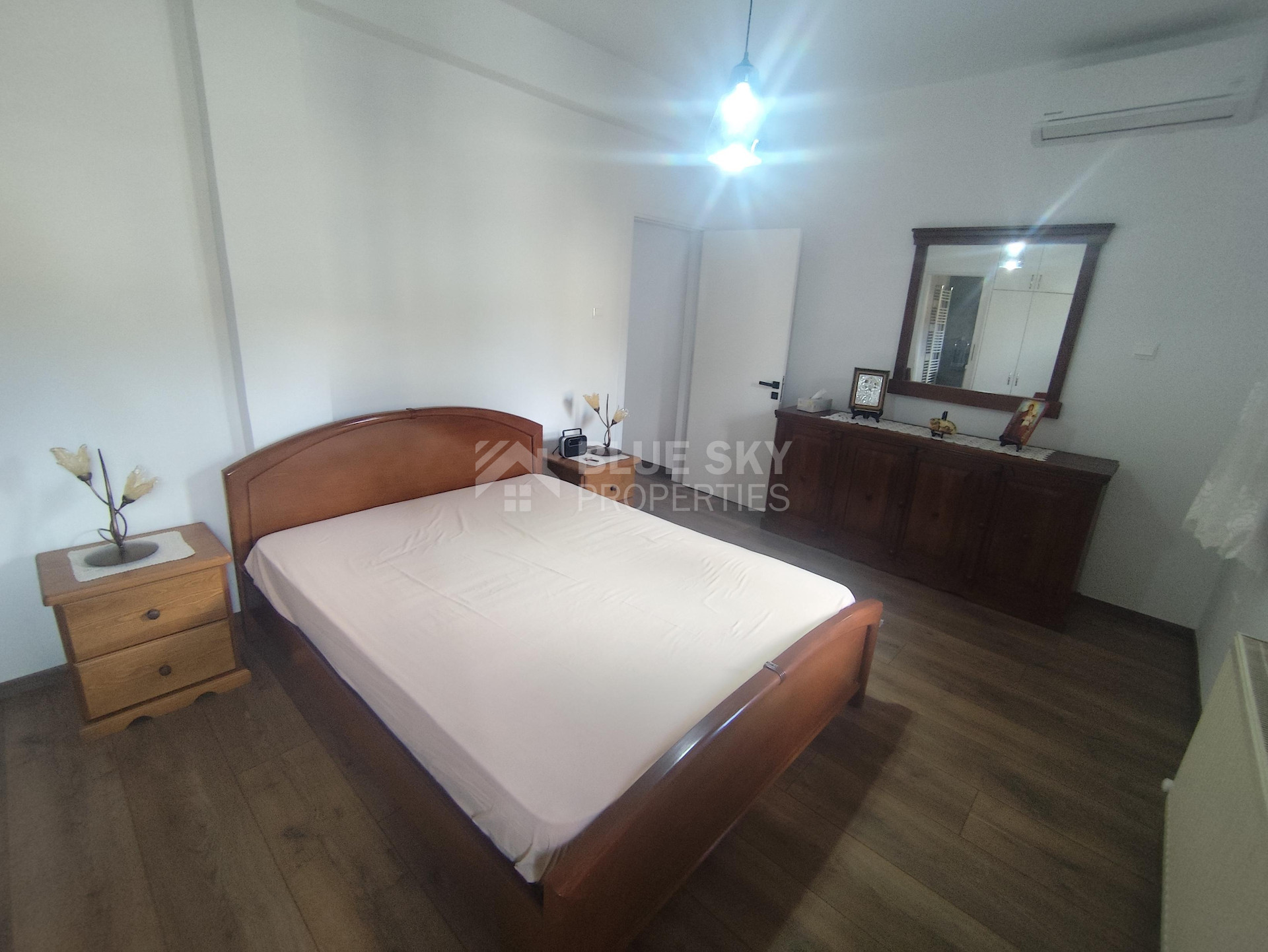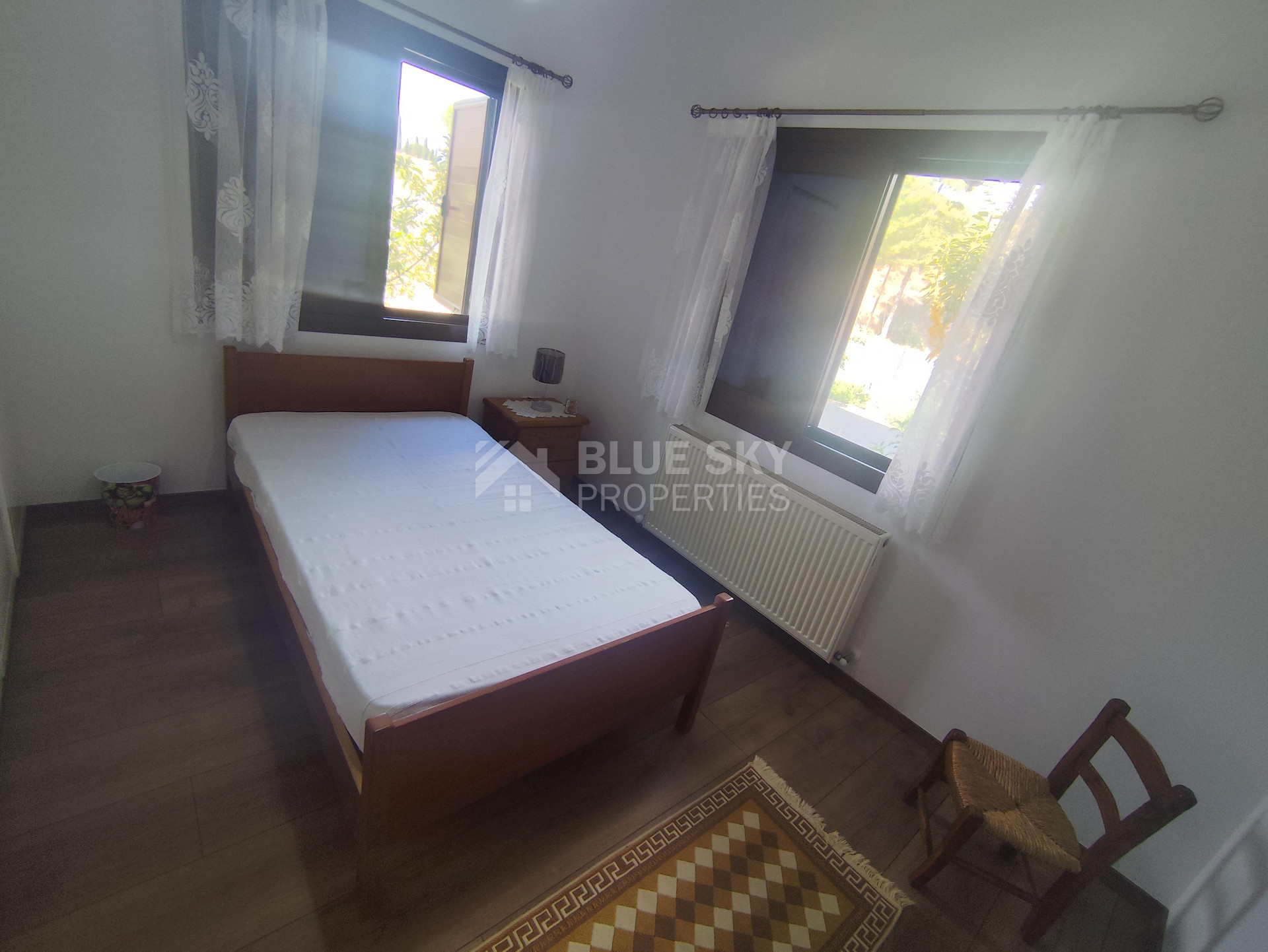 Lovely three bedroom house with panoramic view in Kalo Chorio village is available now.It has internal covered area 150 square meters and the plot is 504 square meters .There is an open plan kitchen with one living room, one dining room , store room, fire place, a/c in all areas and central heating.Also there is nice courtyard with very delicious fruits.There are three bedrooms ( one of them en-suite ) all with fitted wardrobes and one family bathroom.It has solar water heater with pressure , fitted electrical appliances and will be sold with the furniture as well..Located in a quiet ,nice area surrounded by nice houses.It has easy access to the motorway and is very close to the supermarkets, shops, pharmacy etc.