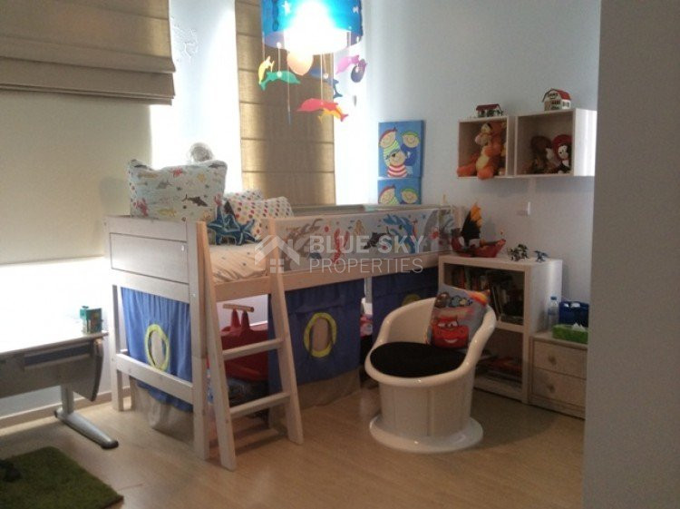 This is a custom built 5 bedroom Villa within easy access to all amenities and schools.The property is built to high standards and offers comfortable living with complete privacy.Double entry, entrance hall, comfortable sitting/dining area with built in modern fireplace, stone feature walls and beamed ceilings give character to this lovely property.Large windows give brightness and views of the gardens from all areas of the property.Spacious fully equipped top quality kitchen with island bar, breakfast/dining area, utility room, access to the covered veranda with outside sitting area.The lounge/tv area, offers built in fireplace moreover connects with the kitchen and breakfast/diner.Ground level en suite bedroom, guest wc.The upper level has spacious landing, 3 double bedrooms, master en suite with walk in wardrobes, large terrace off master bedroom, main bathroom.A further staircase leads to a large loft conversion ideal for teenager’s bedroom with sitting/tv/study area. Outside guest house or maids quarter offering bedroom shower/wc and sitting area.The property has landscaped gardens, lawns, salt water swimming pool, outside sitting areas, fenced around for full privacy, double covered garage.A/C, C/H with geothermal system, water softener, alarm system double glazed windows and shutters.