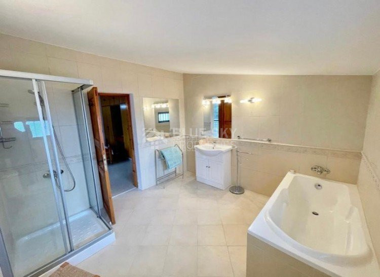A fabulous house in the sought after are of Moniatis, South facing, gated with large plot of 2,852m²./Basement area: 182m² and consists of a living room, kitchen, wc, 5 bedrooms, 3 en suite.Ground floor:has a covered area of 182m² and has an open plan area that functions as living/sitting and kitchen area, wc, 2 bedrooms both en suite with covered and uncovered verandas.1st floor:141m² and consists of 4 bedrooms which are all en suite, two with baths and two with showers.Tiled floors, double glazed windows with electric shutters, internal doors made of wood.The property is a/c with 17 units, and is heated with a fireplace. The building is in very good condition both externally and internally.