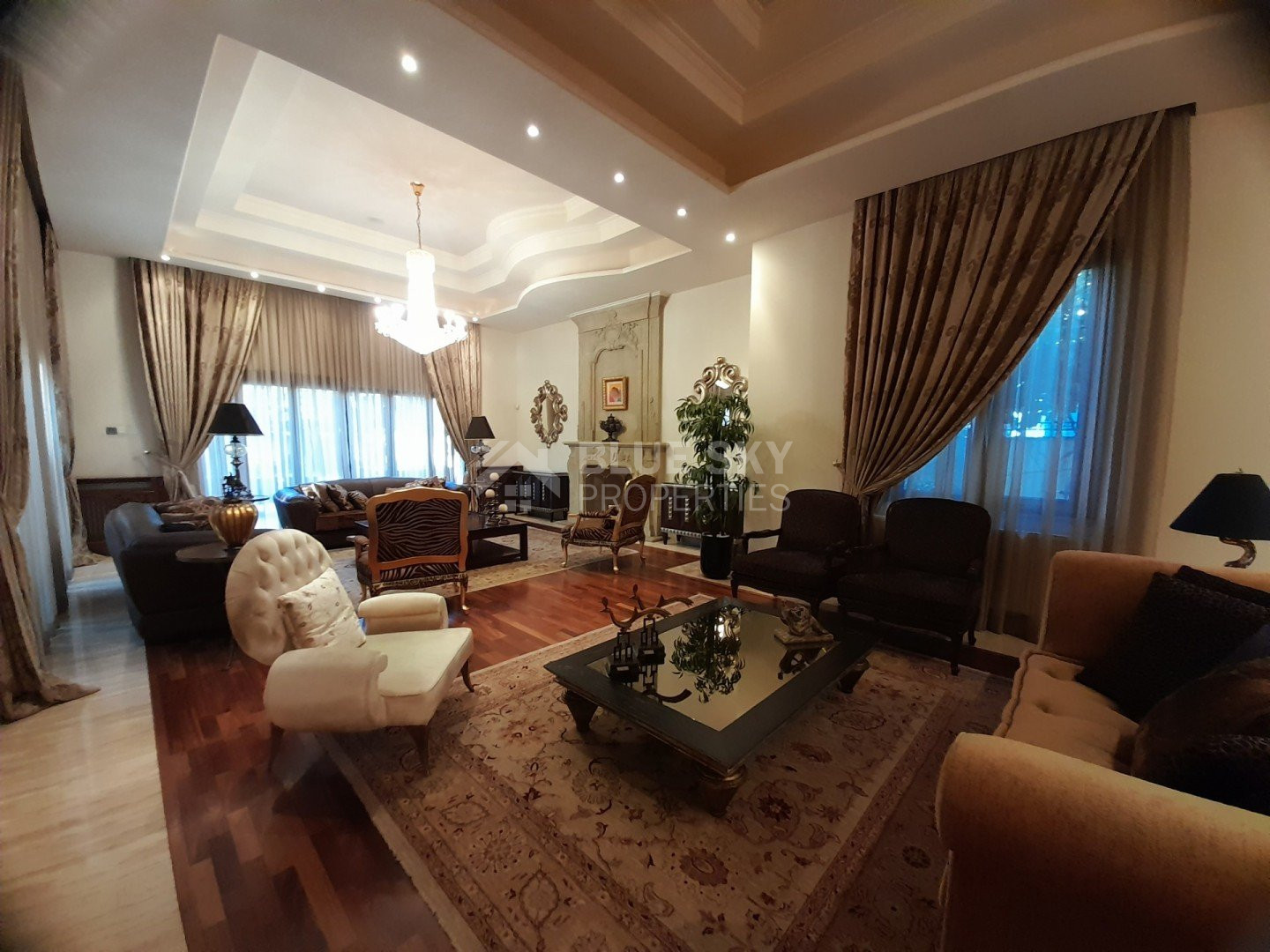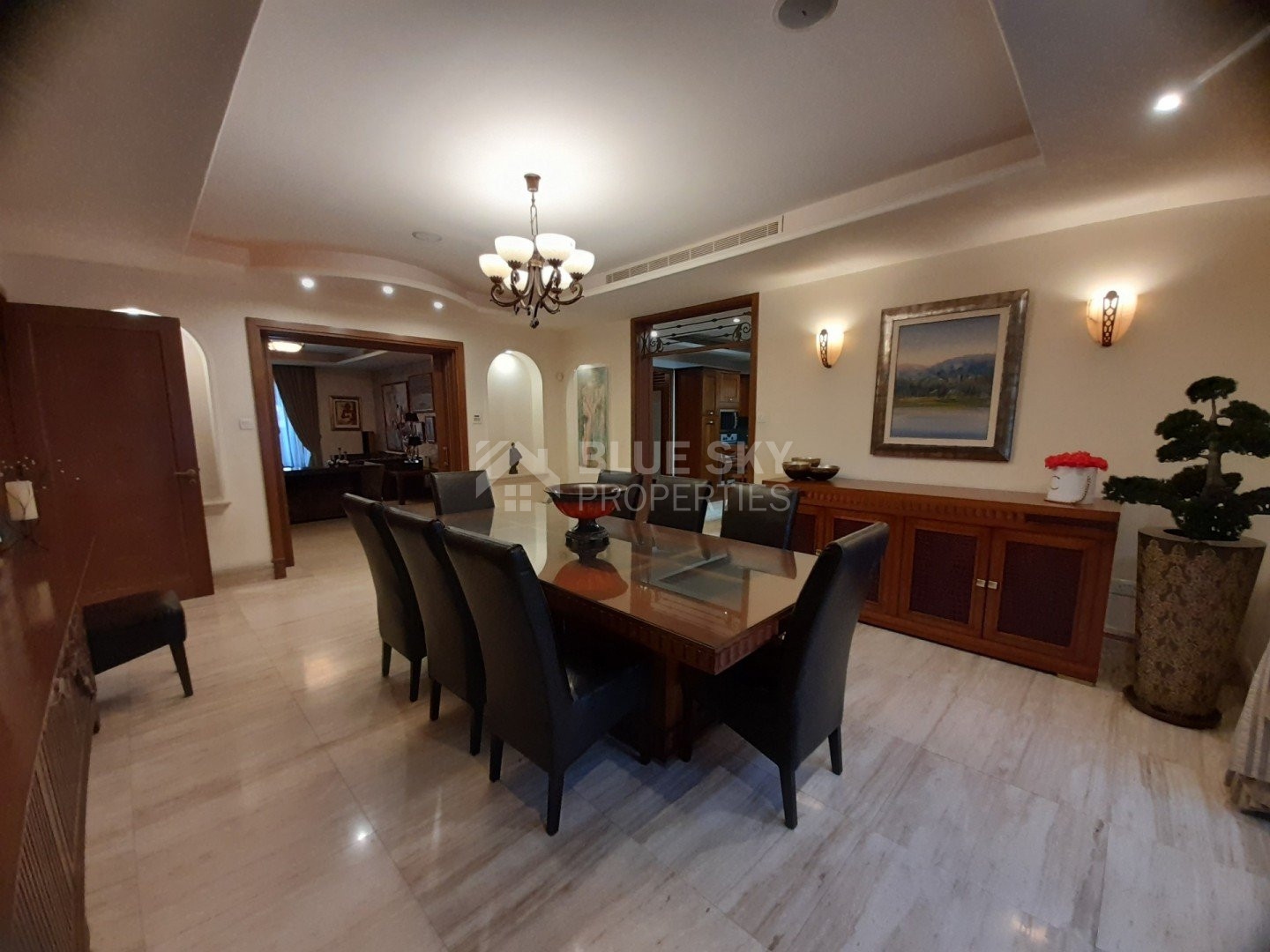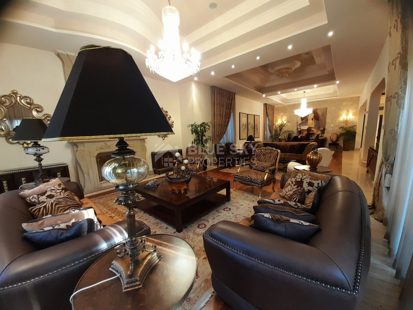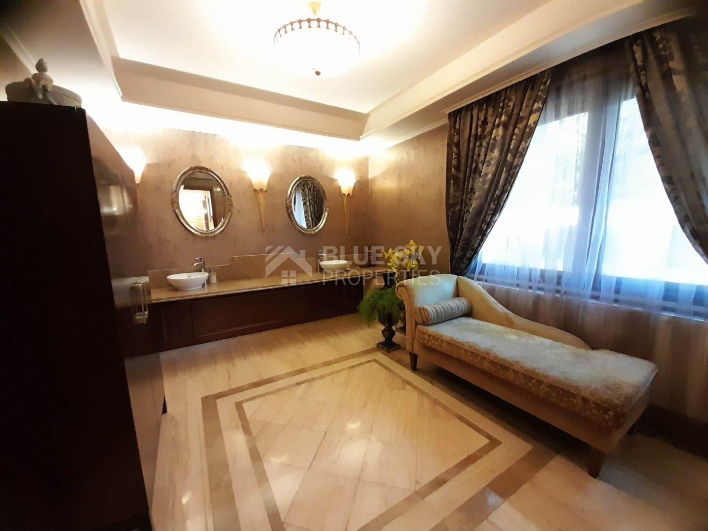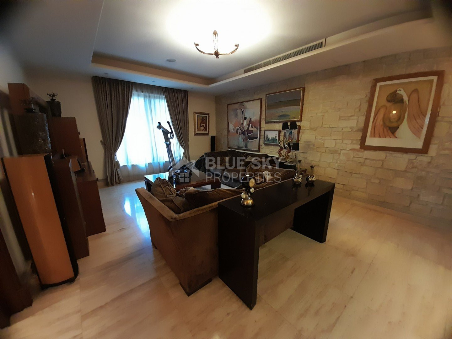 Outstanding five bedroom mansion available, near the Town Centre of Limassol. This incredible residence offers luxurious and impressive interiors like no other property in the area. There is a grand entrance upon entry and the ground level boasts three sitting areas, two dining areas, a huge guest WC, separate kitchen and the fifth bedroom with en-suite facilities. The first level has two bedrooms of which the grand master bedroom suite has a large bedroom area with adjoining sitting room leading to the extensive walk in wardrobe and spacious en-suite bathroom. Bedrooms three and four are located on the second level. All bedrooms have en-suite facilities. There is a generous outdoor entertaining area which can host up to 100 people, complete with bar area, private swimming pool, jacuzzi, sauna and large terrace. An additional building is utilized as a utility room, second kitchen and store room. The garage can accommodate three cars and the grounds a further six. There is central heating, VRV heating/cooling system, security alarm and CCTV. Easy access to Makarios Avenue, and the seafront is just 2kms away. All amenities are within close proximity. Please call for further information and a viewing of this magnificent residence.