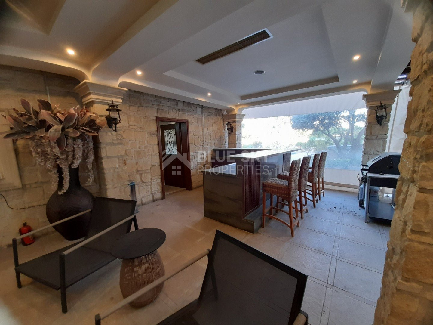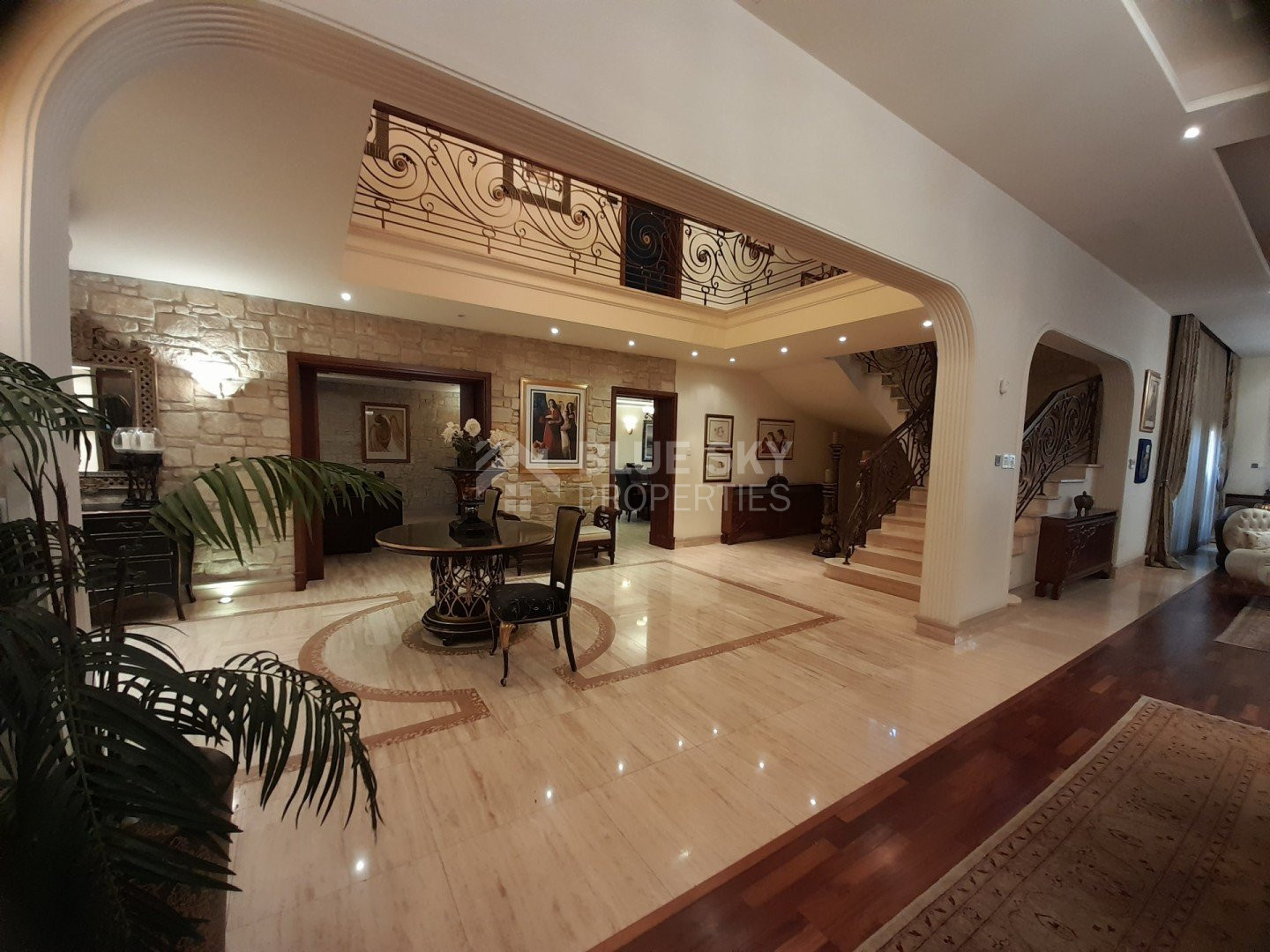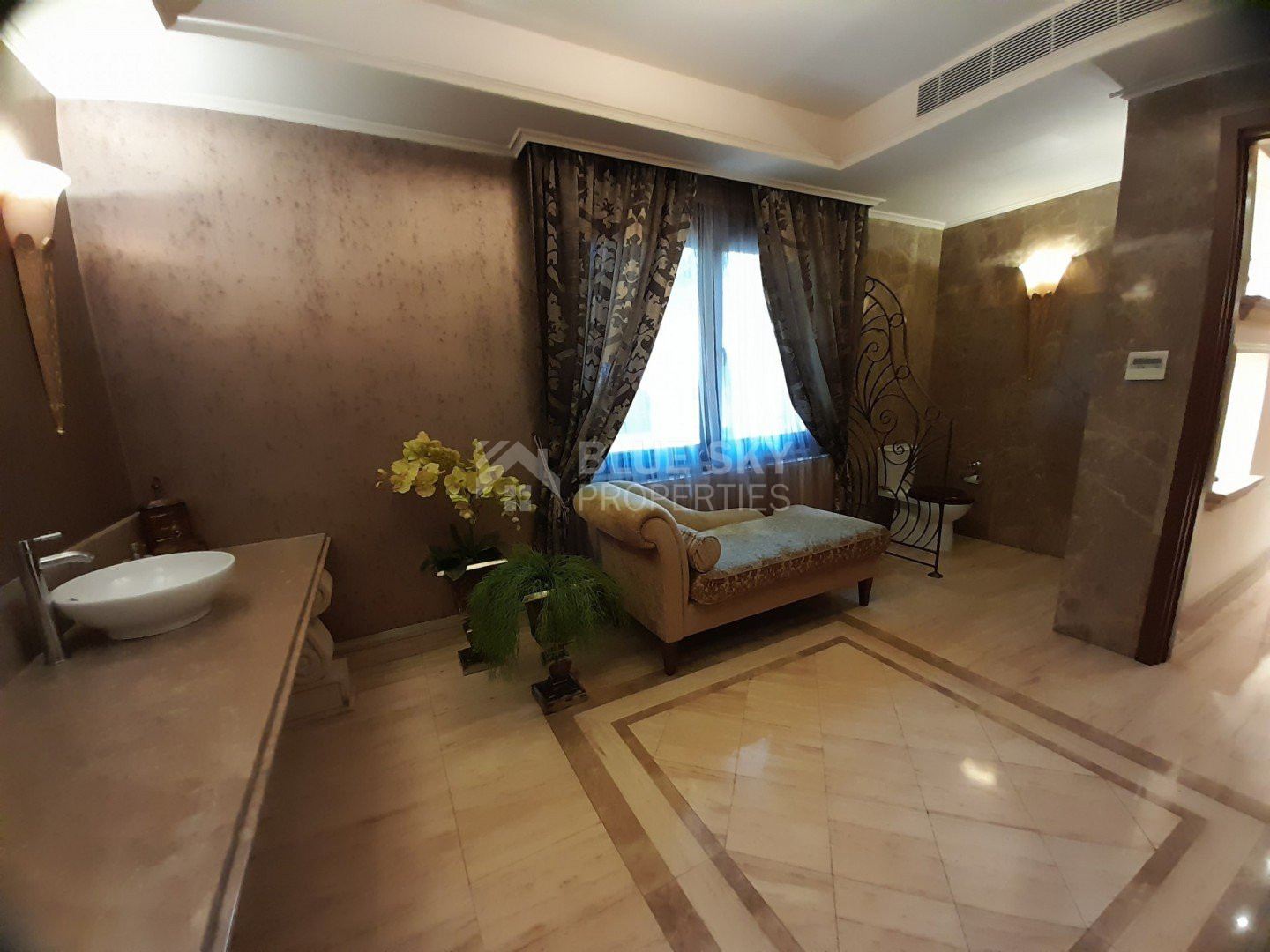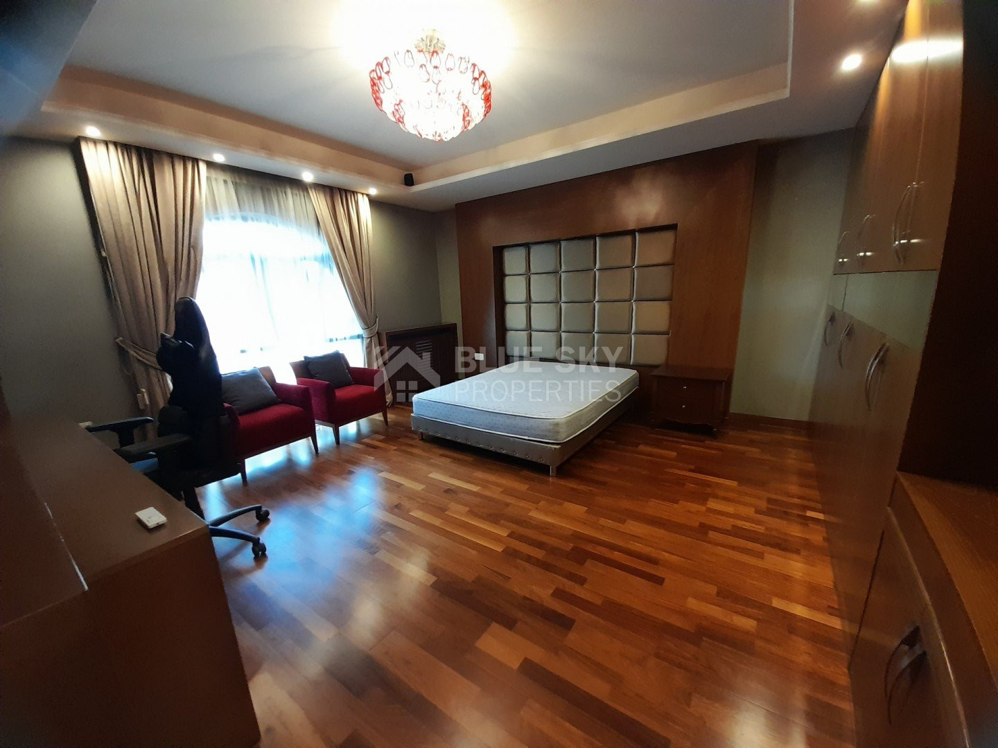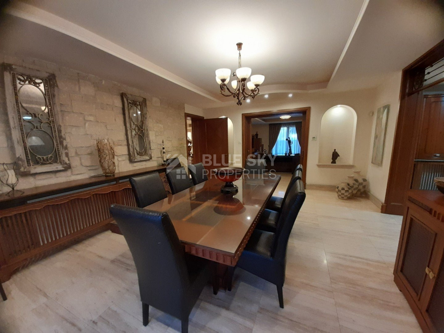Outstanding five bedroom mansion available, near the Town Centre of Limassol. This incredible residence offers luxurious and impressive interiors like no other property in the area. There is a grand entrance upon entry and the ground level boasts three sitting areas, two dining areas, a huge guest WC, separate kitchen and the fifth bedroom with en-suite facilities. The first level has two bedrooms of which the grand master bedroom suite has a large bedroom area with adjoining sitting room leading to the extensive walk in wardrobe and spacious en-suite bathroom. Bedrooms three and four are located on the second level. All bedrooms have en-suite facilities. There is a generous outdoor entertaining area which can host up to 100 people, complete with bar area, private swimming pool, jacuzzi, sauna and large terrace. An additional building is utilized as a utility room, second kitchen and store room. The garage can accommodate three cars and the grounds a further six. There is central heating, VRV heating/cooling system, security alarm and CCTV. Easy access to Makarios Avenue, and the seafront is just 2kms away. All amenities are within close proximity. Please call for further information and a viewing of this magnificent residence.