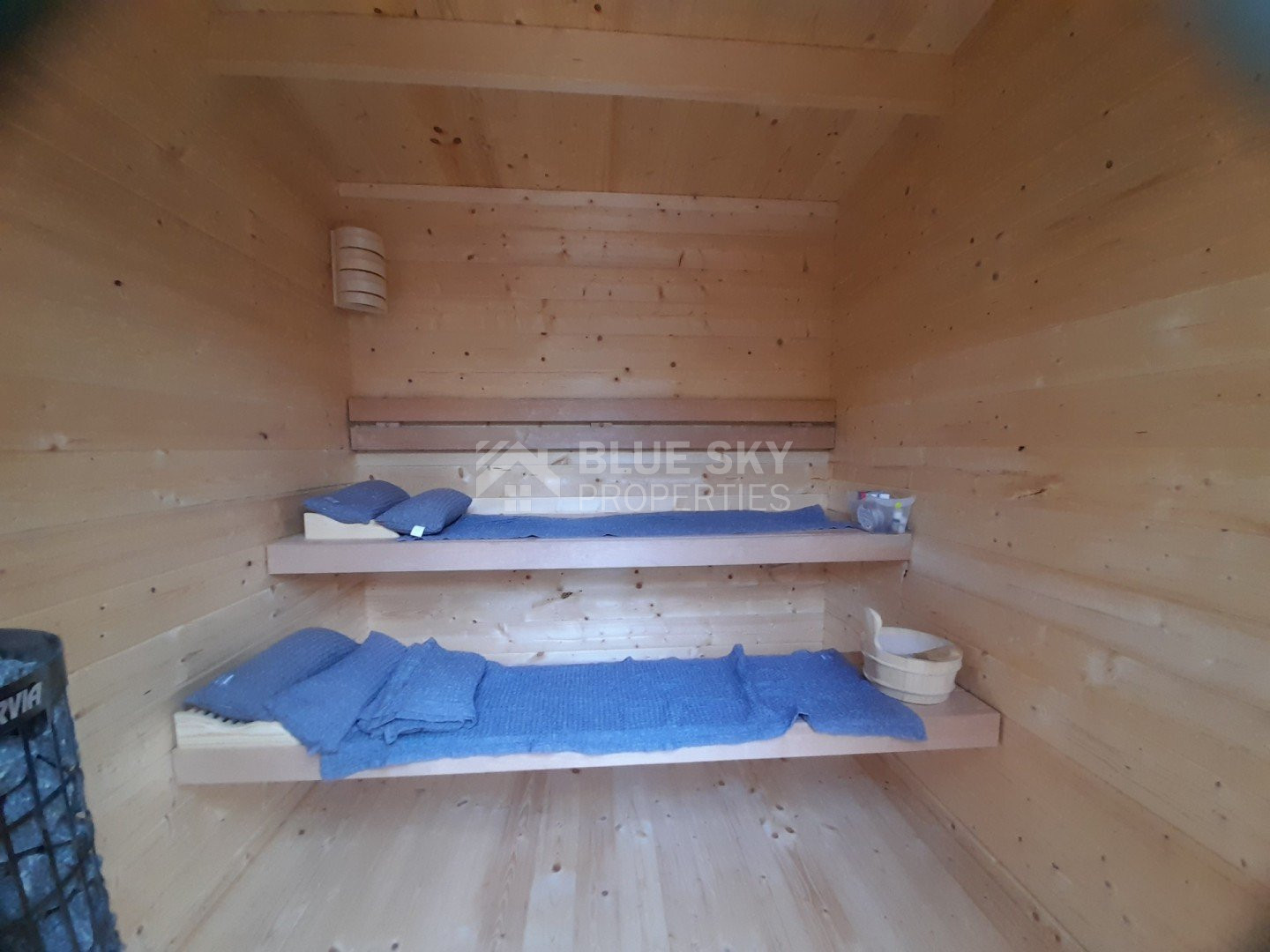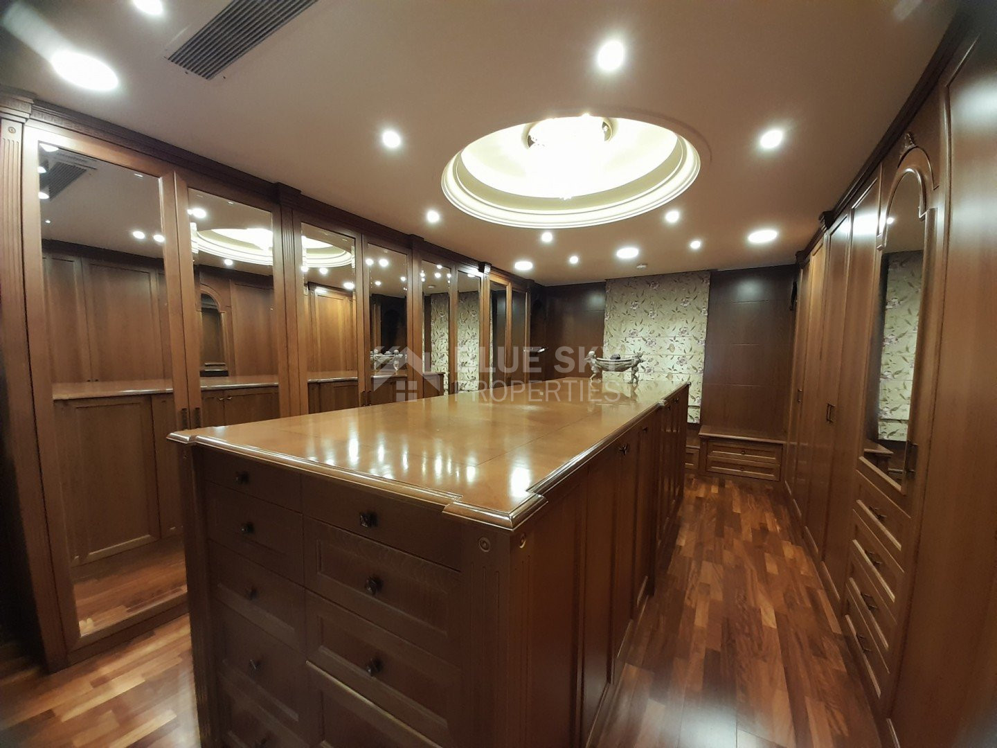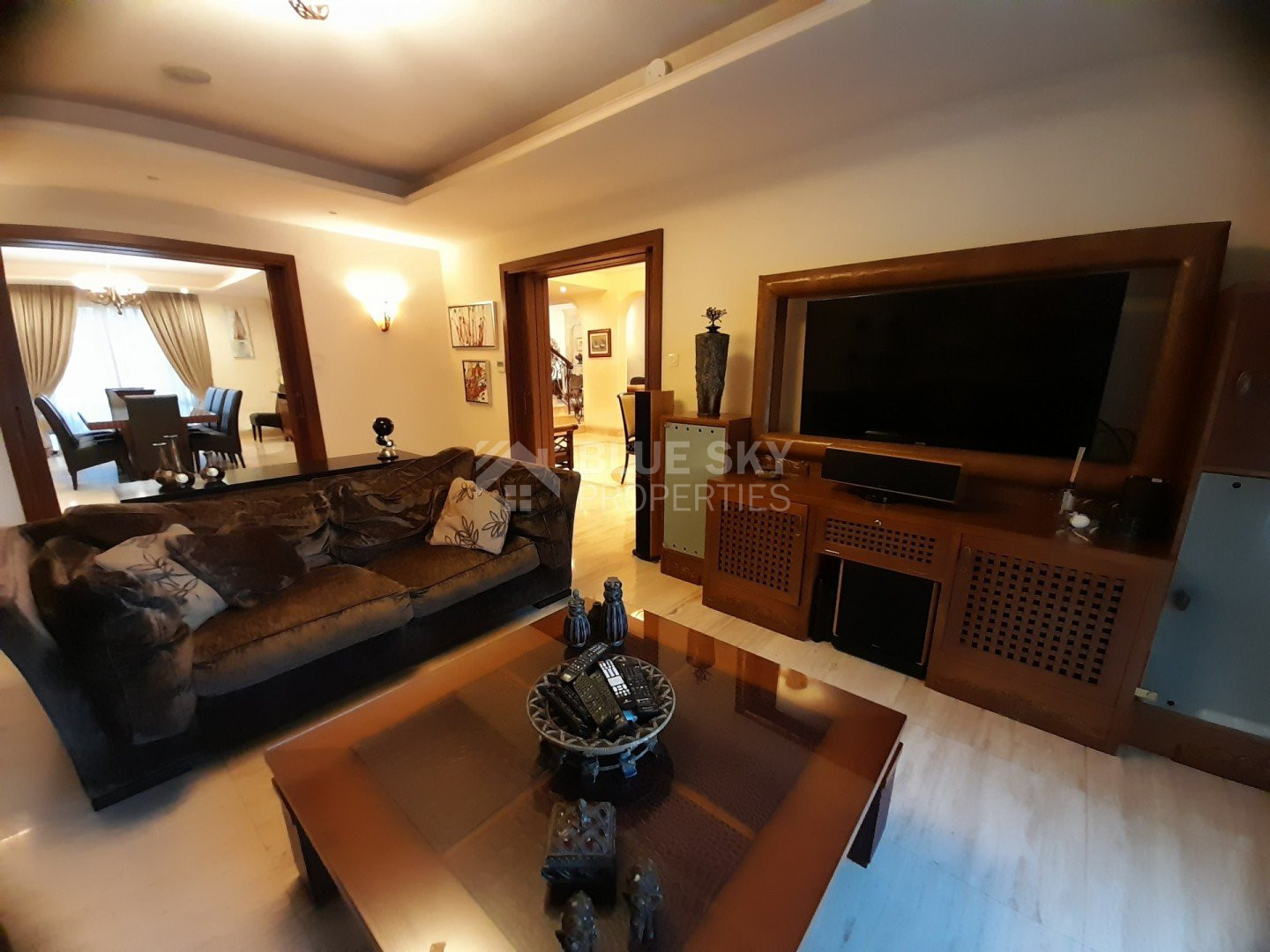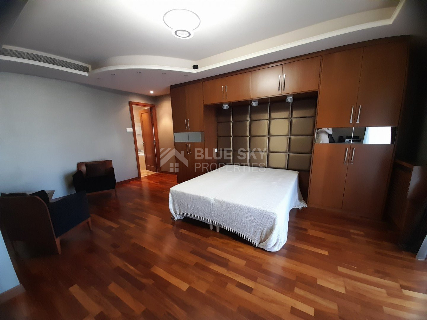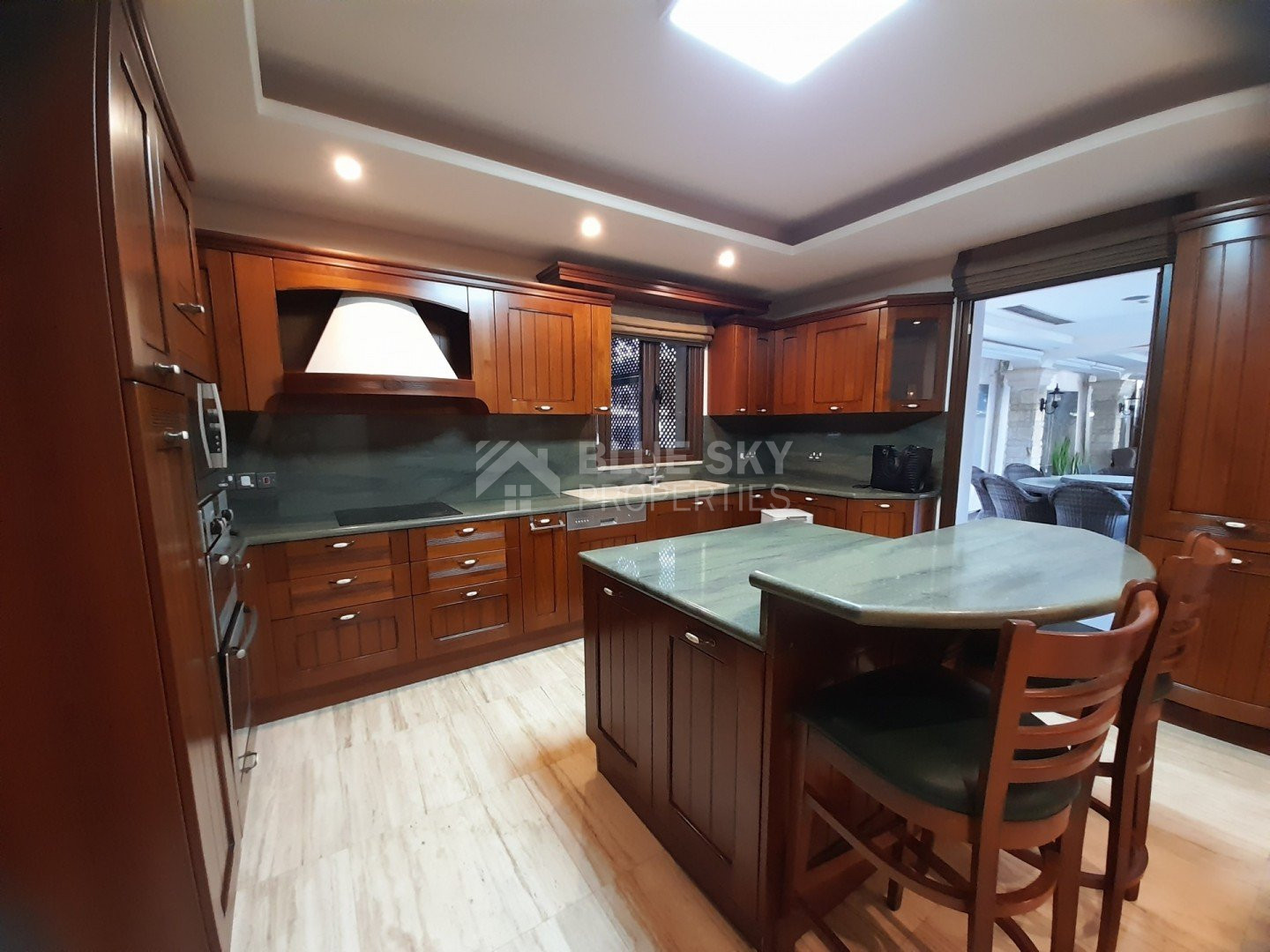 Outstanding five bedroom mansion available, near the Town Centre of Limassol. This incredible residence offers luxurious and impressive interiors like no other property in the area. There is a grand entrance upon entry and the ground level boasts three sitting areas, two dining areas, a huge guest WC, separate kitchen and the fifth bedroom with en-suite facilities. The first level has two bedrooms of which the grand master bedroom suite has a large bedroom area with adjoining sitting room leading to the extensive walk in wardrobe and spacious en-suite bathroom. Bedrooms three and four are located on the second level. All bedrooms have en-suite facilities. There is a generous outdoor entertaining area which can host up to 100 people, complete with bar area, private swimming pool, jacuzzi, sauna and large terrace. An additional building is utilized as a utility room, second kitchen and store room. The garage can accommodate three cars and the grounds a further six. There is central heating, VRV heating/cooling system, security alarm and CCTV. Easy access to Makarios Avenue, and the seafront is just 2kms away. All amenities are within close proximity. Please call for further information and a viewing of this magnificent residence.