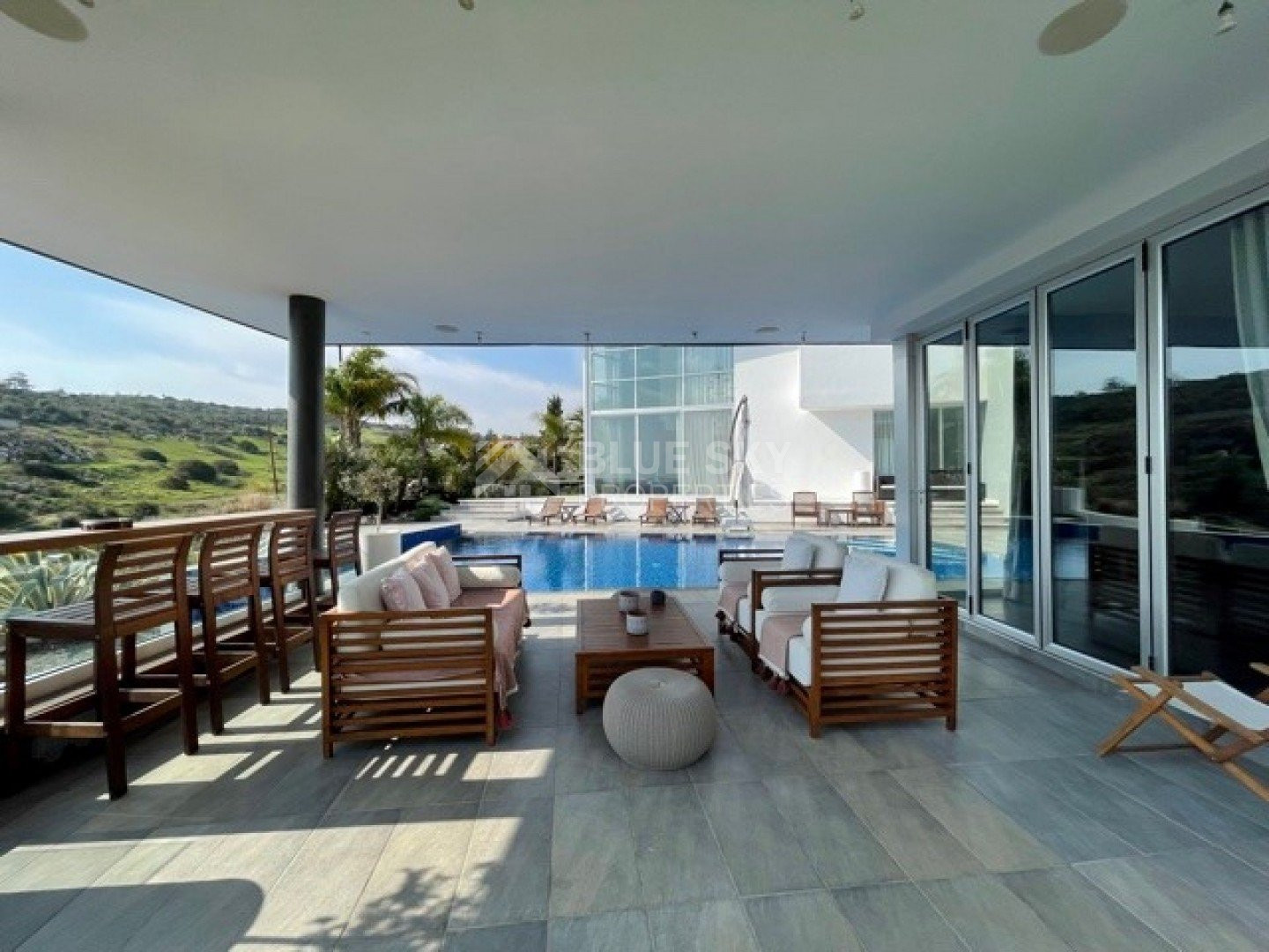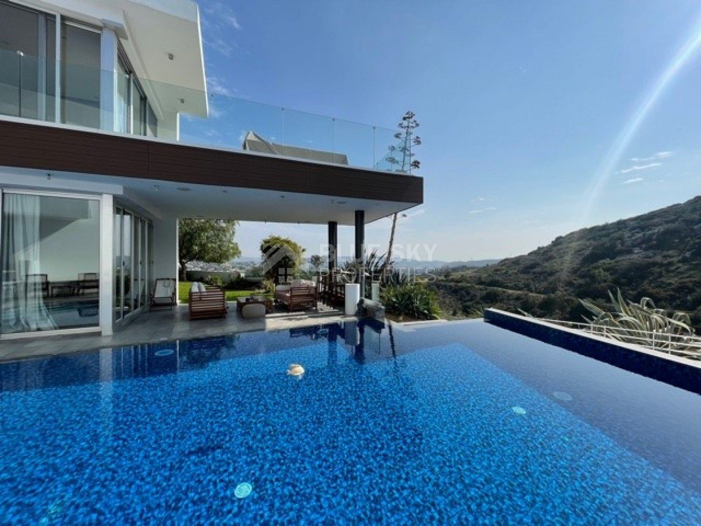 An outstanding bespoke modern 5 bedroom property, privately tucked away for full privacy.Electric gated drive in, landscaped gardens, overflow swimming pool, outside seating areas enjoying glorious views.Entrance hall, feature staircase, sitting/lounge/dining areas with patio doors opening onto the gardens and swimming pool.Guest wc, fully equipped kitchen with island bar, maids quarter and utility area, gym, outside built in BBQ.Spacious bedrooms, master en suite with walk in wardrobe, all bedrooms have views and bathrooms, solid wooden floors.Double garage, under floor heating, a/c throughout, alarms, automatic irrigation, thermal insulation and much more.