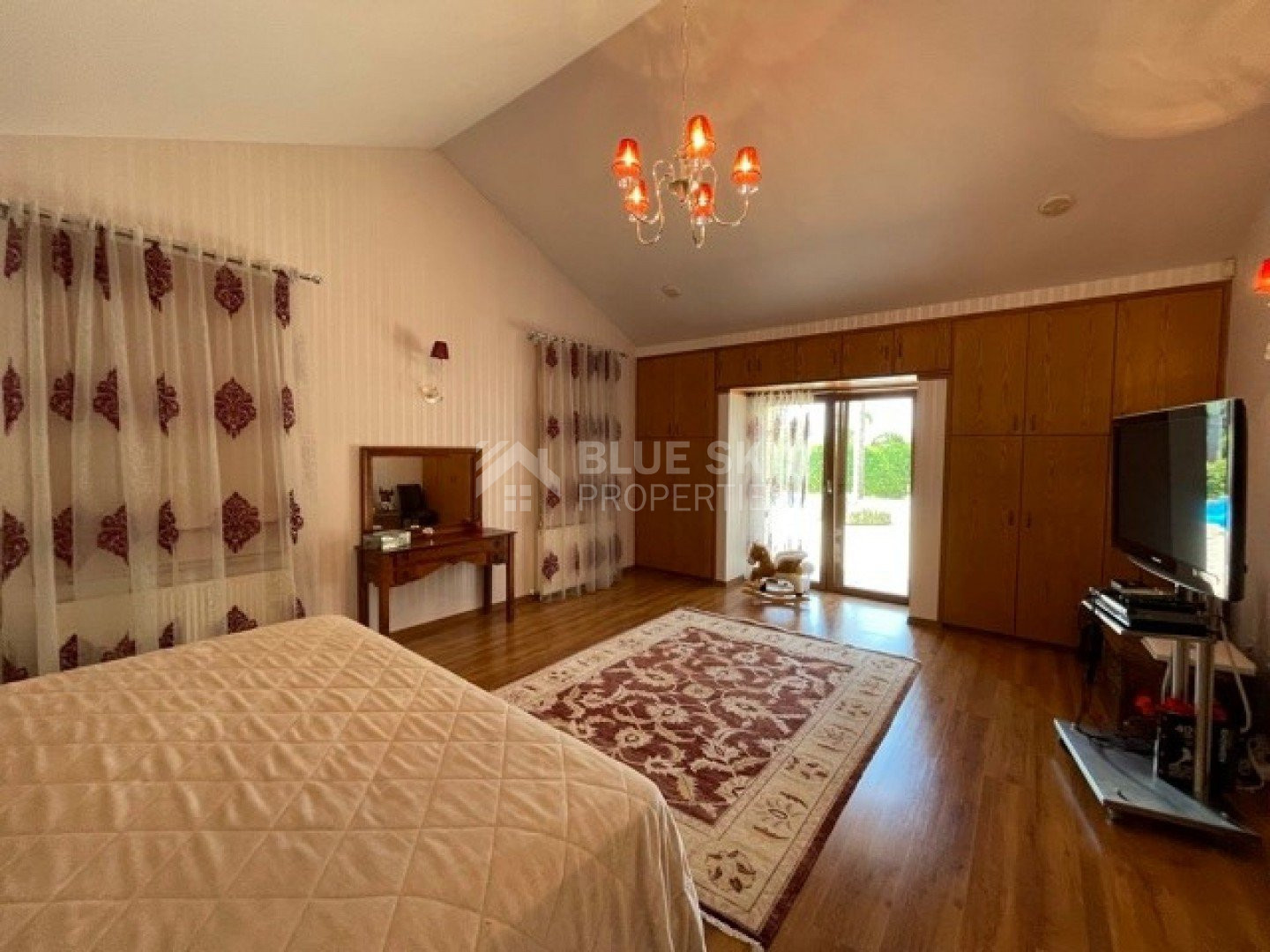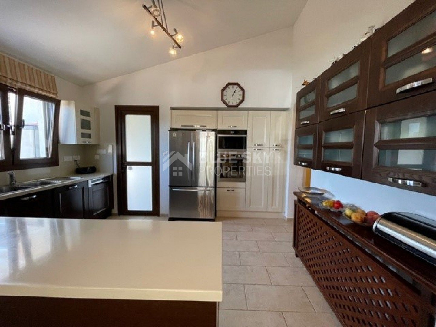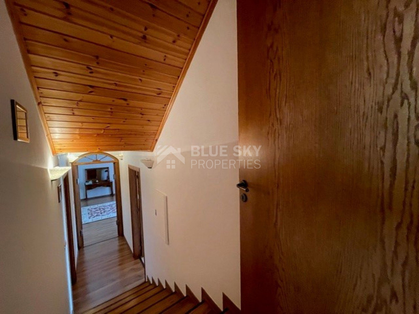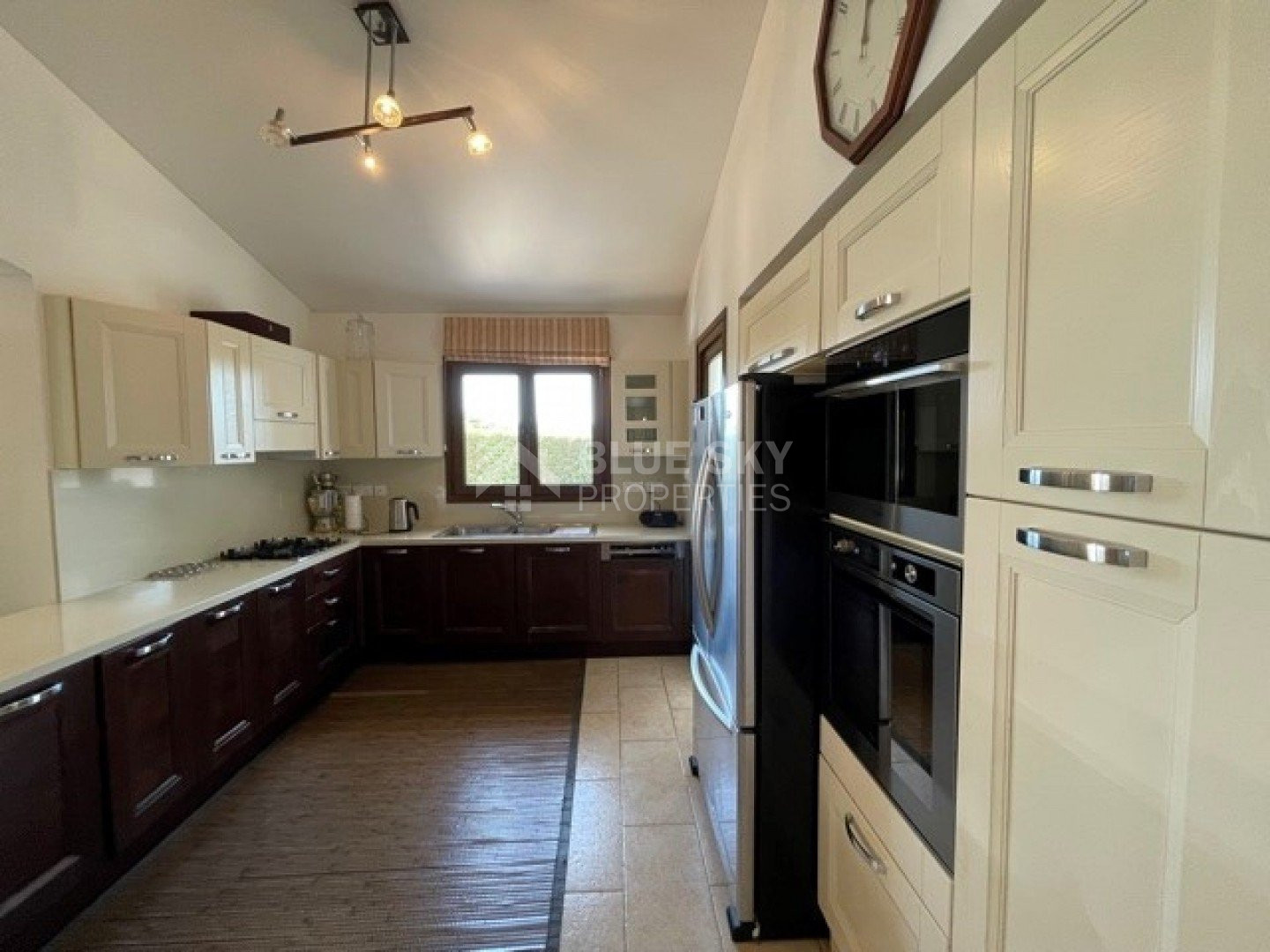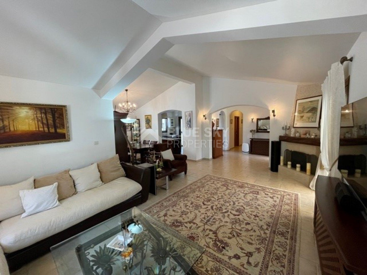 This outstanding property is in the sought after location of Pyrgos.The villa is tucked away in a Cul De Sac surrounded by the most beautiful landscaped gardens, heated swimming pool, pergolas, outside entertaining BBQ areas and outside kitchens.Plot size is 1,056m² however within the private grounds there is a large green area of a further 900m² approx, which the owners have a written agreement and consent with the Municipality for private use, therefore they have planted fruit trees and vineyards.The property itself is in excellent condition, offering comfortable sitting/lounge/dining areas, study, 3 double bedrooms with bathrooms. Steps from the study lead down to the master bedroom en suite with walk in wardrobe, gym room or further fifth bedroom with shower if required. The kitchen is separate and fully equipped.Fully gas central heated, a/c units throughout, double glazed with French style shutters, alarms, cameras, car-ports for 3 cars.This property is a real haven and a must view!