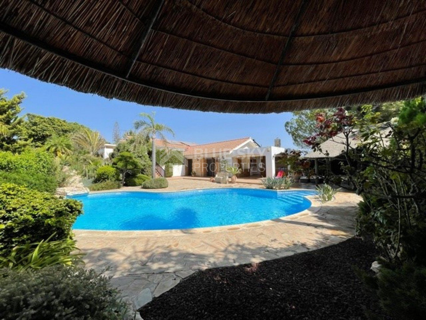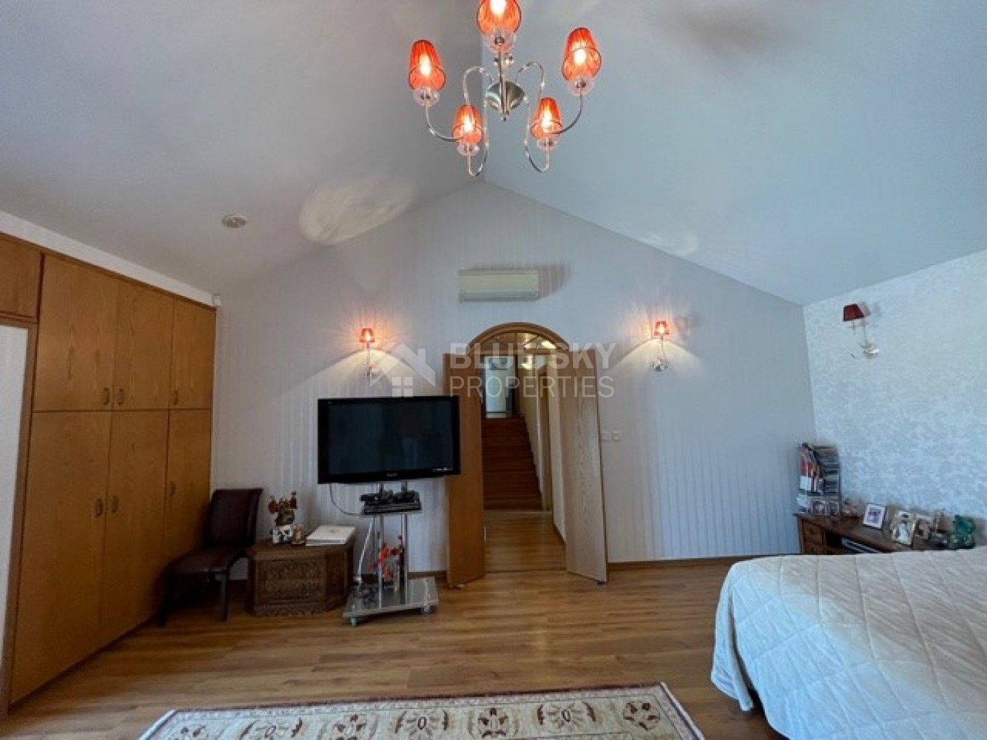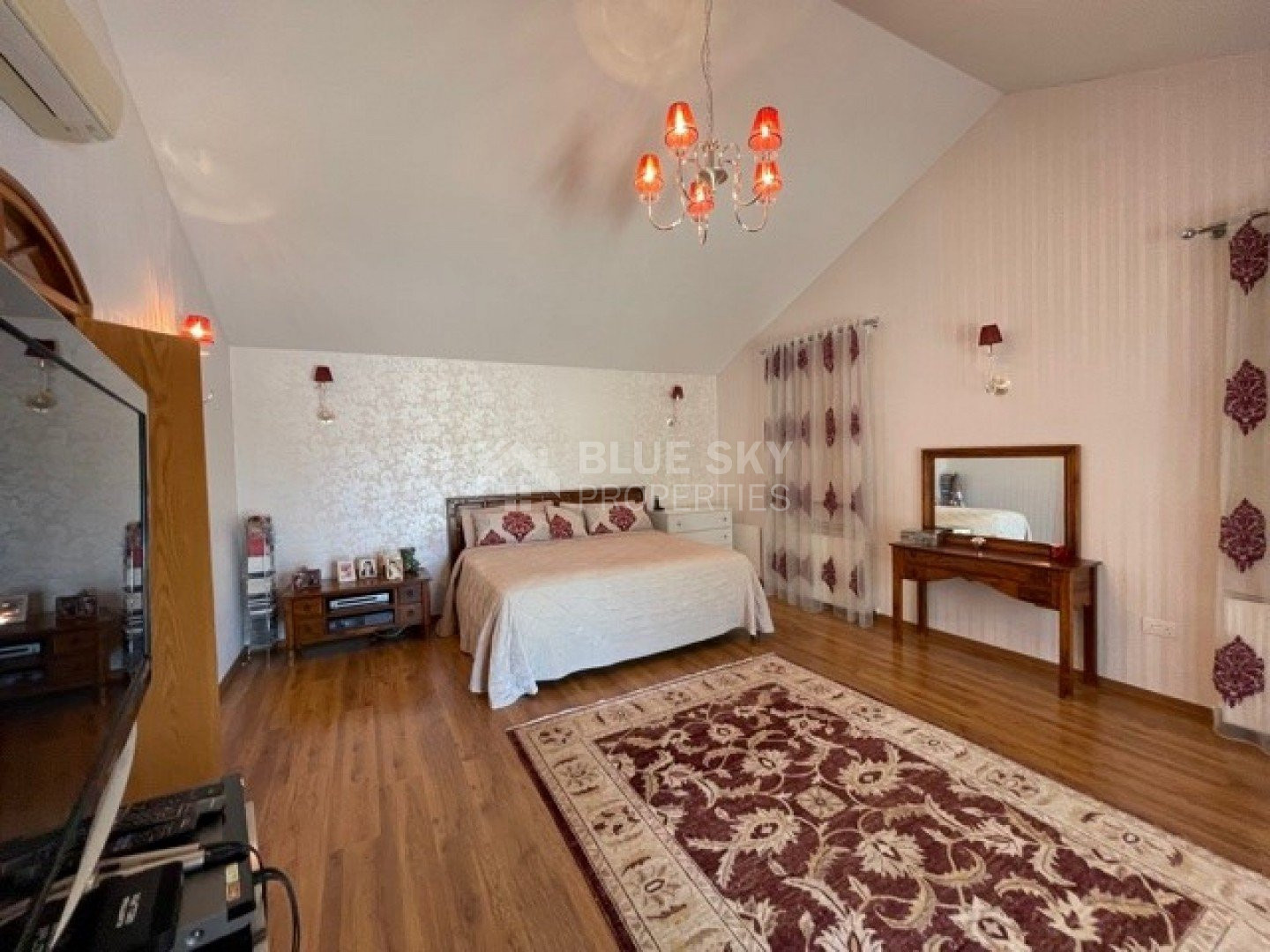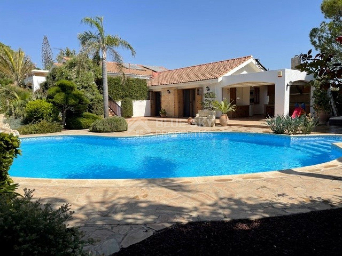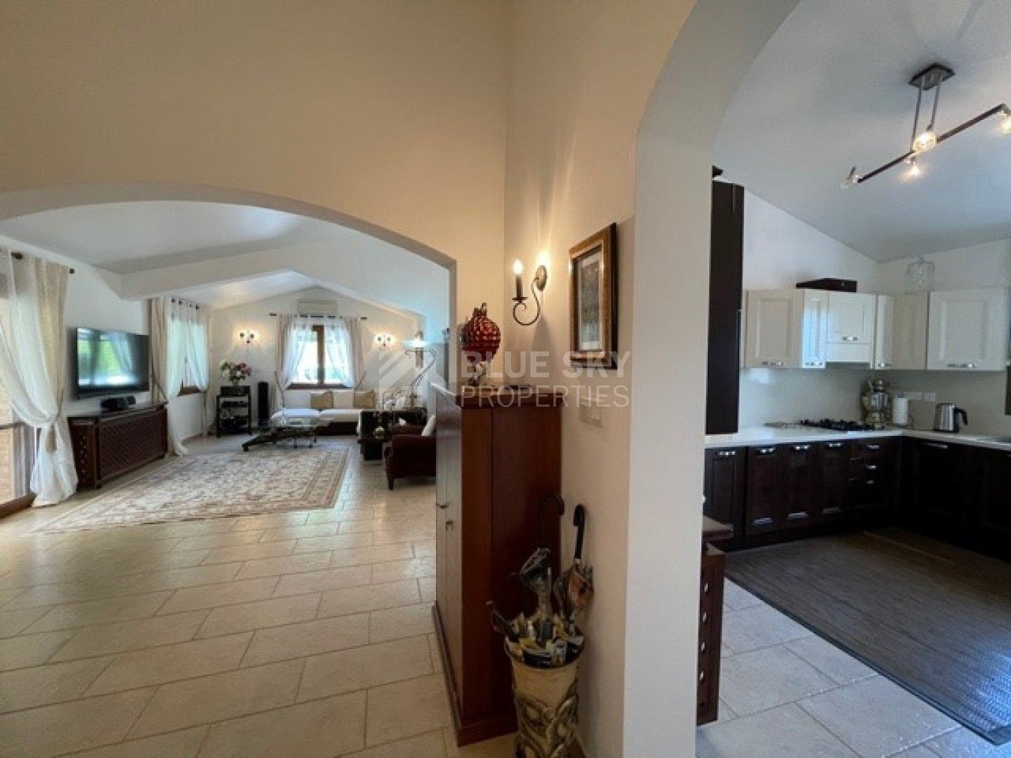 This outstanding property is in the sought after location of Pyrgos.The villa is tucked away in a Cul De Sac surrounded by the most beautiful landscaped gardens, heated swimming pool, pergolas, outside entertaining BBQ areas and outside kitchens.Plot size is 1,056m² however within the private grounds there is a large green area of a further 900m² approx, which the owners have a written agreement and consent with the Municipality for private use, therefore they have planted fruit trees and vineyards.The property itself is in excellent condition, offering comfortable sitting/lounge/dining areas, study, 3 double bedrooms with bathrooms. Steps from the study lead down to the master bedroom en suite with walk in wardrobe, gym room or further fifth bedroom with shower if required. The kitchen is separate and fully equipped.Fully gas central heated, a/c units throughout, double glazed with French style shutters, alarms, cameras, car-ports for 3 cars.This property is a real haven and a must view!