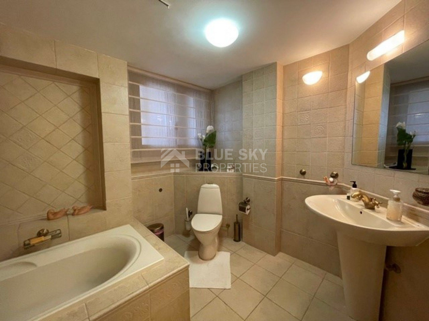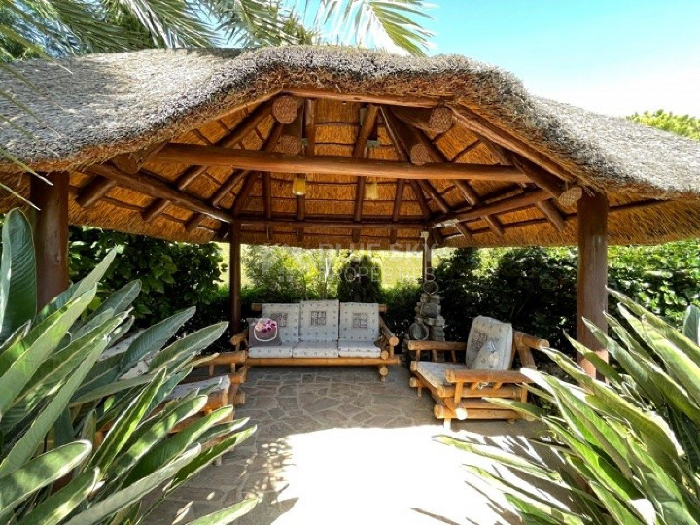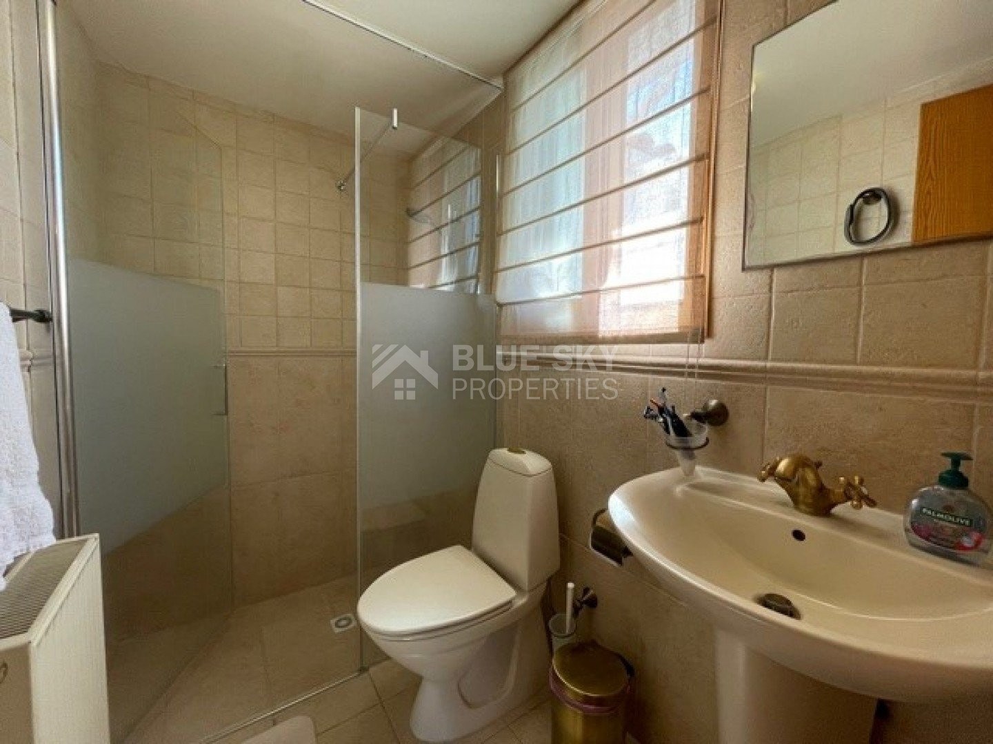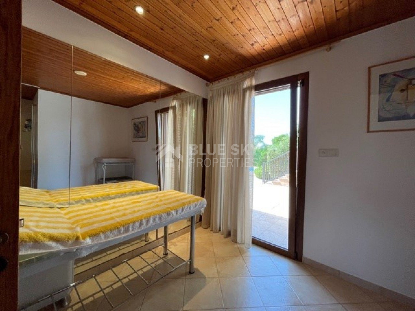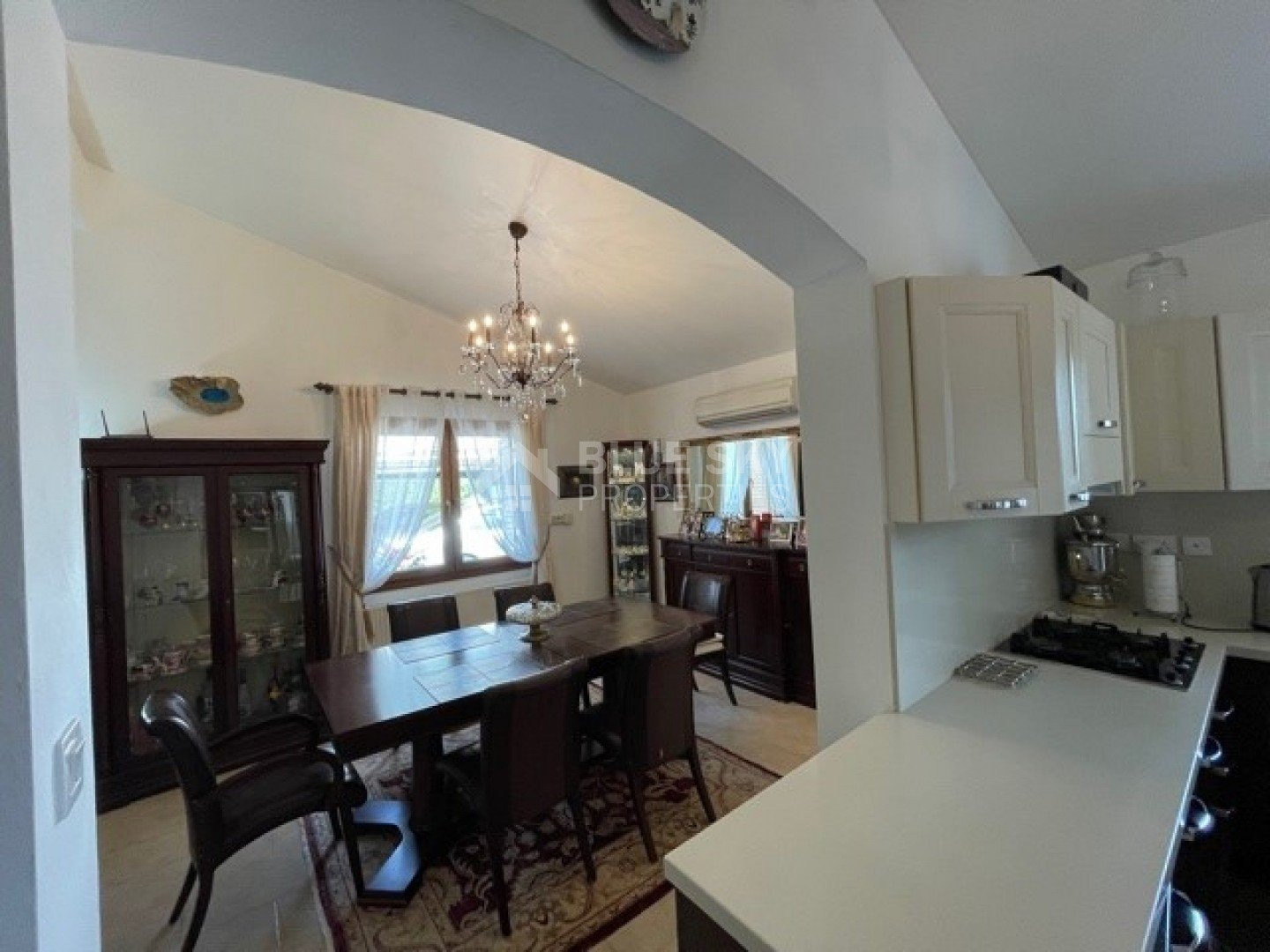This outstanding property is in the sought after location of Pyrgos.The villa is tucked away in a Cul De Sac surrounded by the most beautiful landscaped gardens, heated swimming pool, pergolas, outside entertaining BBQ areas and outside kitchens.Plot size is 1,056m² however within the private grounds there is a large green area of a further 900m² approx, which the owners have a written agreement and consent with the Municipality for private use, therefore they have planted fruit trees and vineyards.The property itself is in excellent condition, offering comfortable sitting/lounge/dining areas, study, 3 double bedrooms with bathrooms. Steps from the study lead down to the master bedroom en suite with walk in wardrobe, gym room or further fifth bedroom with shower if required. The kitchen is separate and fully equipped.Fully gas central heated, a/c units throughout, double glazed with French style shutters, alarms, cameras, car-ports for 3 cars.This property is a real haven and a must view!