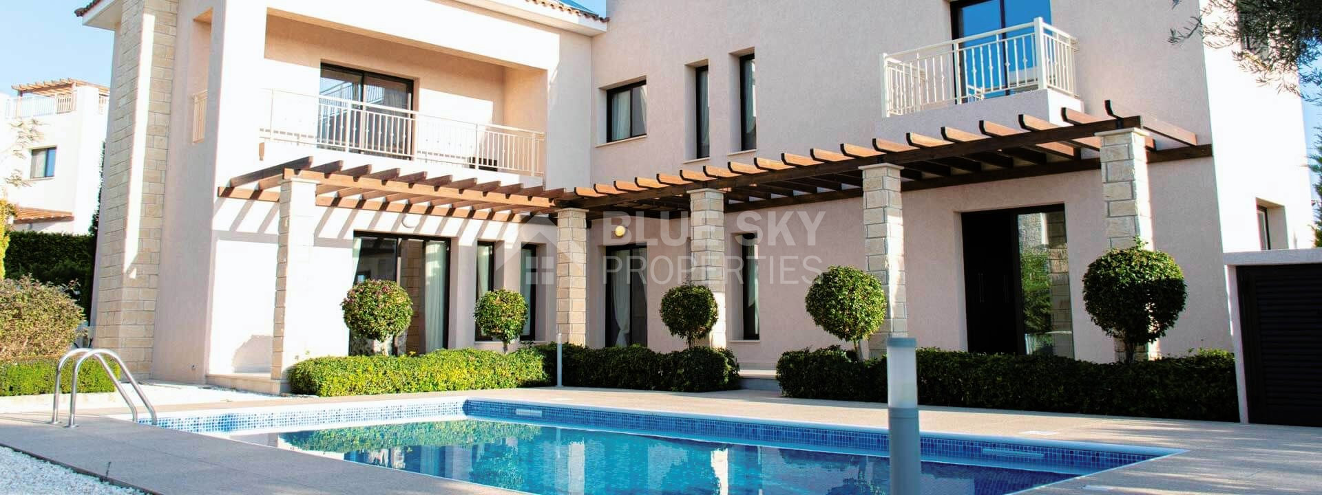 The villa enjoys a private swimming pool and is designed in a large plot.