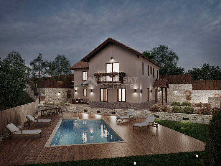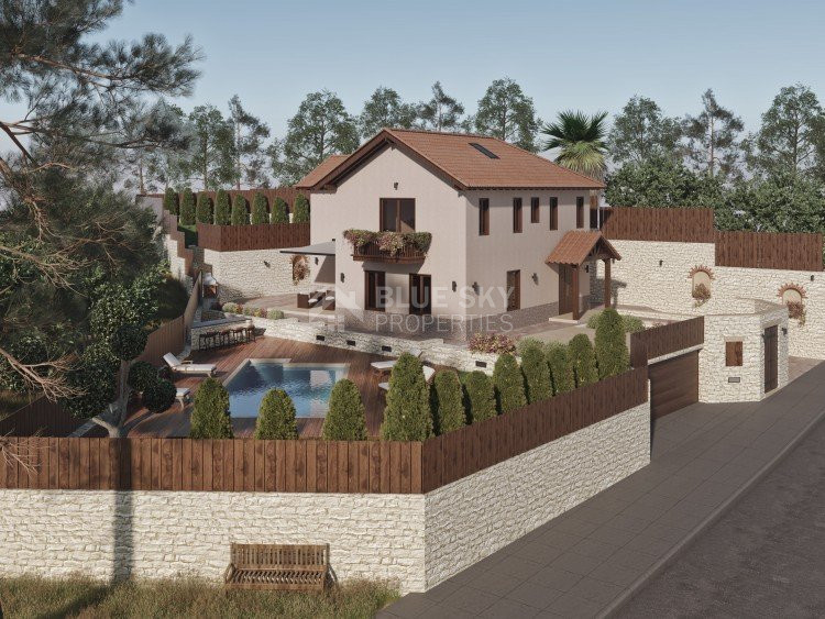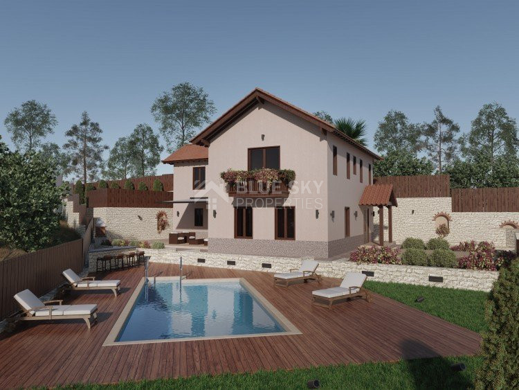 This Villa is located outside Ayios Georgios village which is only a 20 minutes drive to Limassol and only 15 minutes drive to the Heritage school.The Villa is ideal for someone that wants peace and quite and the beauty of Cypriot nature whilst being close to all the conveniences of the city.Built on a large plot size of 855sqm this property has a large landscape garden with a pool,private parking for up to four cars ( two in a garage and one covered ), has two separate basement mechanical rooms for the pool and central heating machinery as well as storage area, and the garden area is surrounded by a traditional style stone wall for more privacy the villa walls are 45cm thick ( including external thermal insulation system ) internal area of 220sqm plus 75sqm loft area.Three large bedrooms ( the master bedroom has en suite and walk in wardrobe , a small living area and private veranda), 2 bathrooms and one guest toilet, a drop down tunnel for the laundry from the first floor, a separate laundry room , a large open plan kitchen with large living/dinning area and fire place .The Vila has provisions for A/C, central heating system,central lighting system, security system and Internet.   The Villa is an energy efficient property It will be complete in 6  months!!
