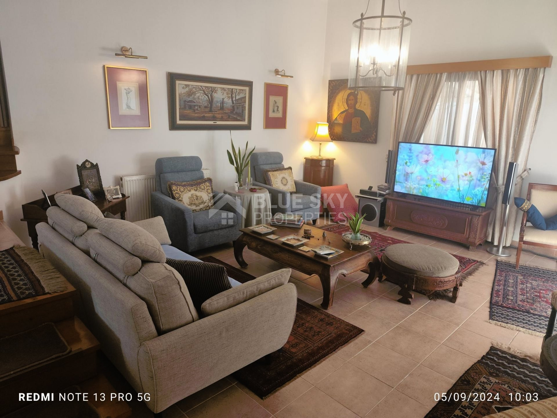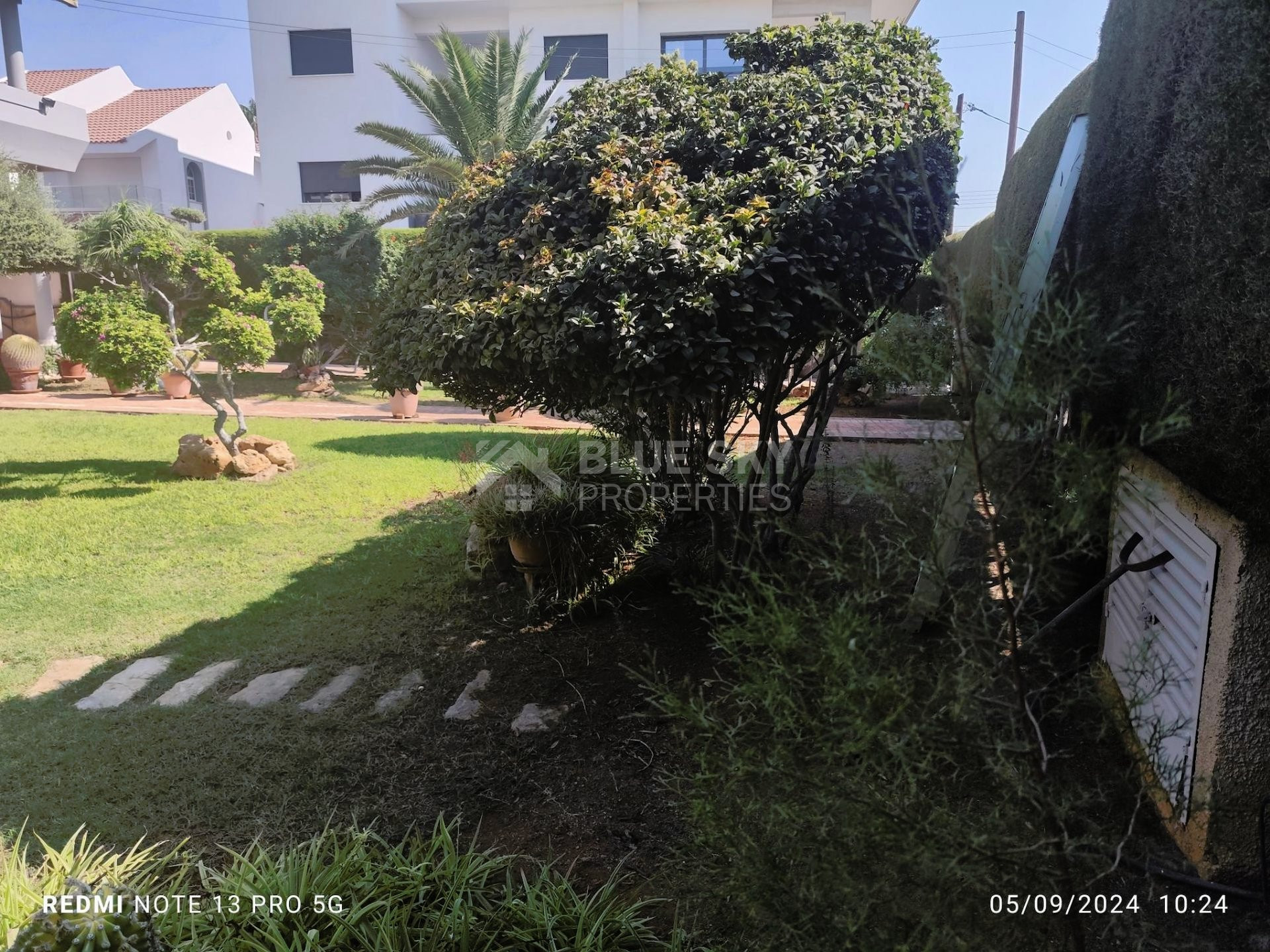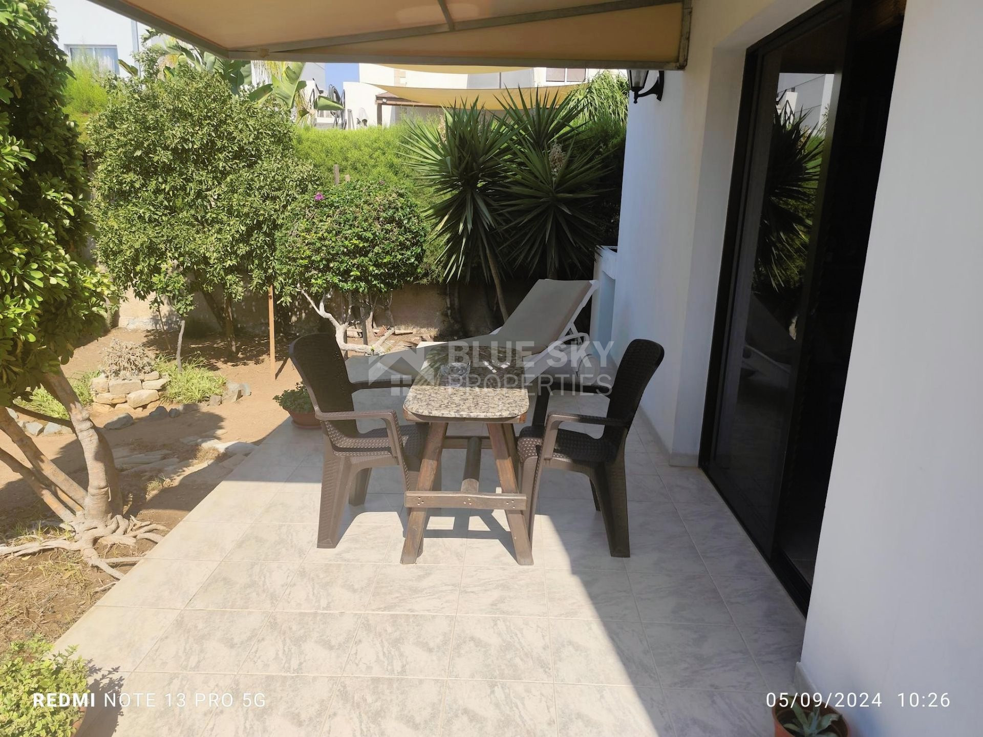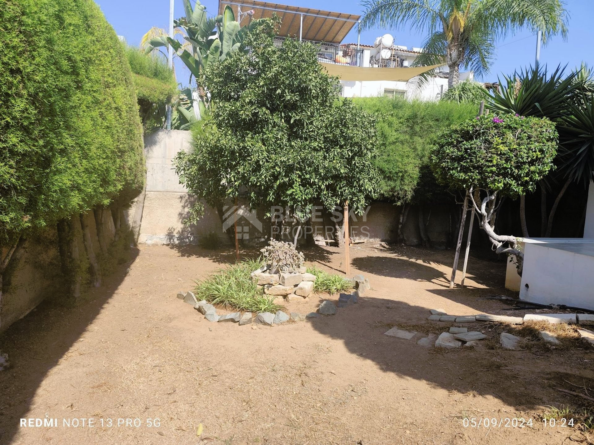 Outside there is a nice big garden with flowers, with automatic watering system , nice courtyard to enjoy your coffee , barbeque and one covered and two uncovered parking spaces.