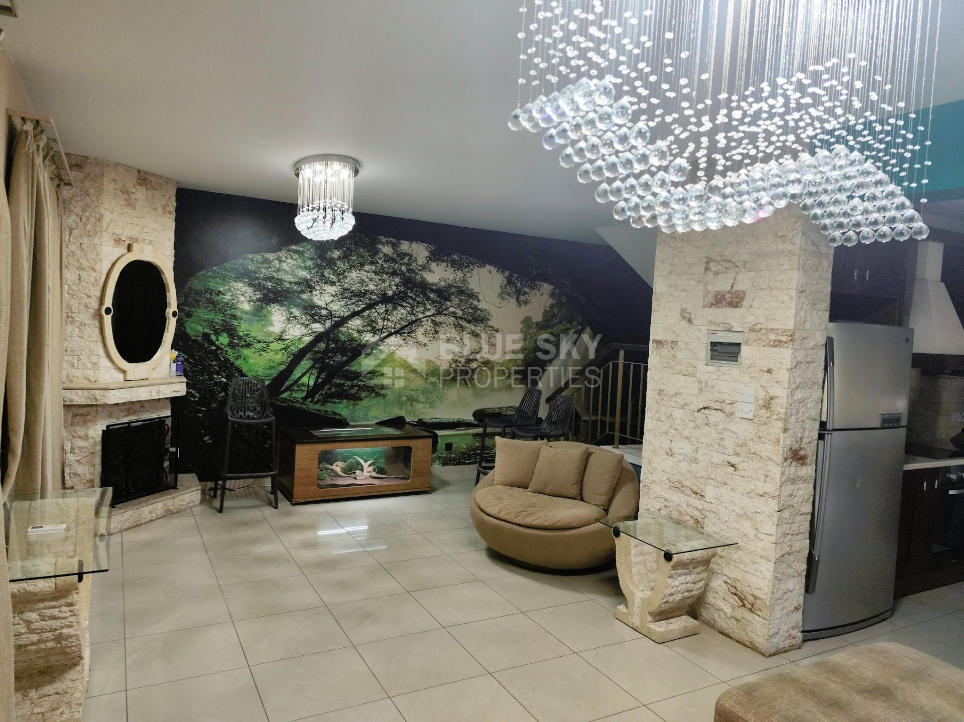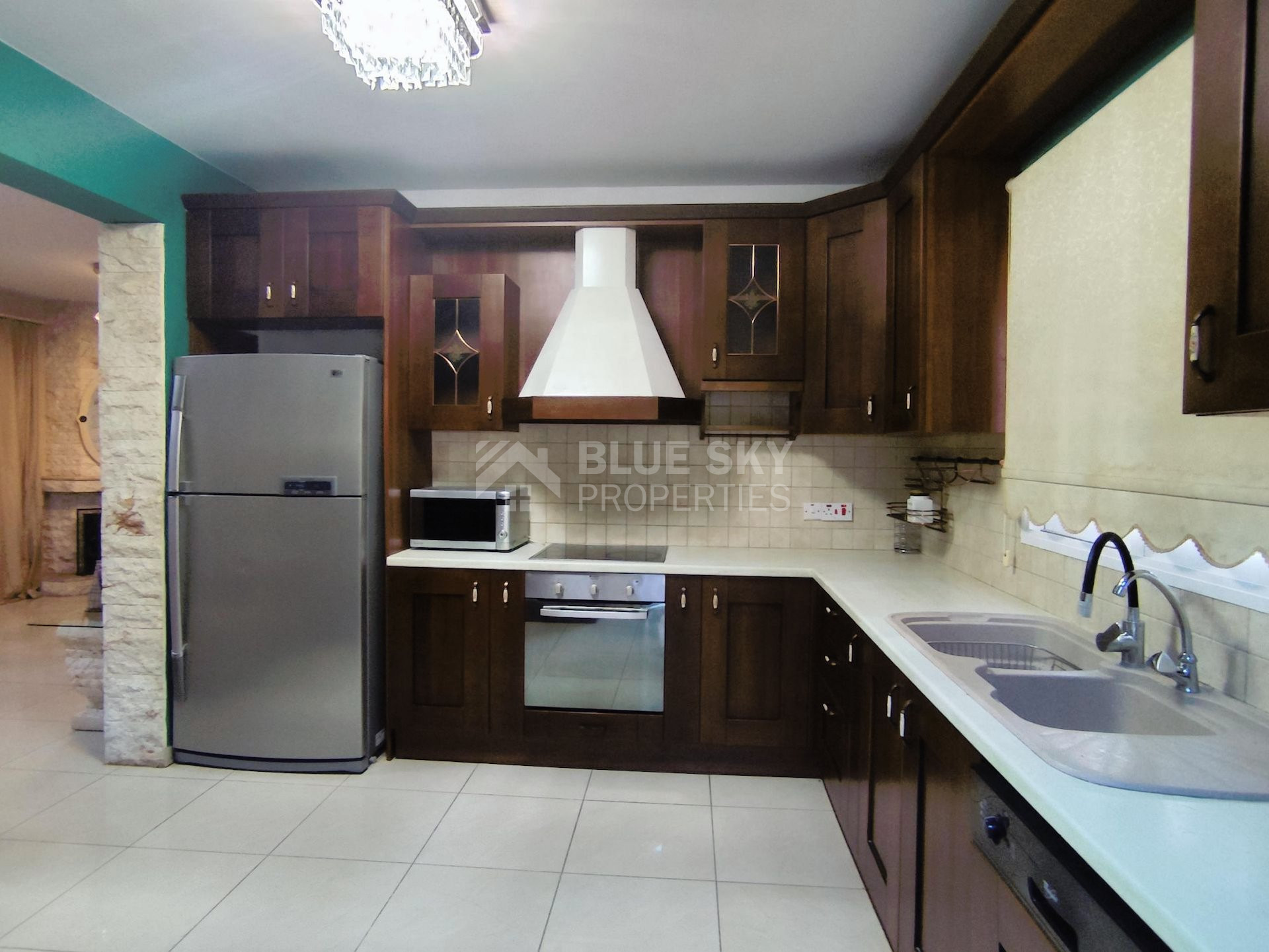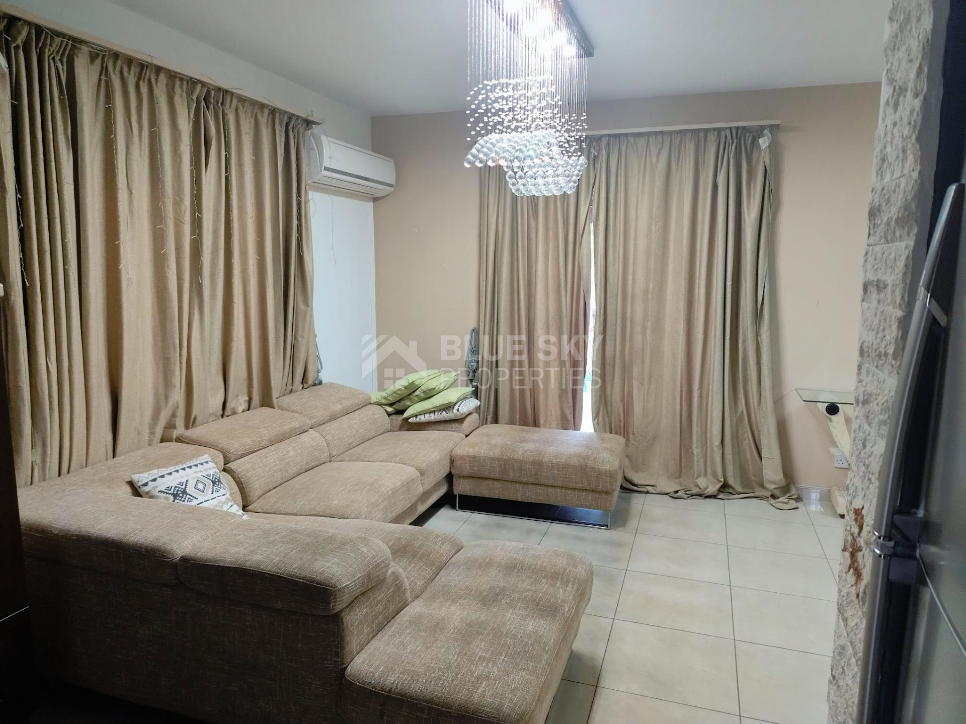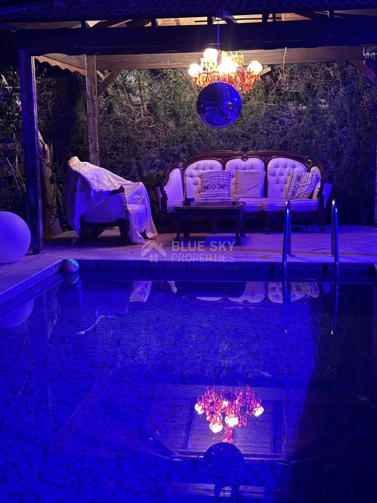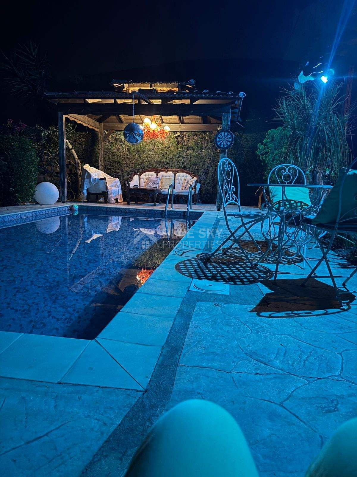 Beautiful two  bedroom house with swimming pool built in two levels in Agios Tychonas (tourist area) is available now.. It is located in a very quiet area and has plot size 550 square meters and internal area 140 square meters.It features an open plan kitchen,  living room/dining room and  fire place. Furthermore there are two bedrooms with spacious cabinets  , a family bathroom and guest w.c.  .Outside has swimming pool  and a parking space  for two cars.. The aluminum doors and windows are double glazed with security locks. It is fully furnished and fully equipment. Located in a quiet ,nice area surrounded by nice houses.. This house has quick access to all needed amenities including supermarkets, parks, pharmacies, schools and restaurants.