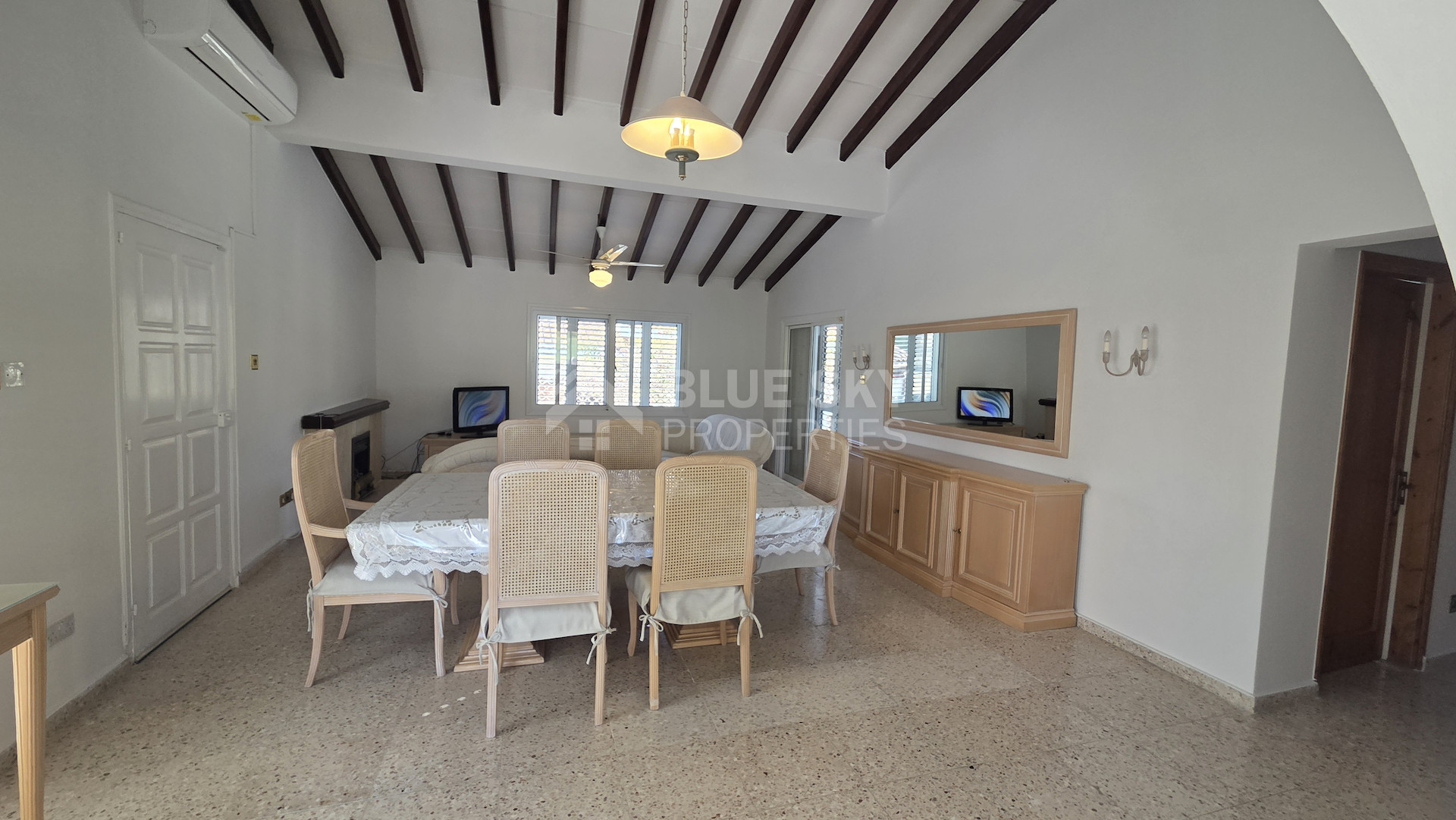 Discover a rare opportunity to rent a beautifully presented detached house in Limassol, Cyprus, located in the prestigious hillside village of Finikaria. This exceptional Cyprus property for rent offers 208m² of total covered space (168m² internal area plus 40m² covered verandas), all thoughtfully designed on one convenient ground-floor level.