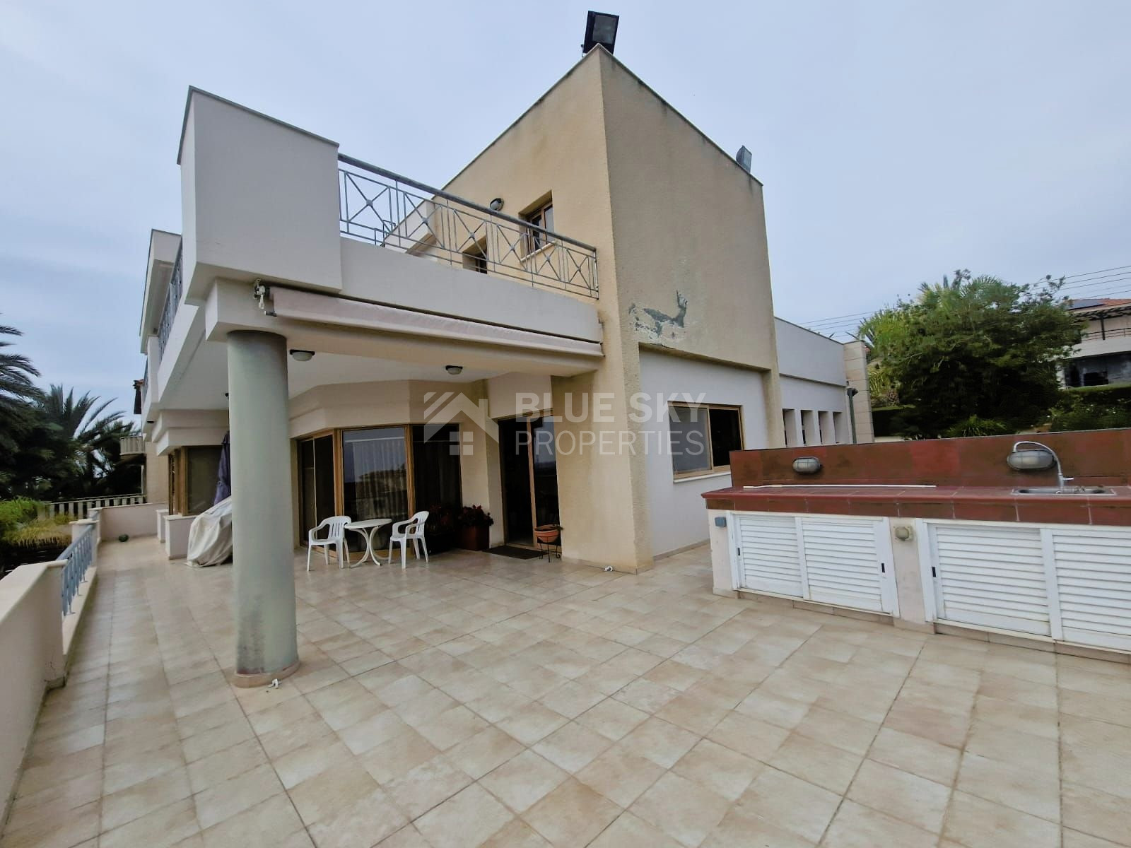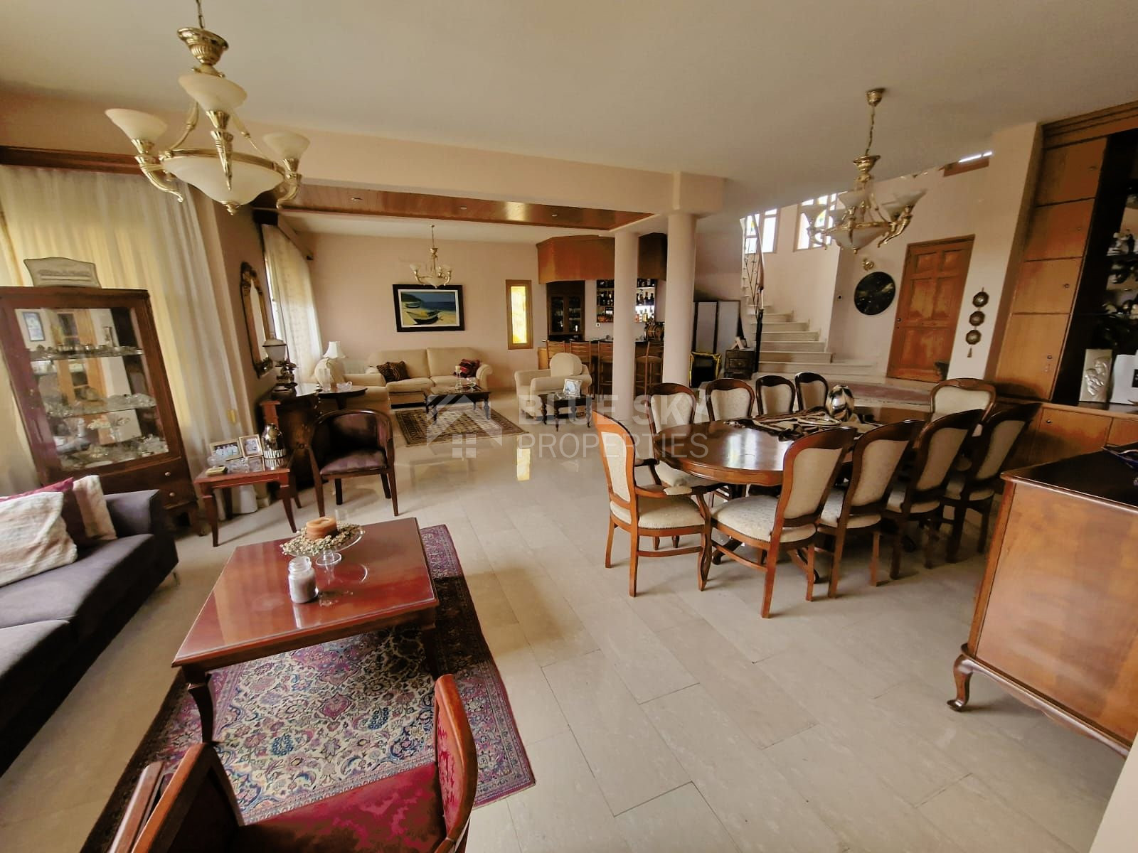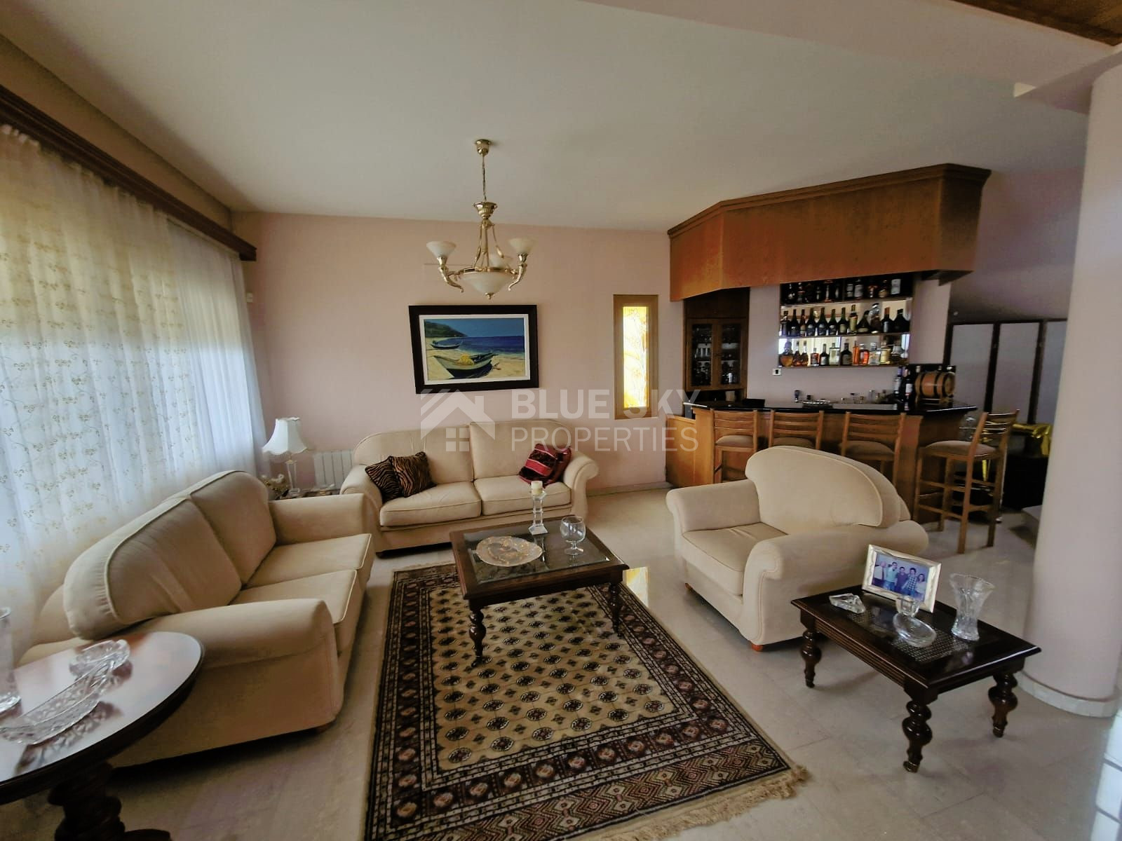 Discover this charming villa situated in the tranquil neighborhood of Agia Paraskevi, Germasogeia. As you enter, you're welcomed into a grand living room with a stylish bar, a roomy dining area, and a convenient guest toilet. Moving to the second living space, which also doubles as a dining area, you'll find the kitchen.