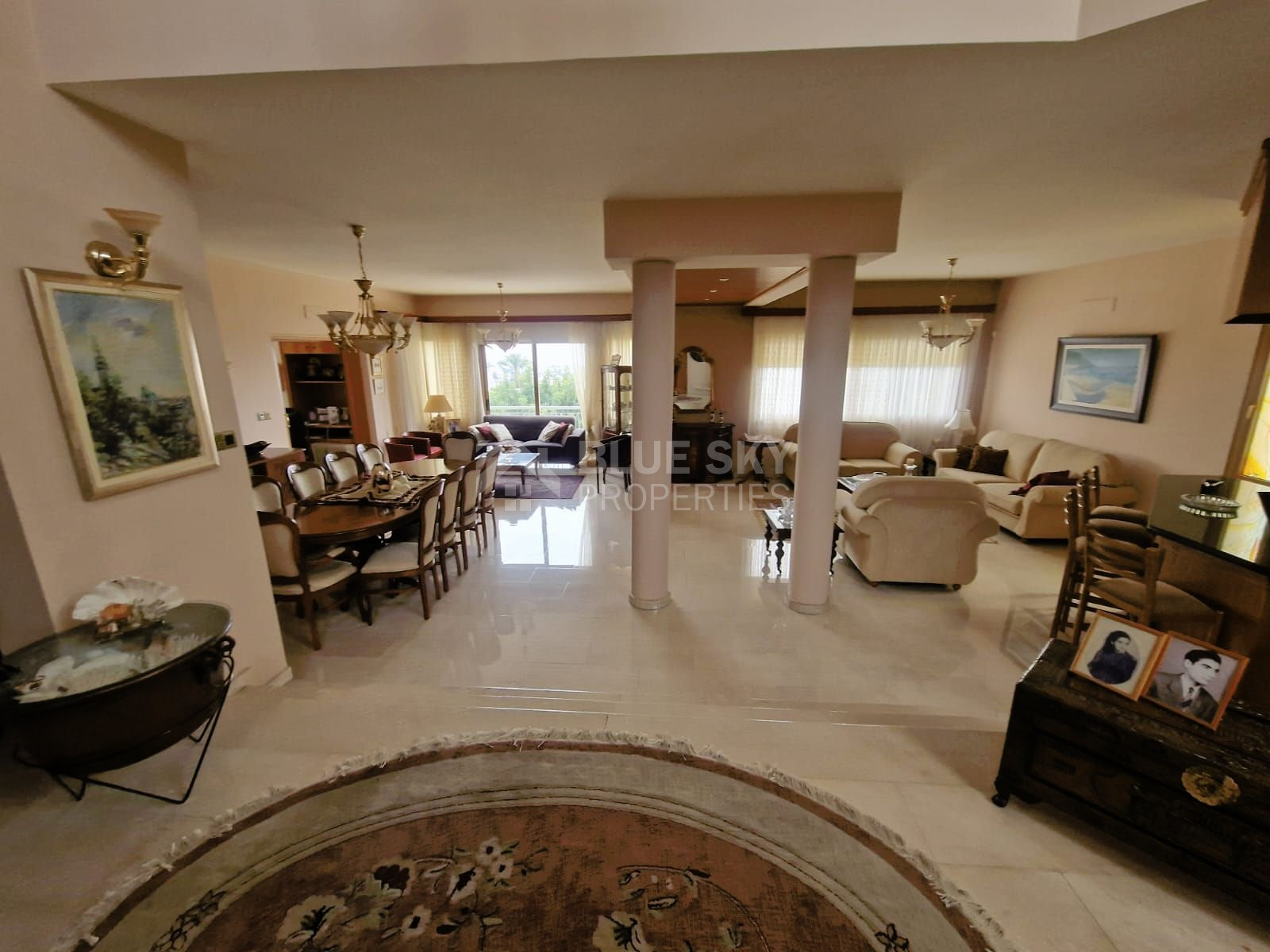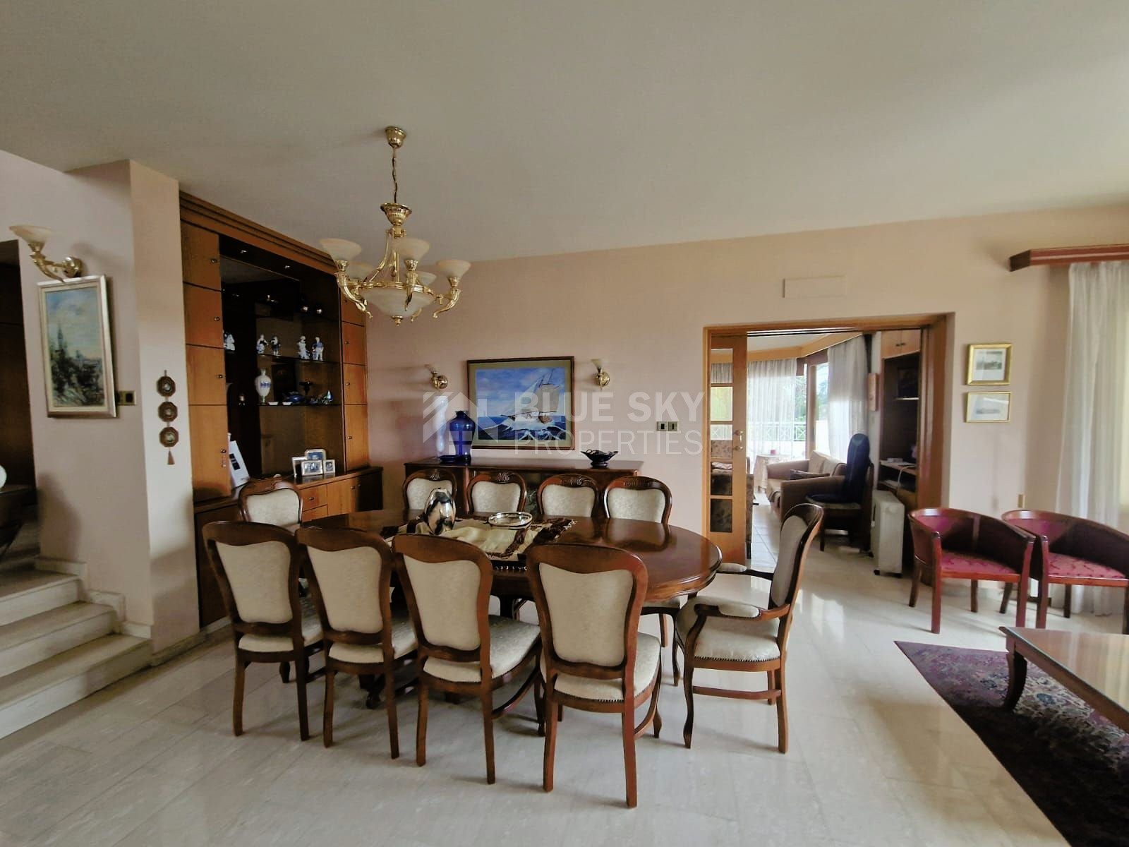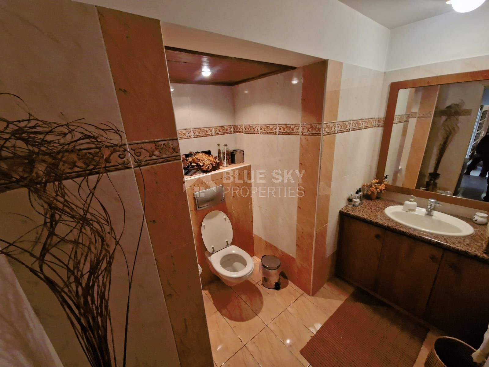Discover this charming villa situated in the tranquil neighborhood of Agia Paraskevi, Germasogeia. As you enter, you're welcomed into a grand living room with a stylish bar, a roomy dining area, and a convenient guest toilet. Moving to the second living space, which also doubles as a dining area, you'll find the kitchen.