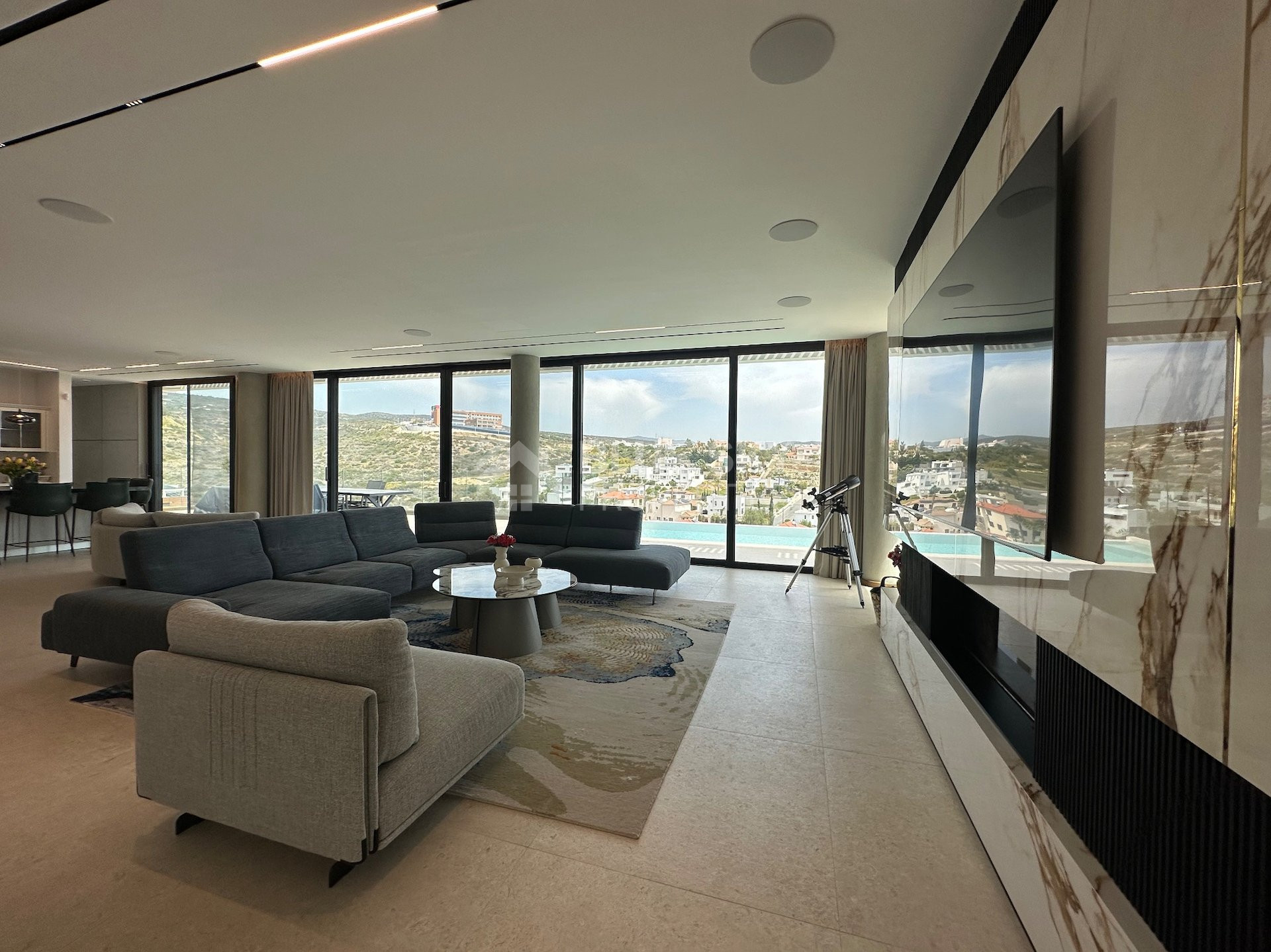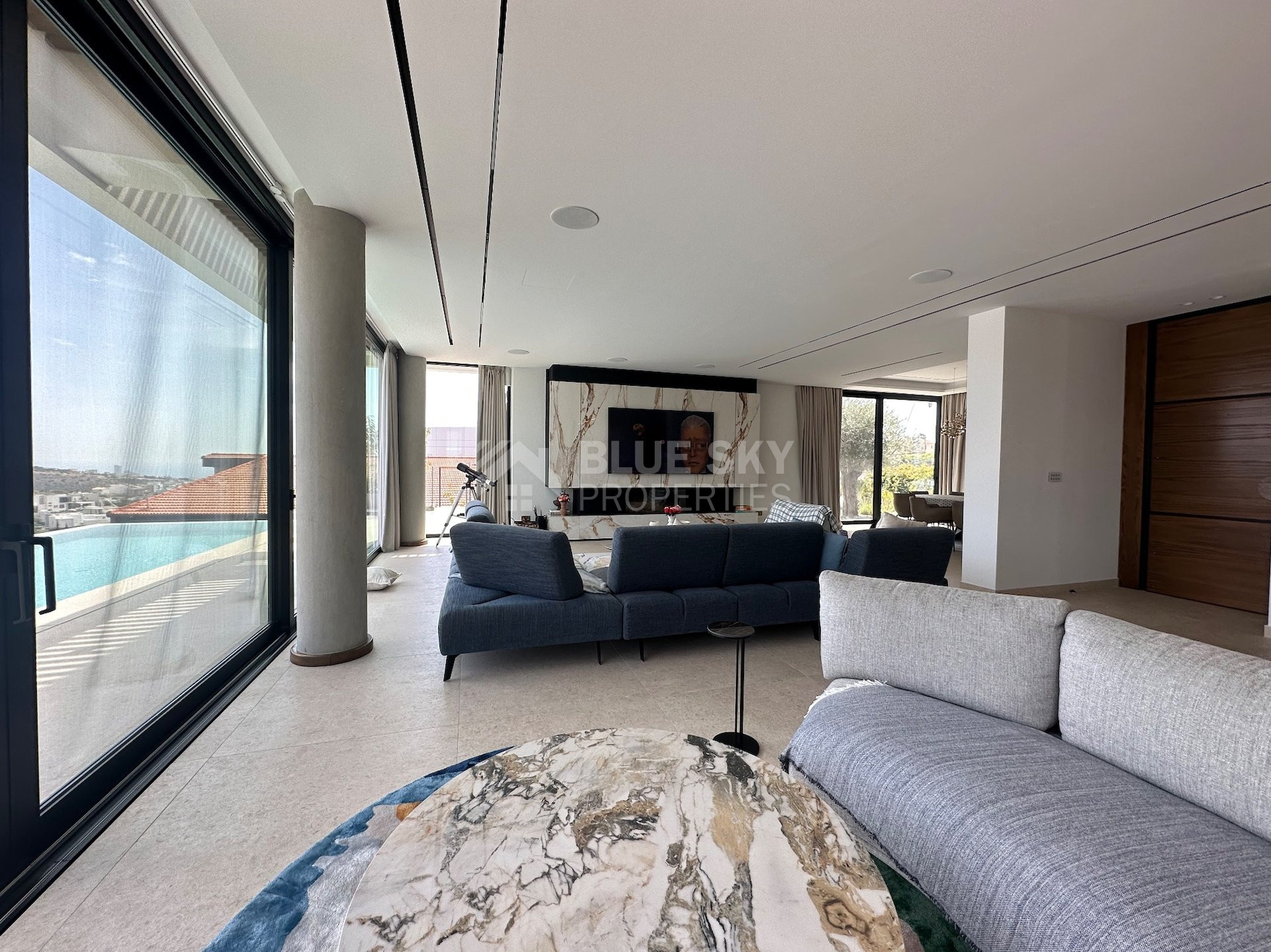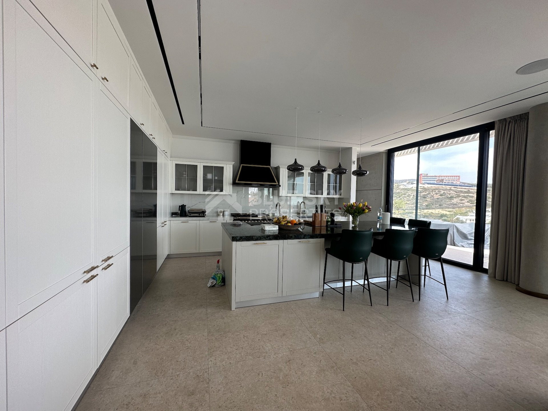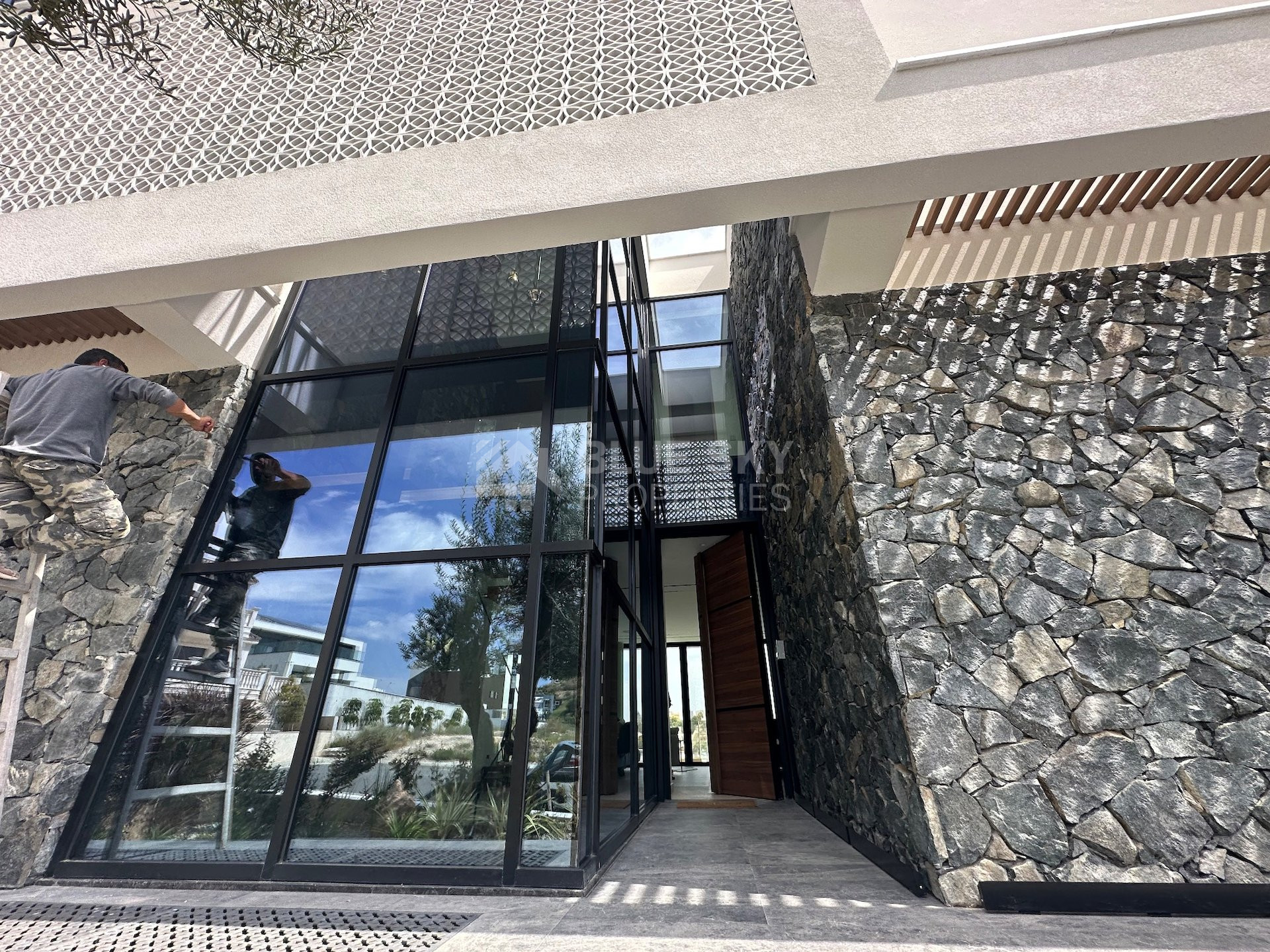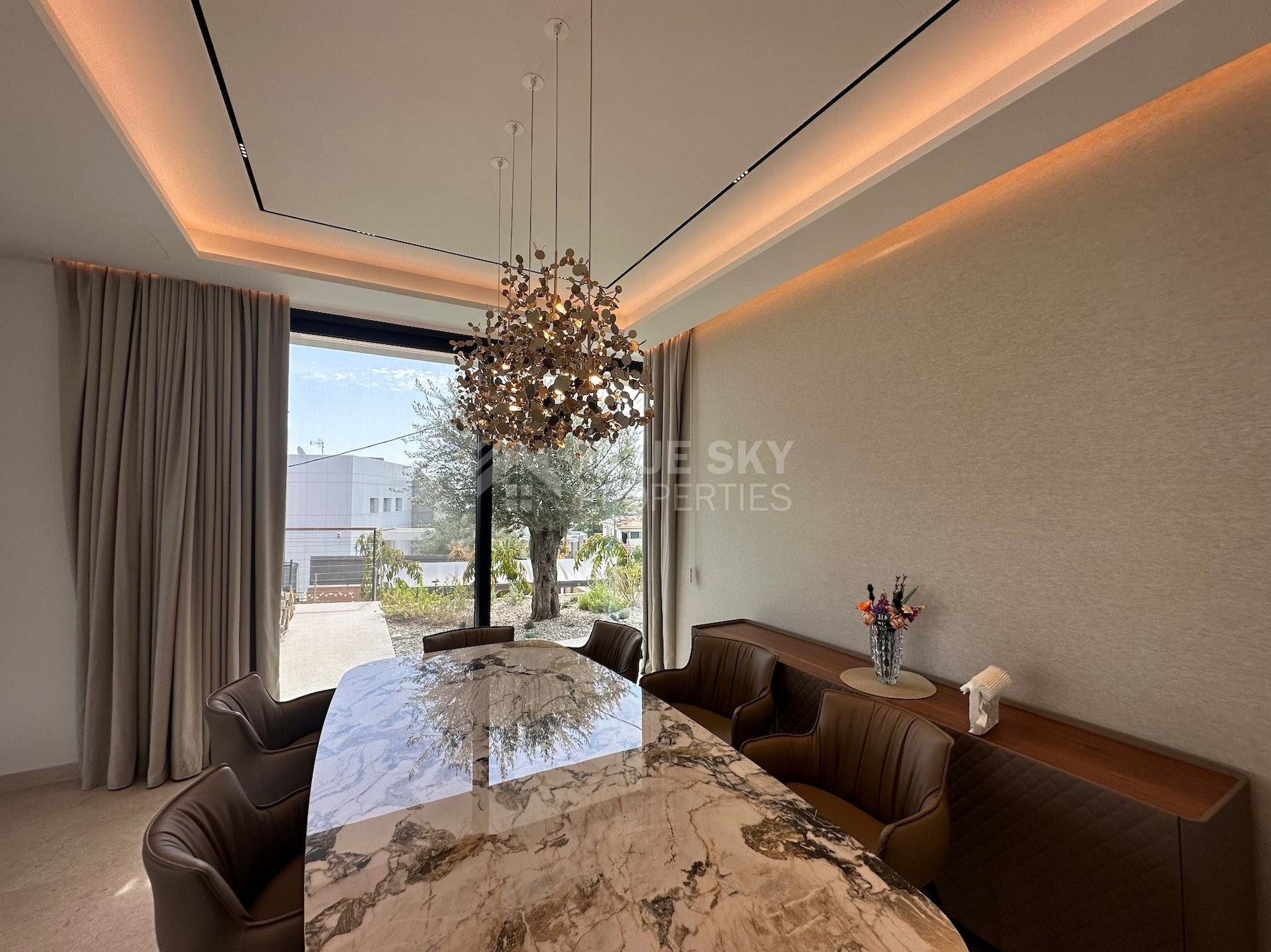 High ceilings and solid wood doors lend a sense of grandeur throughout the home, while patio doors on all sides lead to the magnificent outdoor pool area. The infinity overflow pool with mineral water creates a serene oasis, and the built-in bar and BBQ area are perfect for alfresco entertaining.