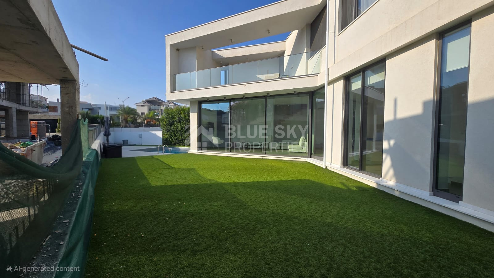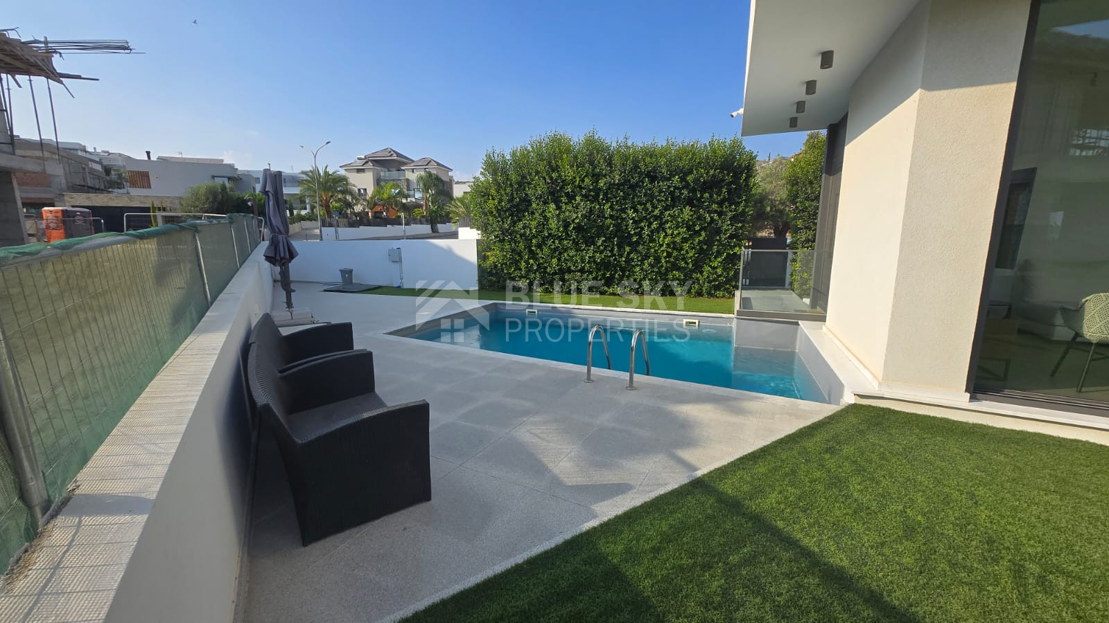 Outdoors, the villa is surrounded by landscaped gardens, while the other half of the plot is dedicated to a spacious yard with a private swimming pool, offering the perfect space for relaxation and entertaining.