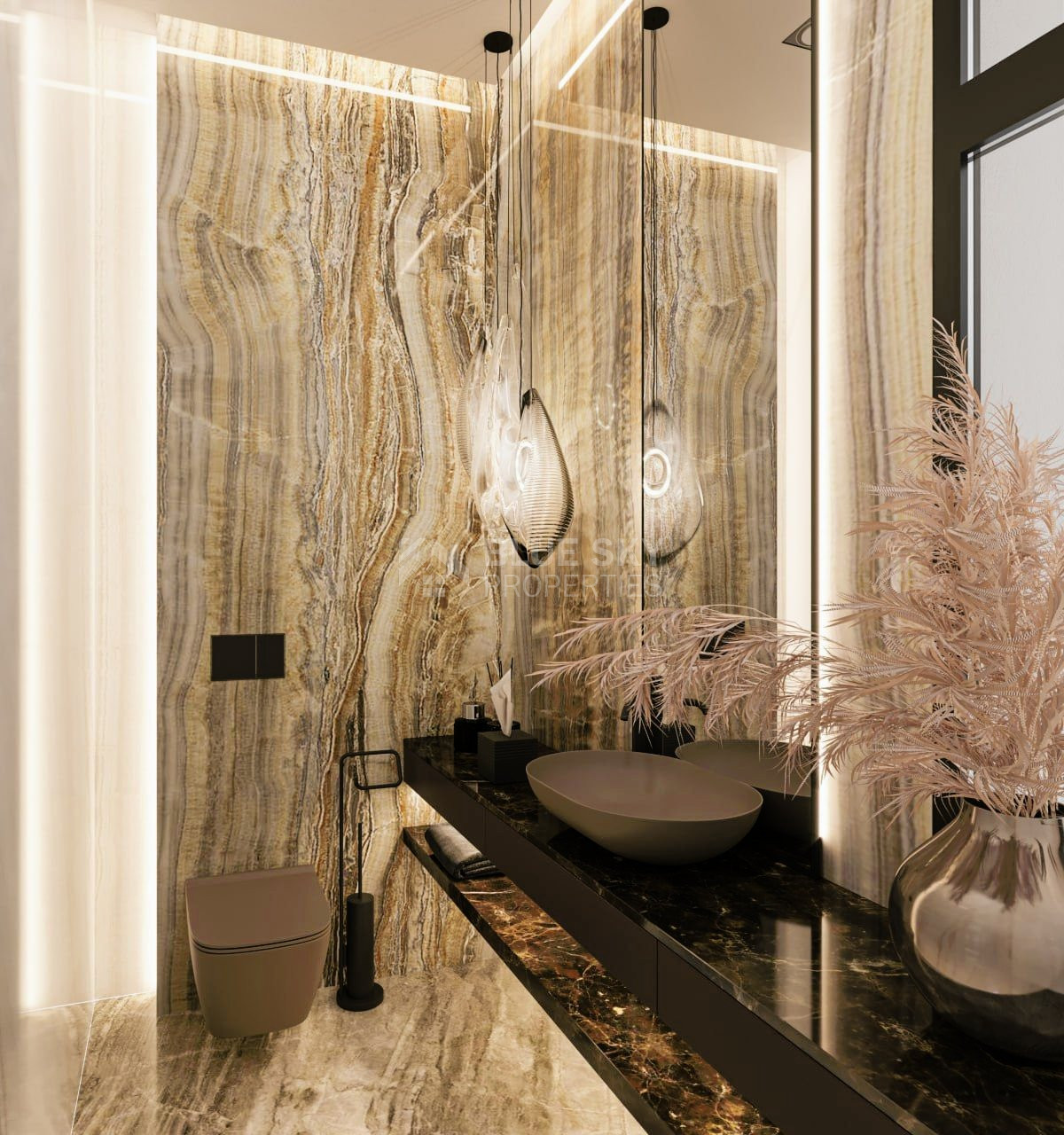 This is the latest luxury sea view development for people thinking about buying a property in Limassol. It features 14 elegant, impeccably designed homes with exquisite interiors. Your choice is delightfully overwhelming from small semidetached 3 bedroom houses to huge luxurious 6-7 bedroom villas with the unique views. The area of residences varies from 183 to 560 m2. Each bedroom has a private bathroom. Parking spaces can accommodate from 2 to 4 cars. The houses have a modern finish made of eco-friendly materials. The famous designers are responsible for the interior design of the villas. All properties have built-in furniture and finishes. For maximum convenience, in the basement, there is an additional free area, which you can use to arrange a cinema or a gym.