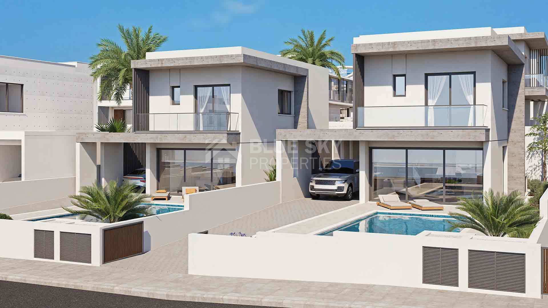 It is a modern 3-bedroom seaside villa designed for comfortable Mediterranean living.