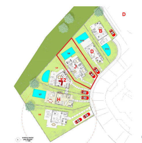 A: Air conditioning, underfloor heating (where applicable), covered veranda, en-suite bathrooms, landscaped gardens, private parking, optional swimming pool.