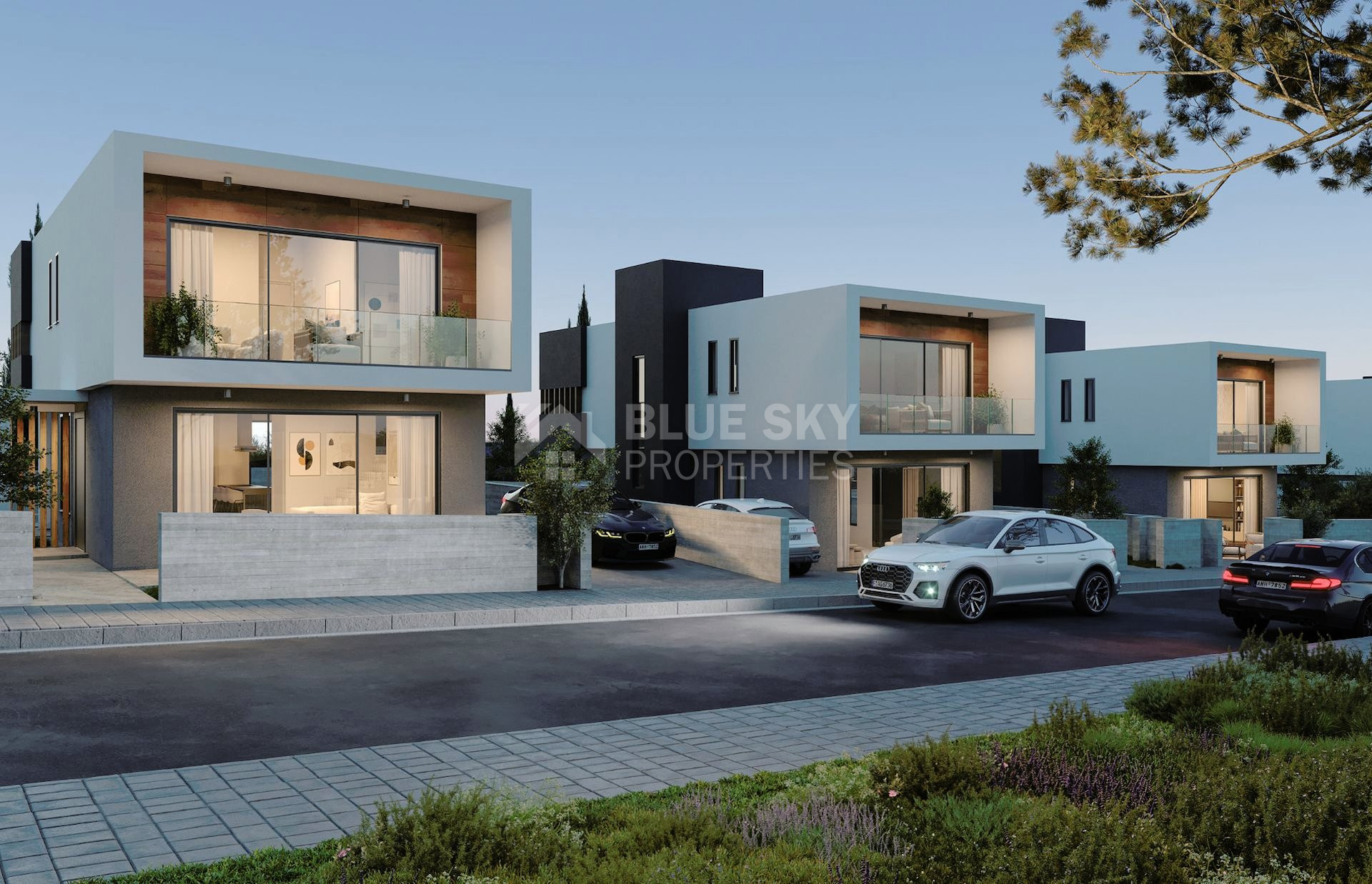 The villas range from 191 to 206 square meters in size and sit on generous plots of 340 to 415 square meters. Interiors offer spacious kitchens, en-suite bathrooms, large balconies, and panoramic windows, while the exteriors include private parking, BBQ areas, and landscaped gardens.